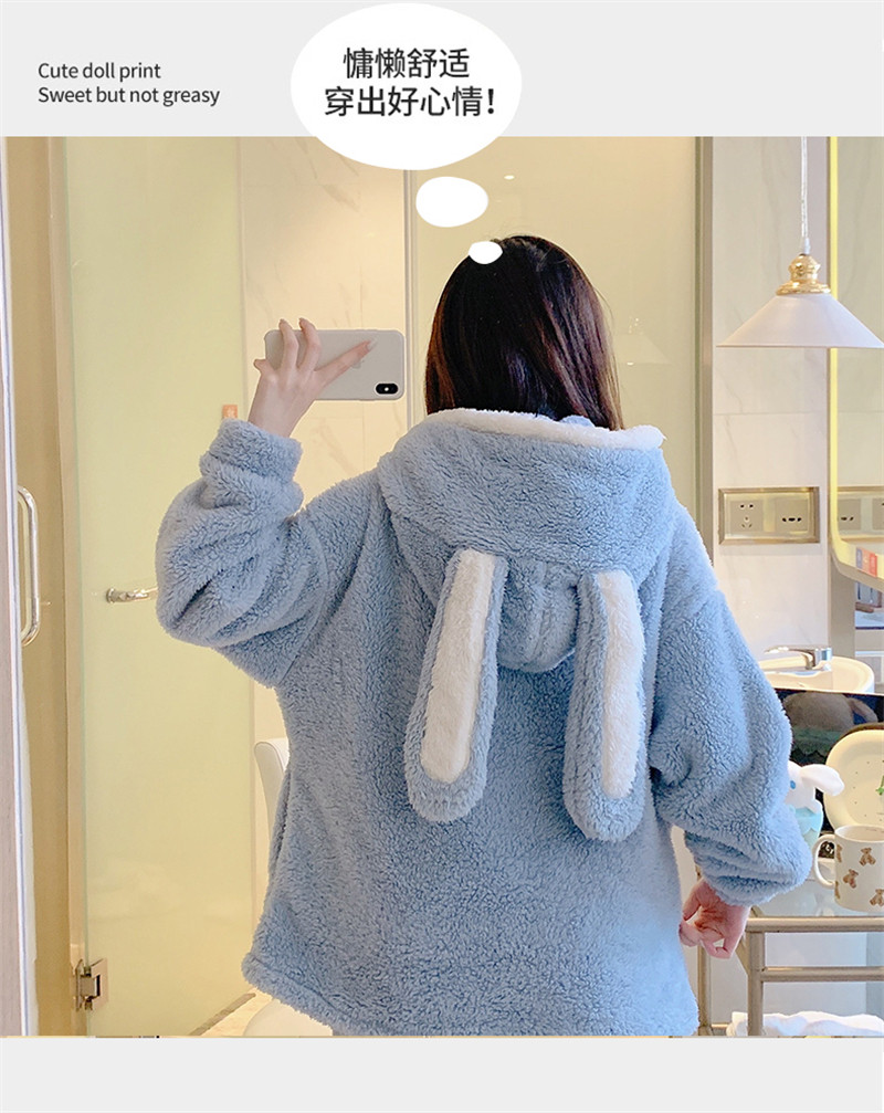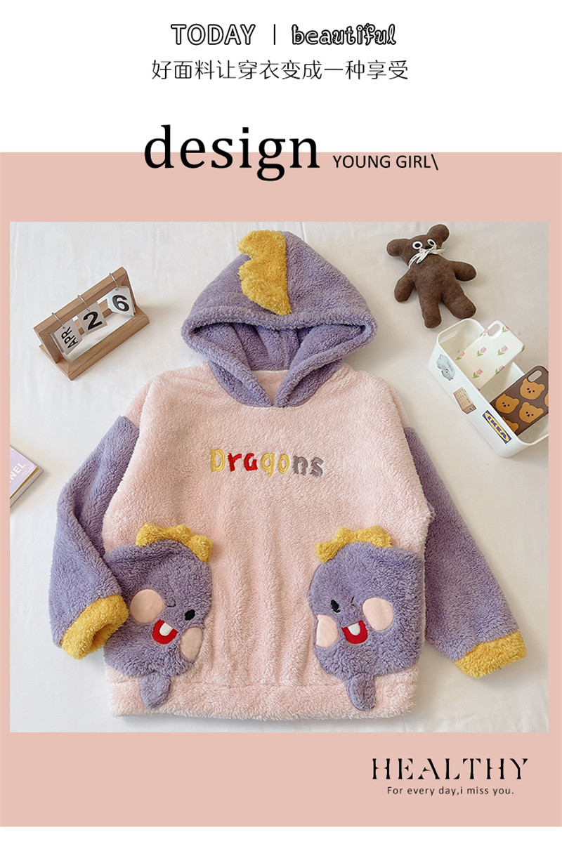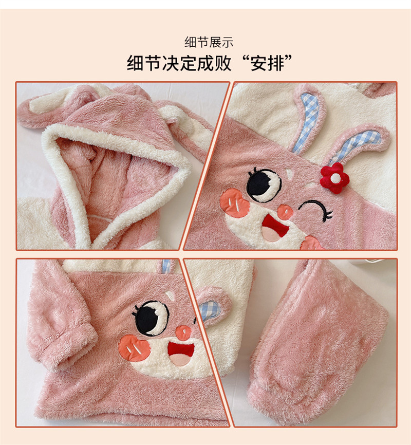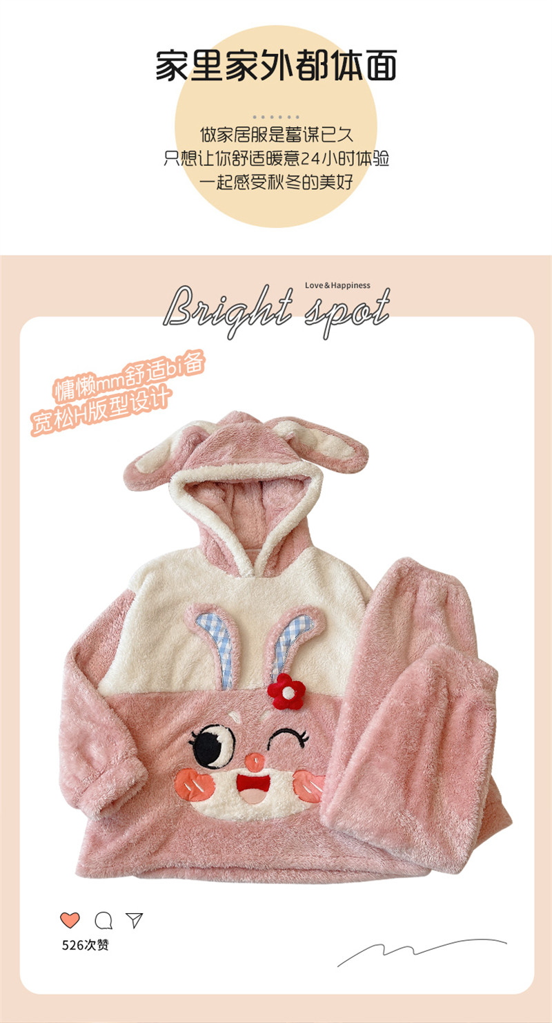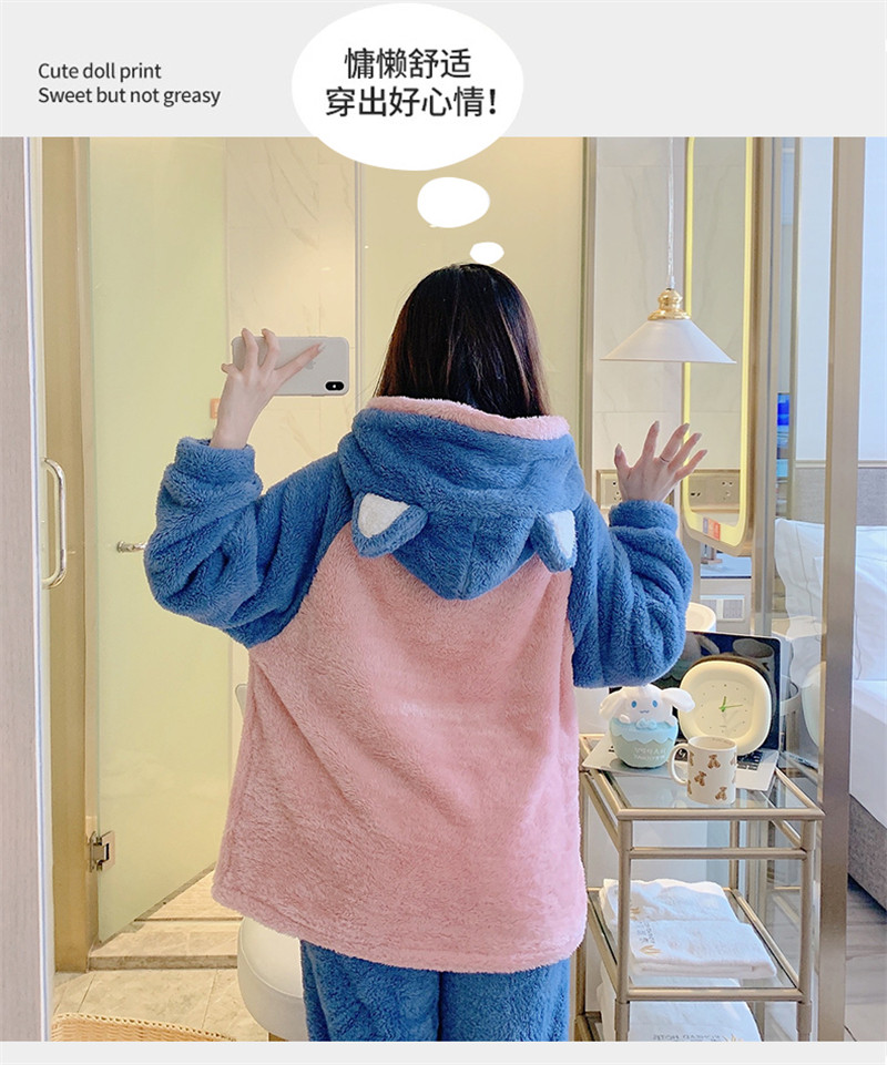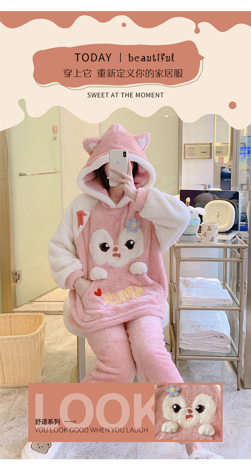 Зимняя коралловая бархатная милая пижама для школьников и студентов с капюшоном, утепленный демисезонный фланелевый комплект
