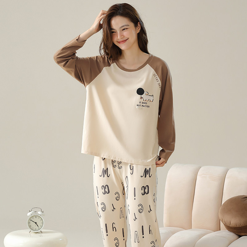 芬腾 Демисезонная пижама, лонгслив с круглым воротником, нарукавники, милый комплект, оверсайз, большой размер