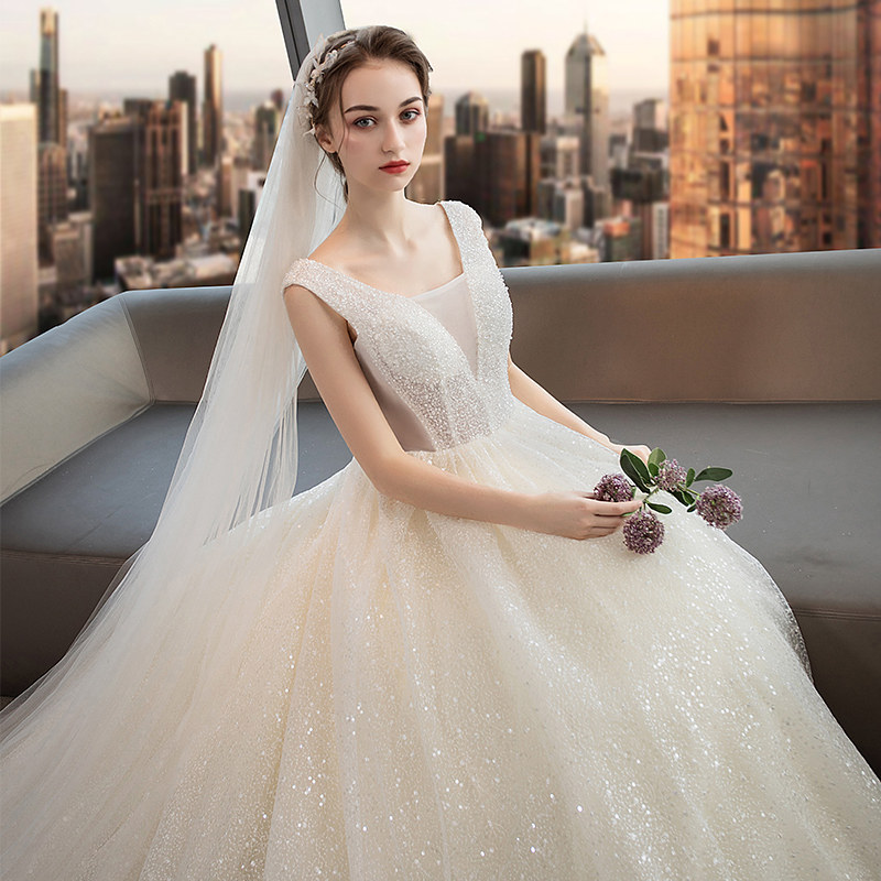 Свадебное платье для невесты, V-образный вырез, коллекция 2021, городской стиль, французский стиль, расшито цветами, по фигуре