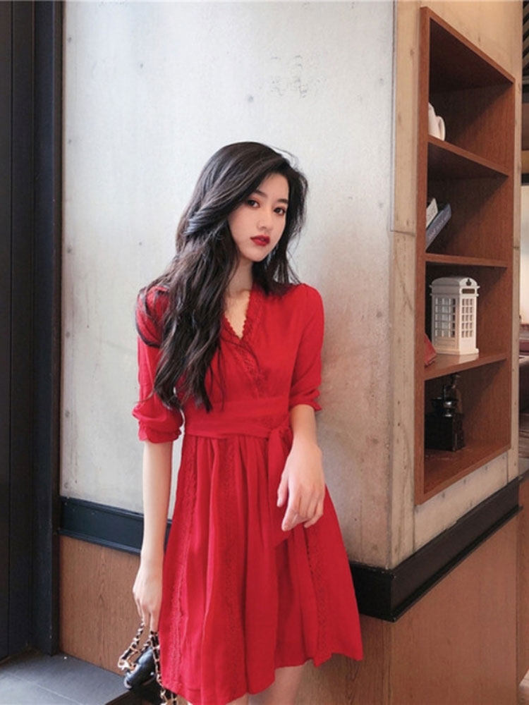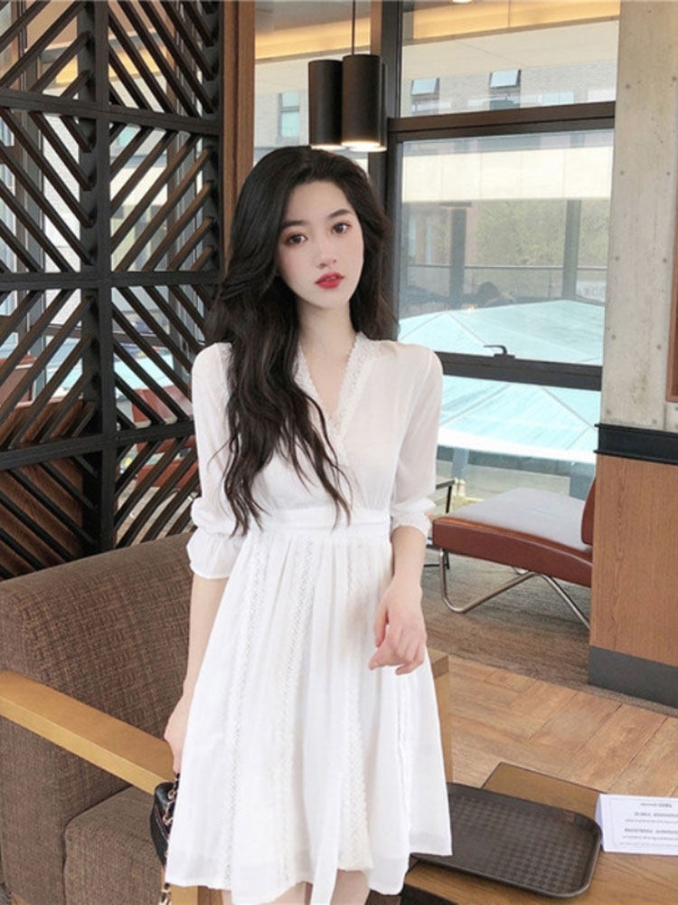 Белое платье, мини-юбка, осенняя юбка, французский стиль, V-образный вырез, в стиле Шанель, А-силуэт, подходит для подростков