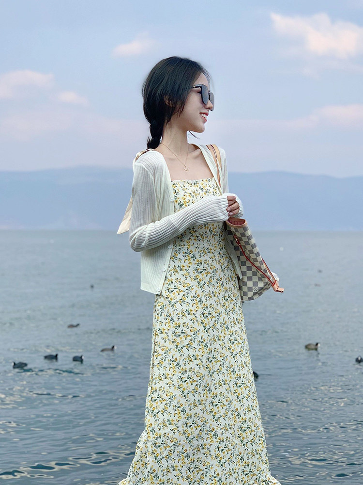 Осеннее платье, комплект, популярно в интернете, эффект подтяжки, в цветочек, коллекция 2021