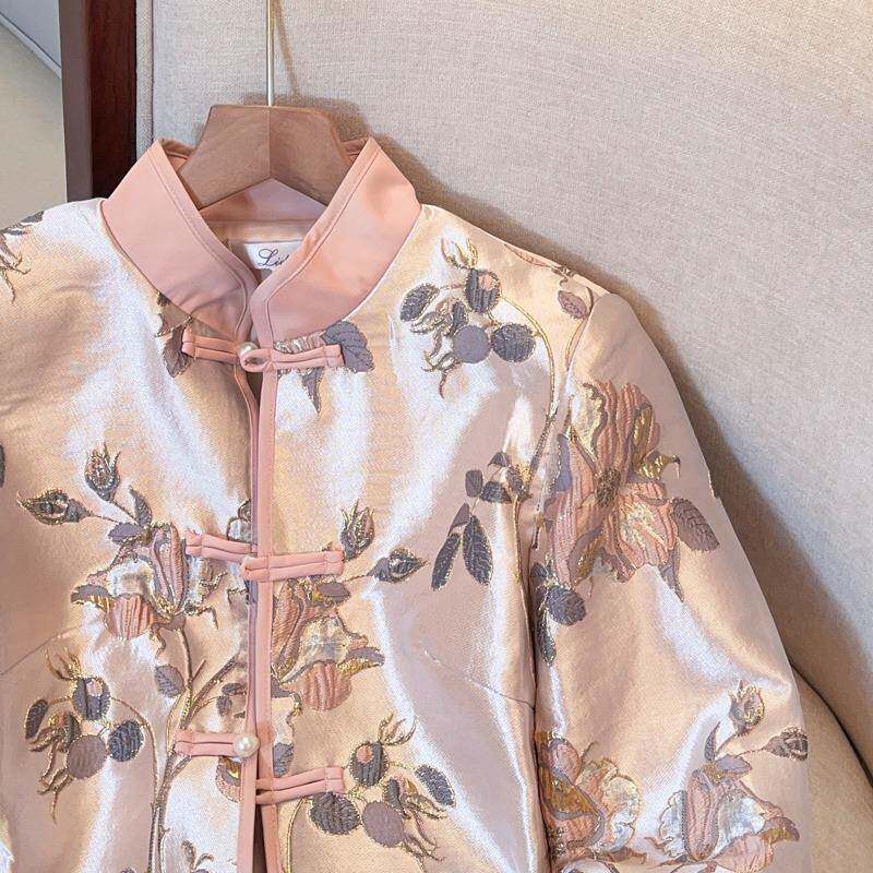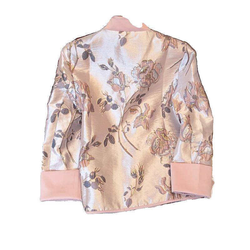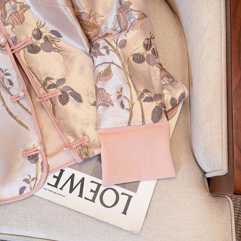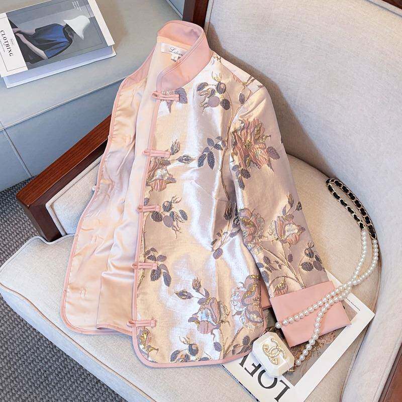 Розовая весенняя ретро куртка, ципао, китайский стиль, с вышивкой