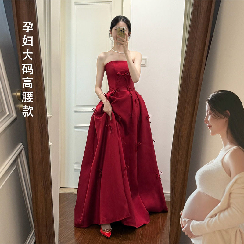 Топ без лямок, вечернее платье для беременных, длинная юбка, свадебное платье, французский стиль, изысканный стиль, большой размер