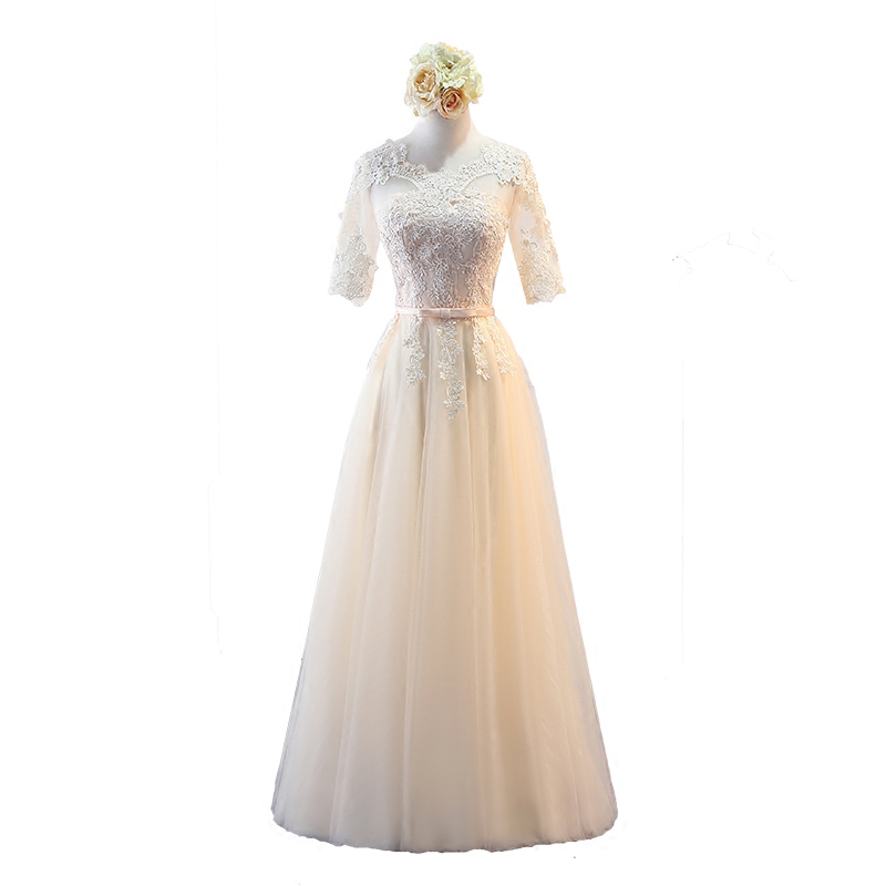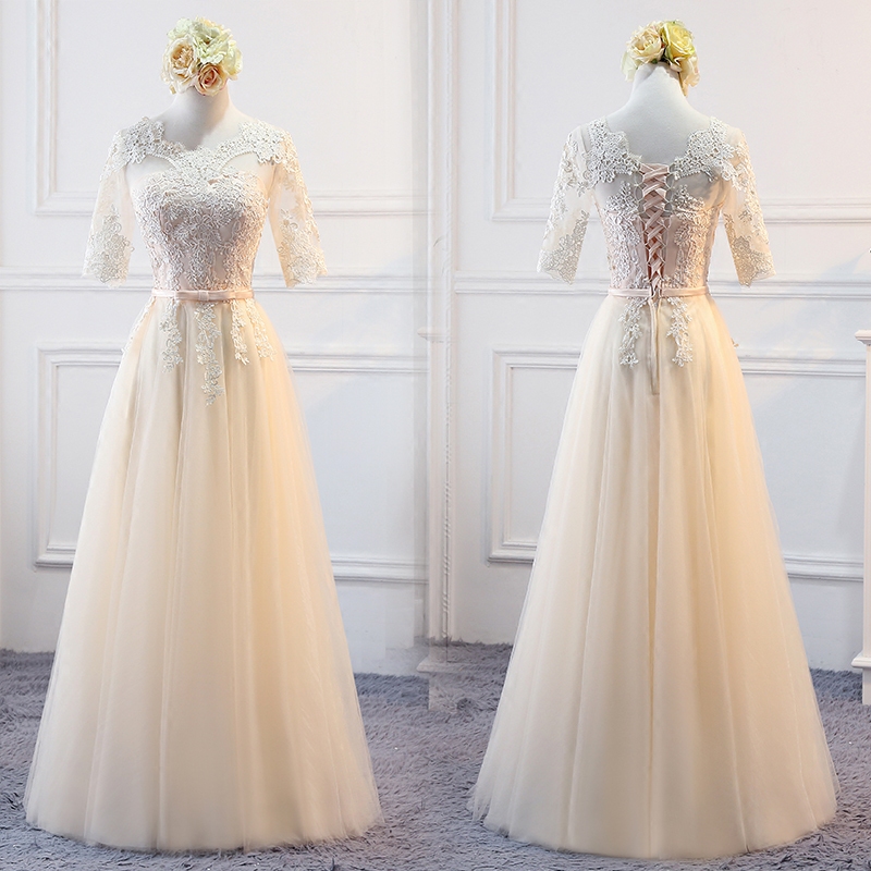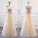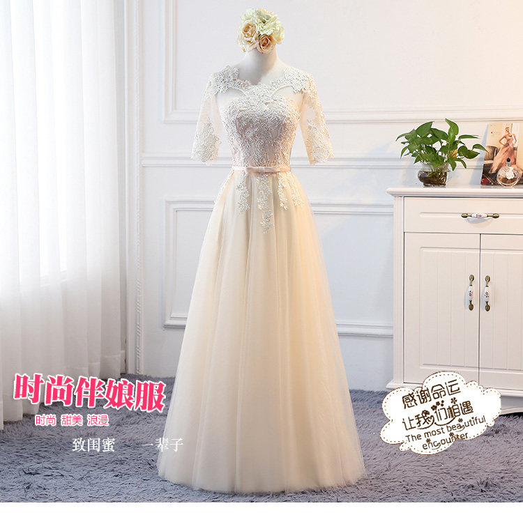 Длинное осеннее платье подружки невесты, вечернее платье, коллекция 2023, в корейском стиле, средней длины, цвета шампанского