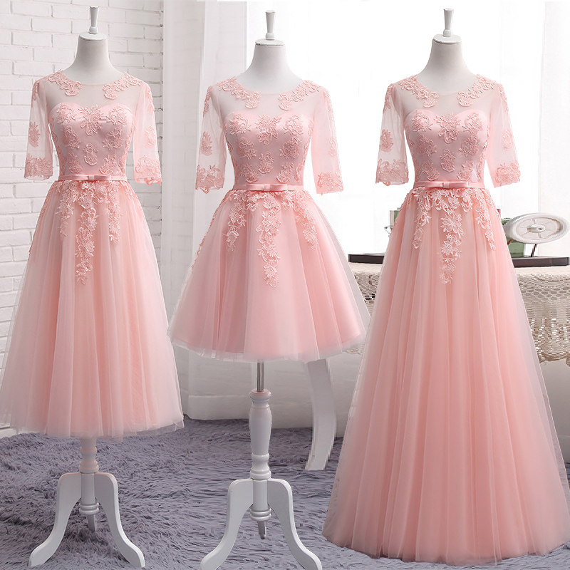 Весеннее длинное розовое платье подружки невесты, вечернее платье, в корейском стиле