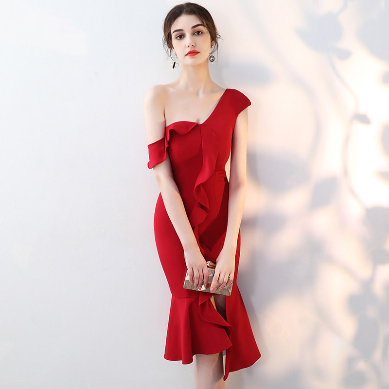 Короткое модное красное сексуальное вечернее платье, 2020