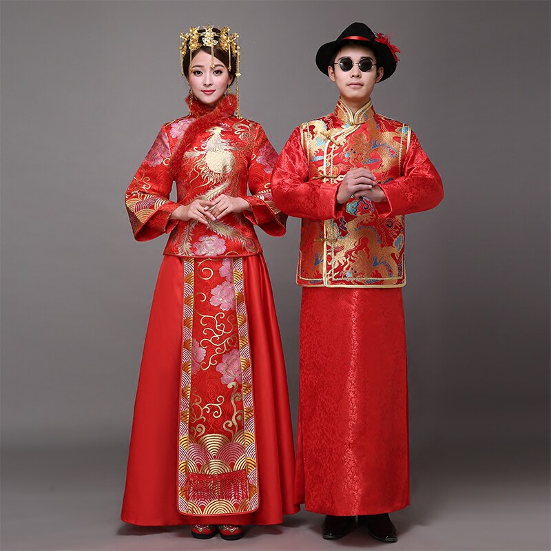Свадебное платье подходит для мужчин и женщин, традиционный свадебный наряд Сюхэ для влюбленных, дракон и феникс