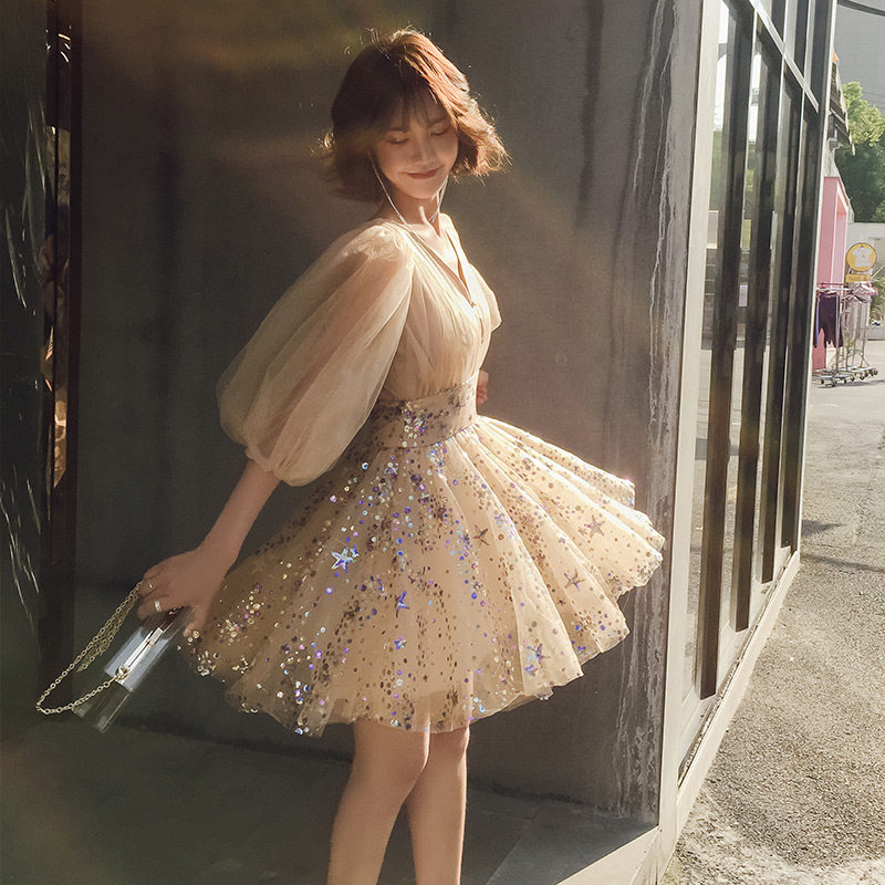 Короткое элегантное вечернее платье, по фигуре