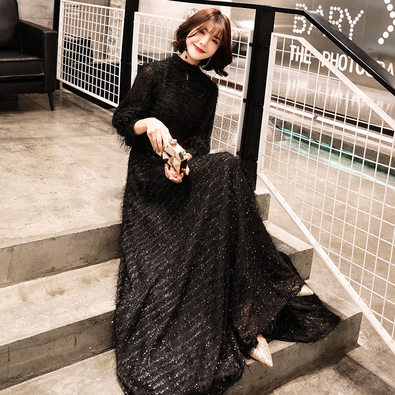 Черное вечернее платье, длинная летняя юбка, коллекция 2021, в корейском стиле
