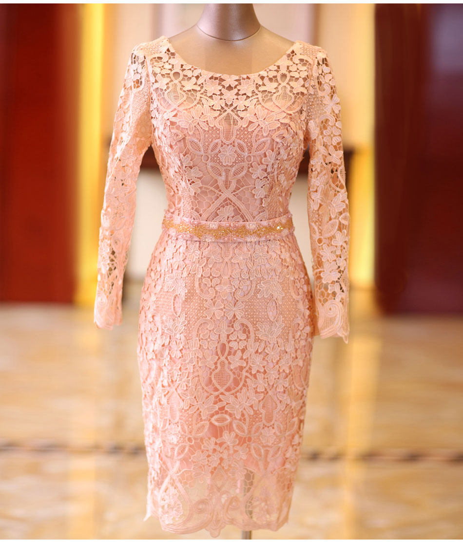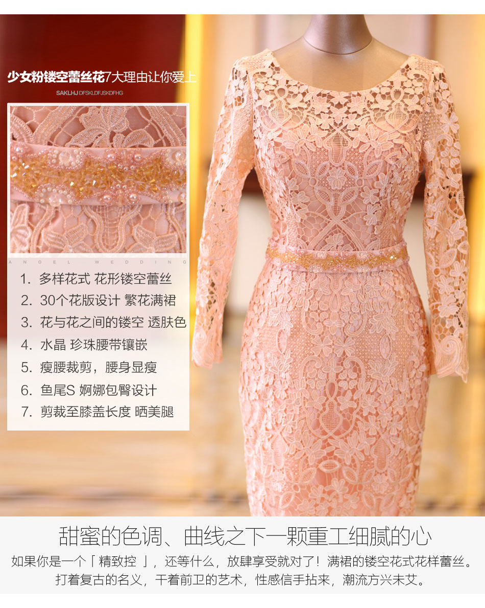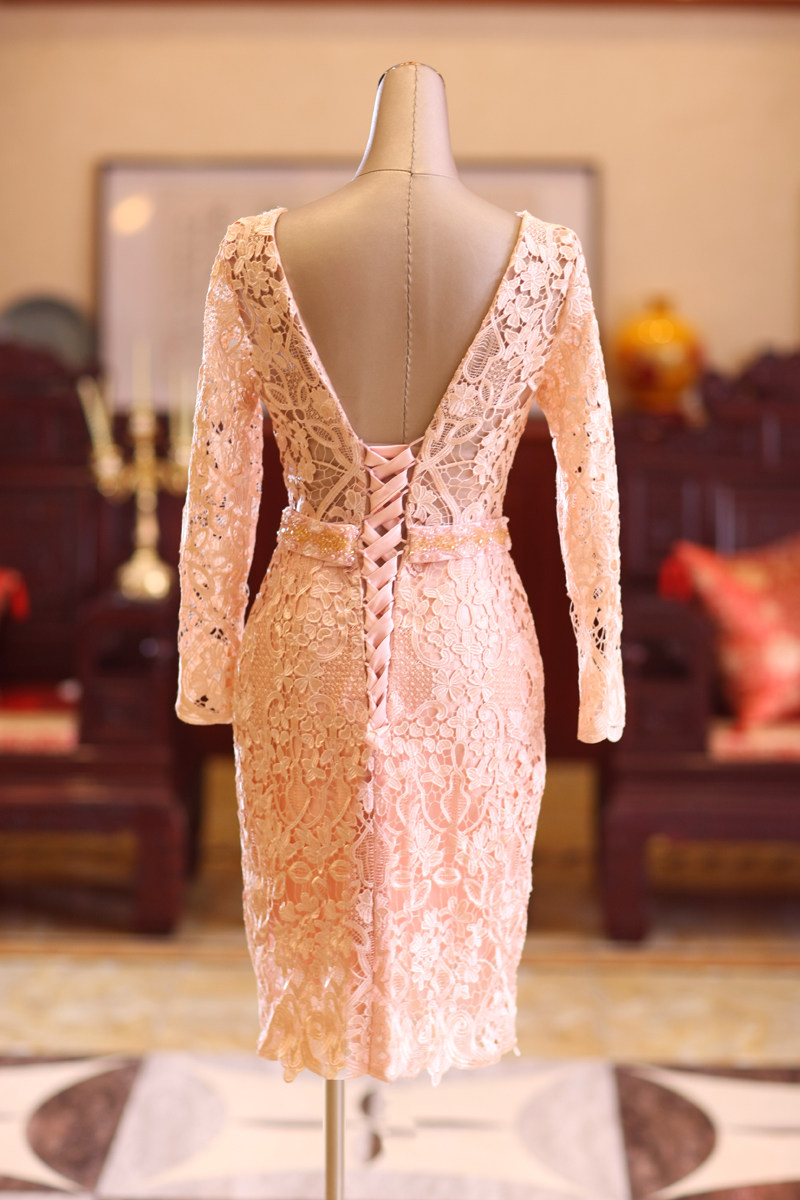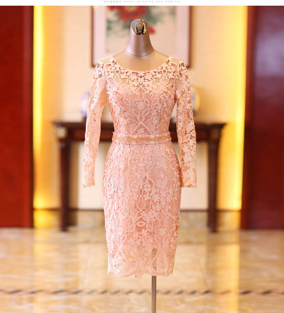 Розовое кружевное короткое свадебное платье, вечернее платье
