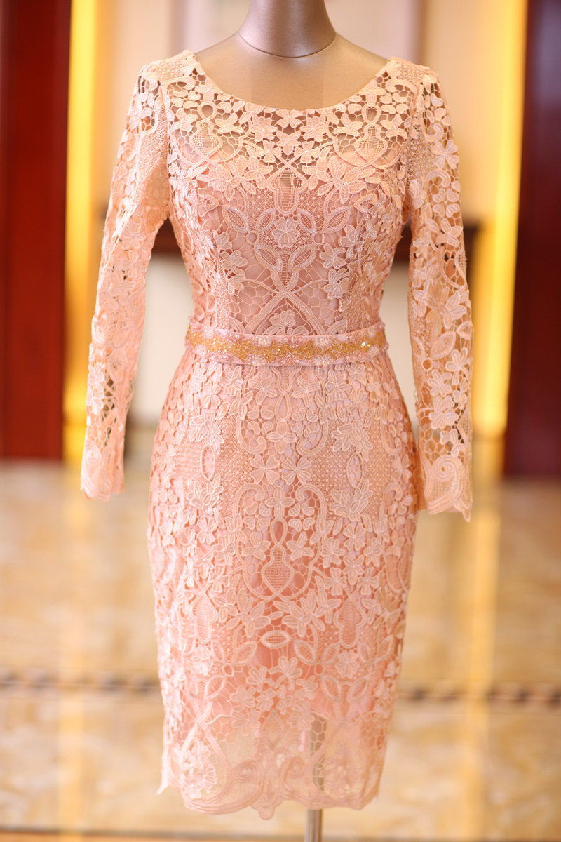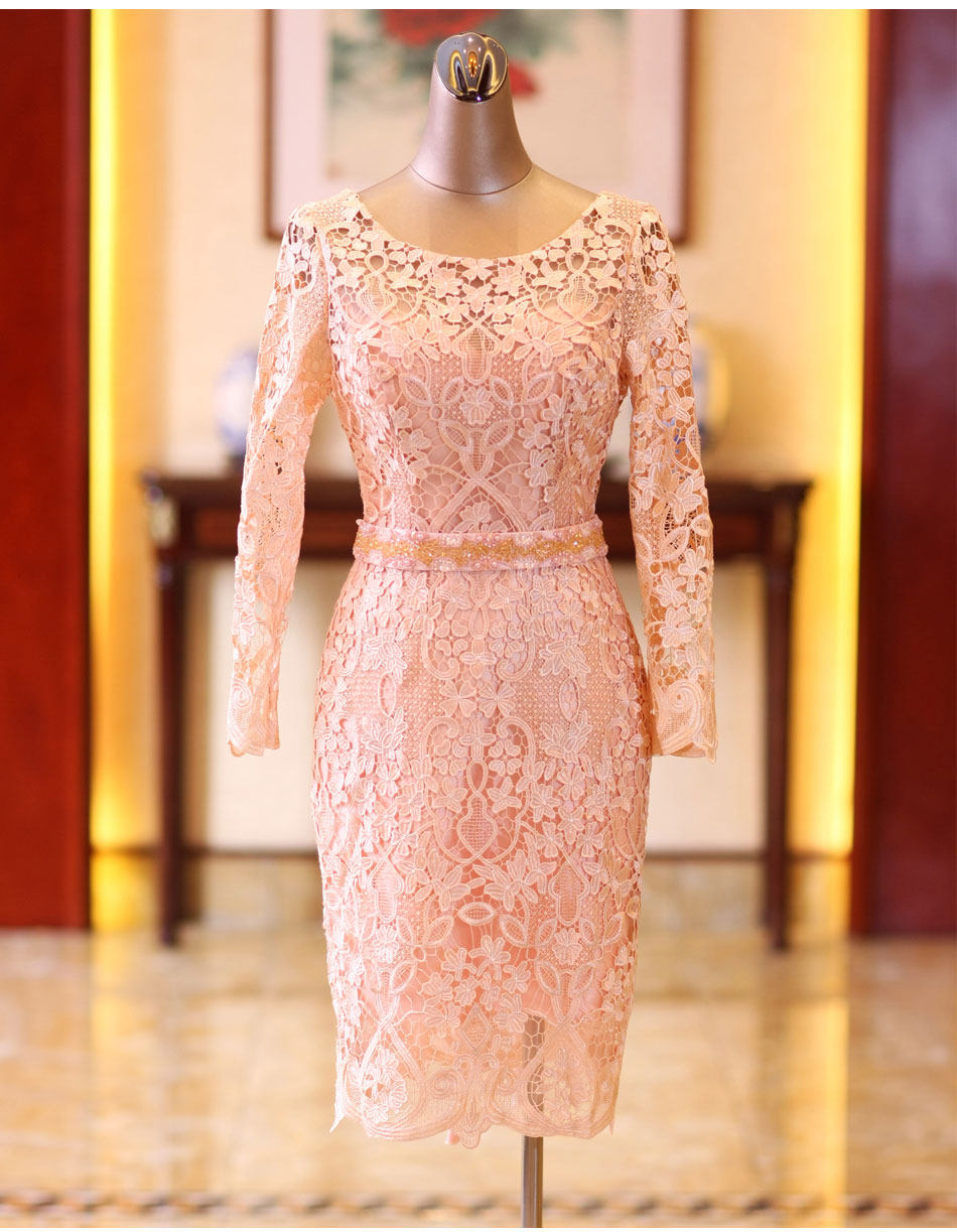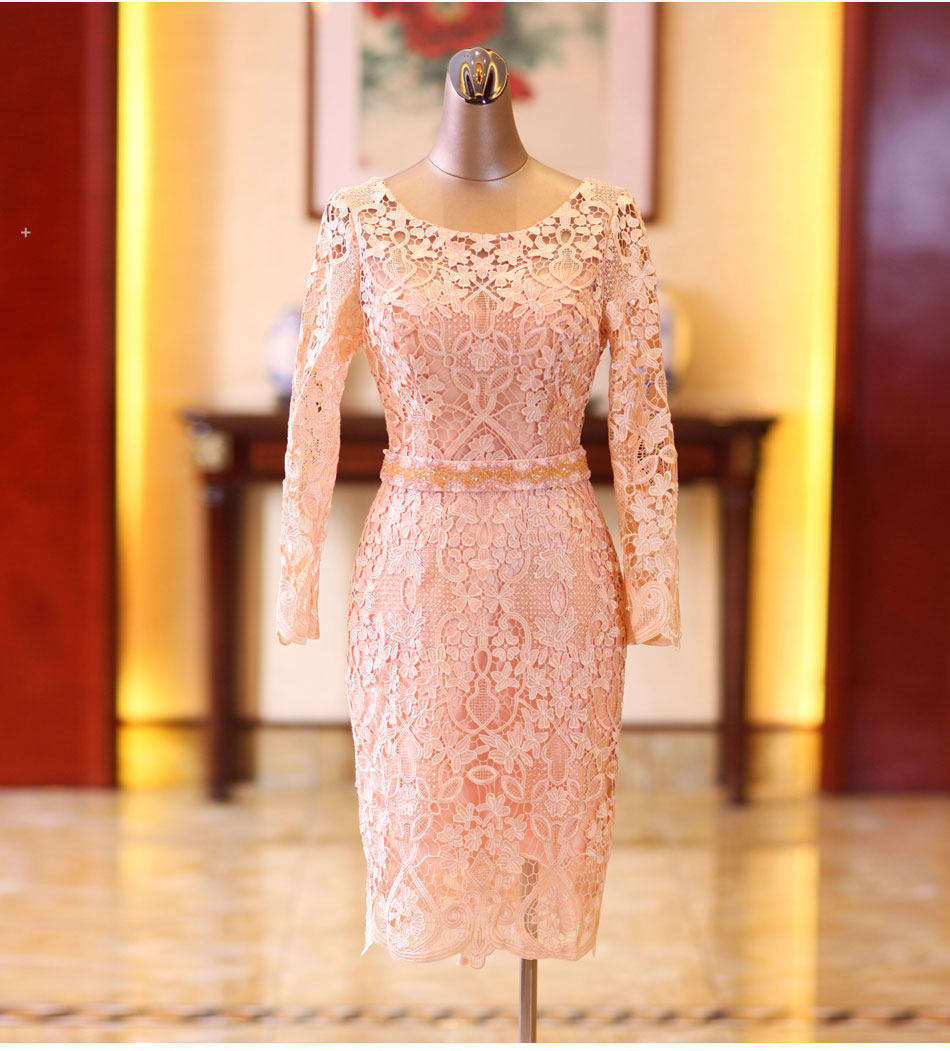 Розовое кружевное короткое свадебное платье, вечернее платье