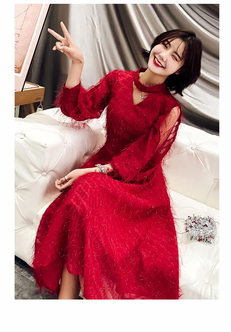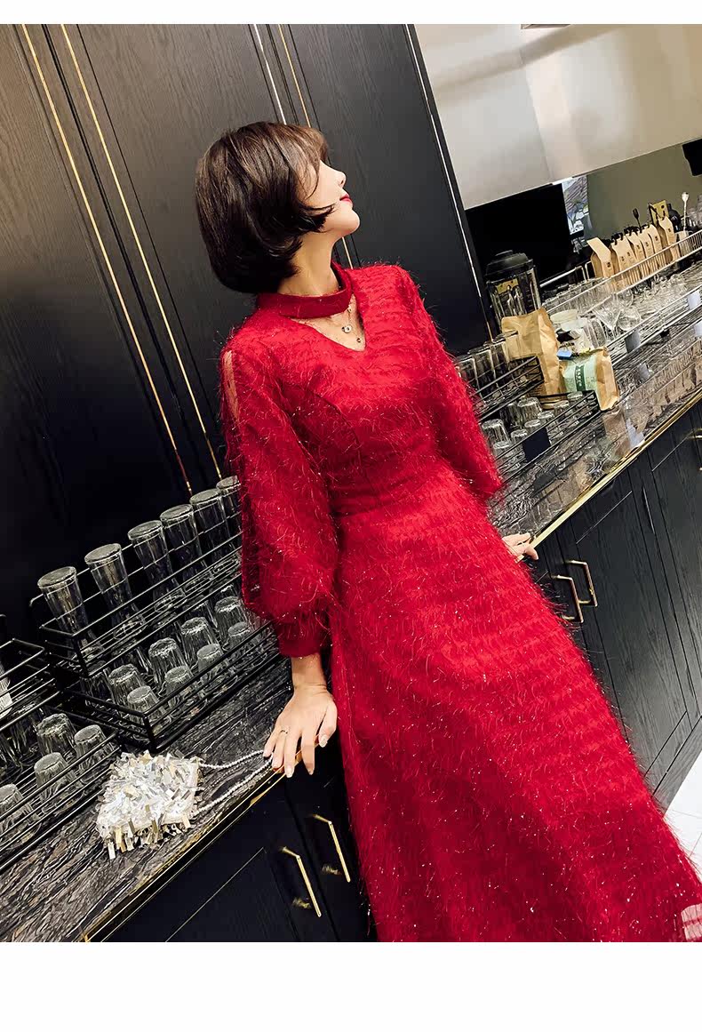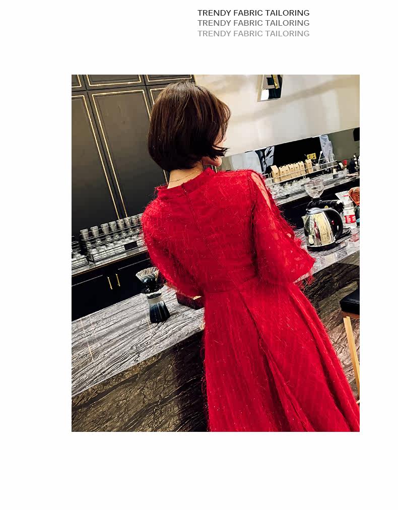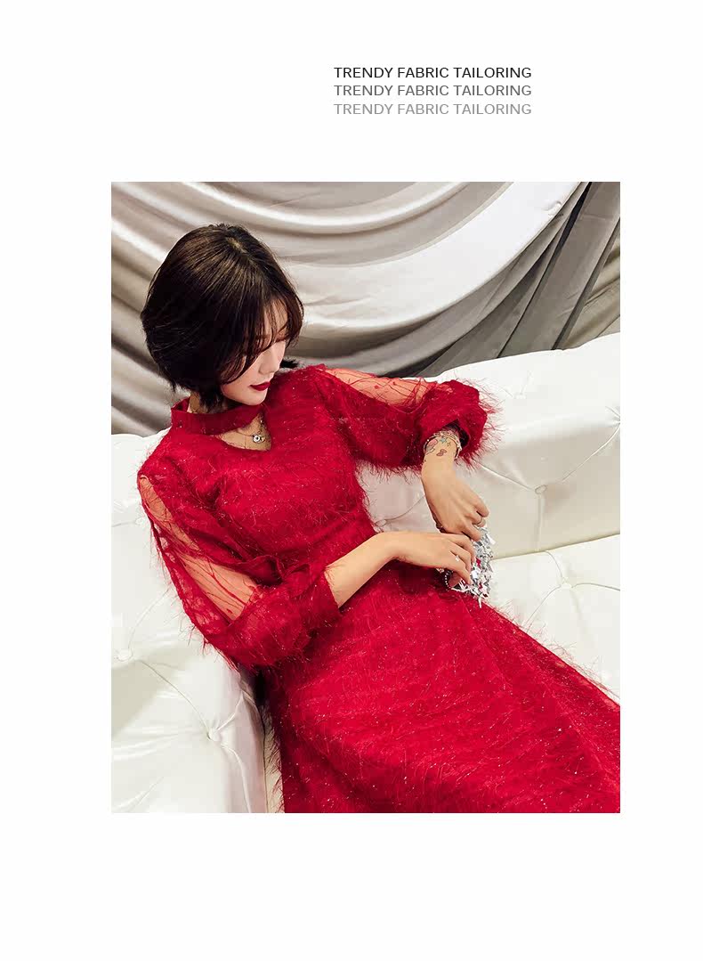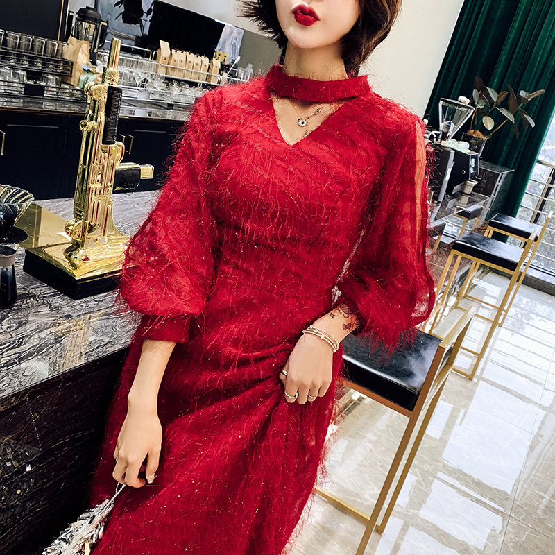 Весеннее красное модное длинное вечернее платье, коллекция 2021, средней длины