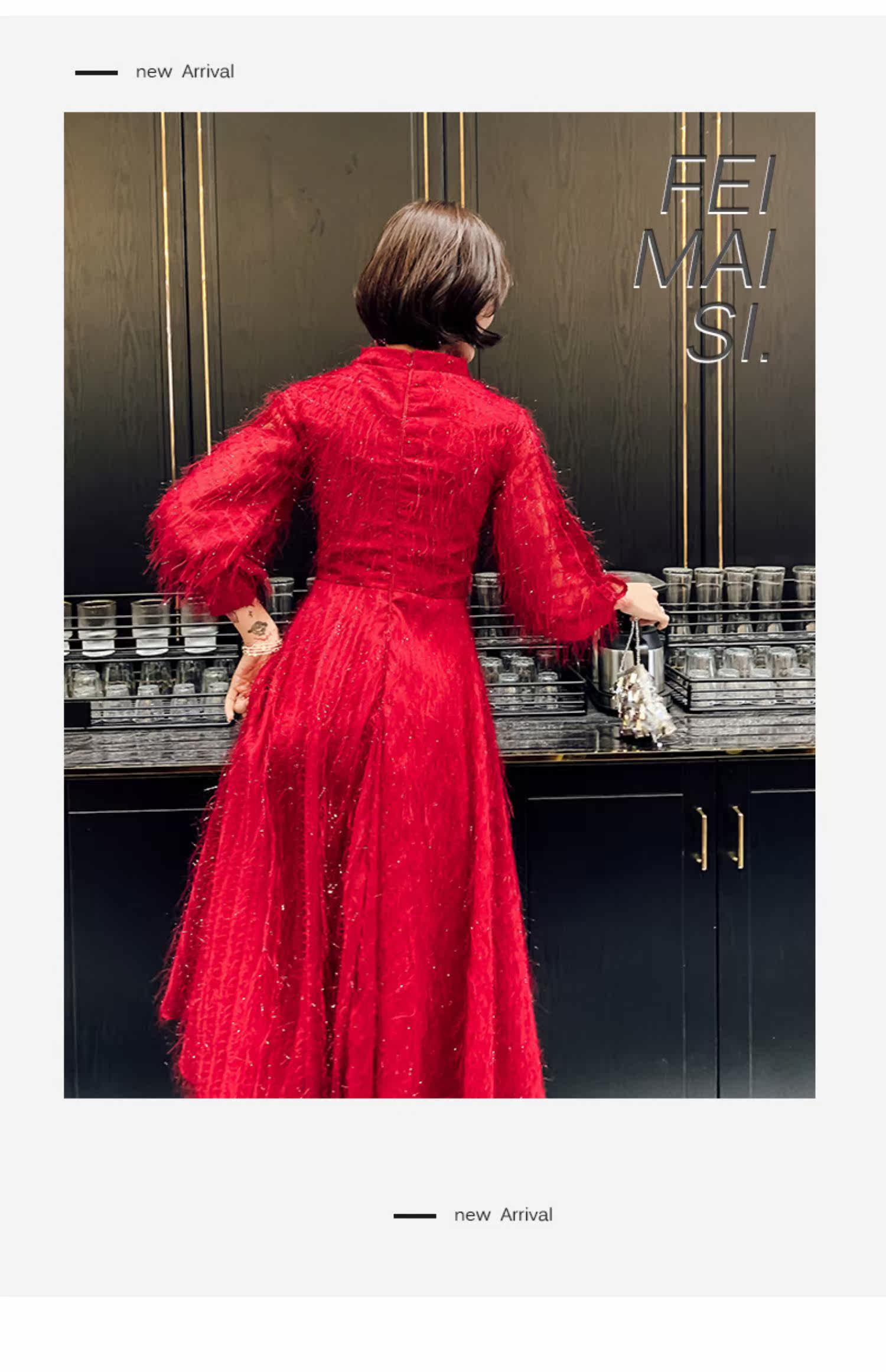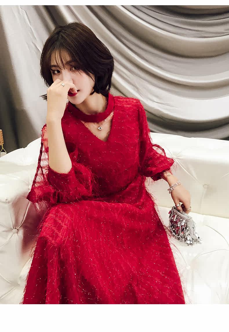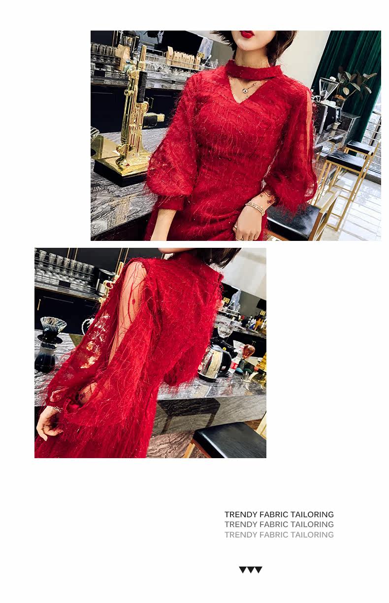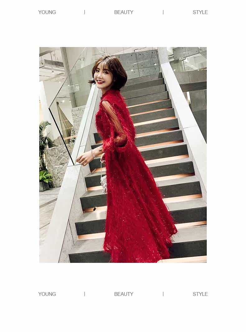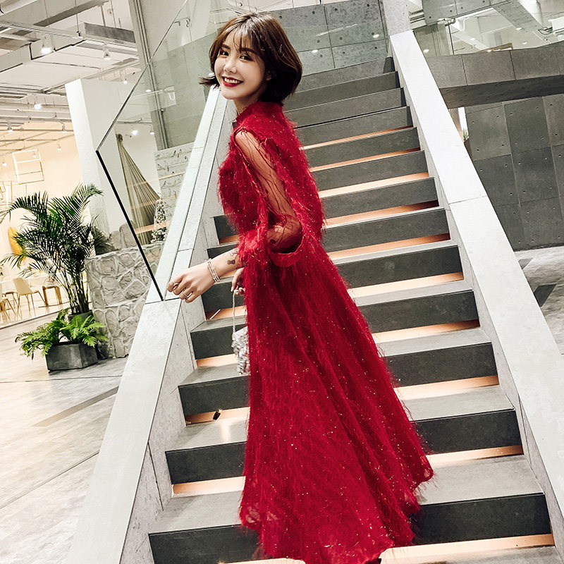 Весеннее красное модное длинное вечернее платье, коллекция 2021, средней длины