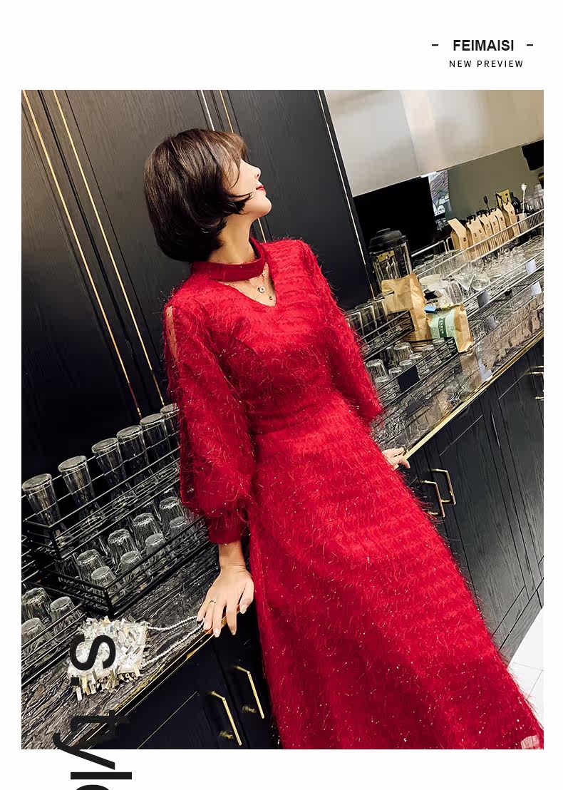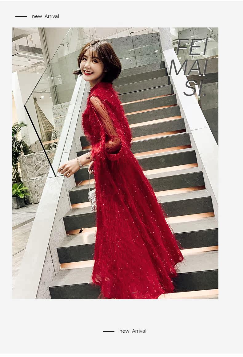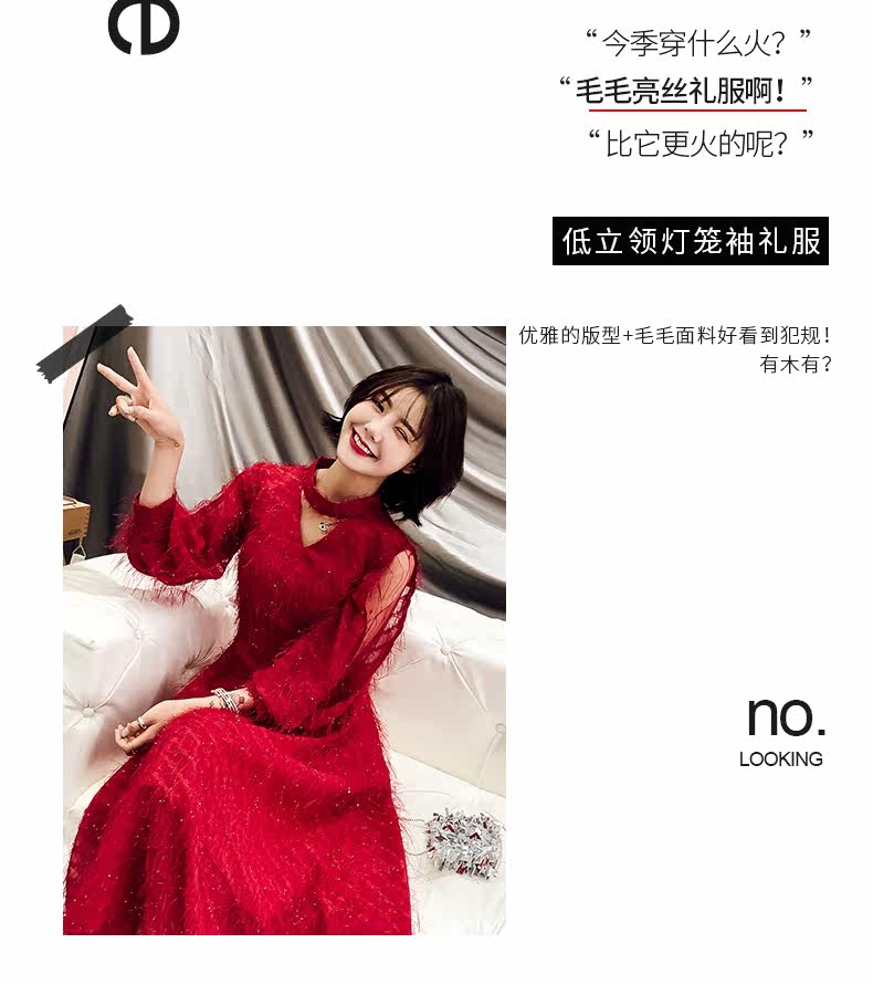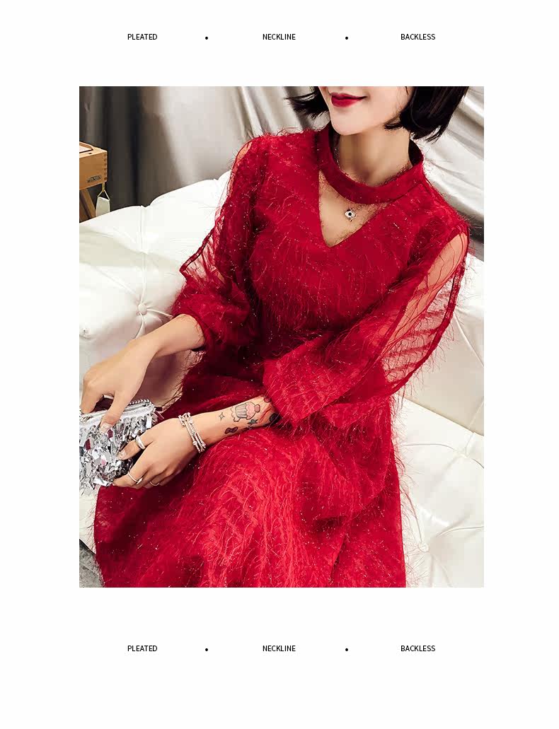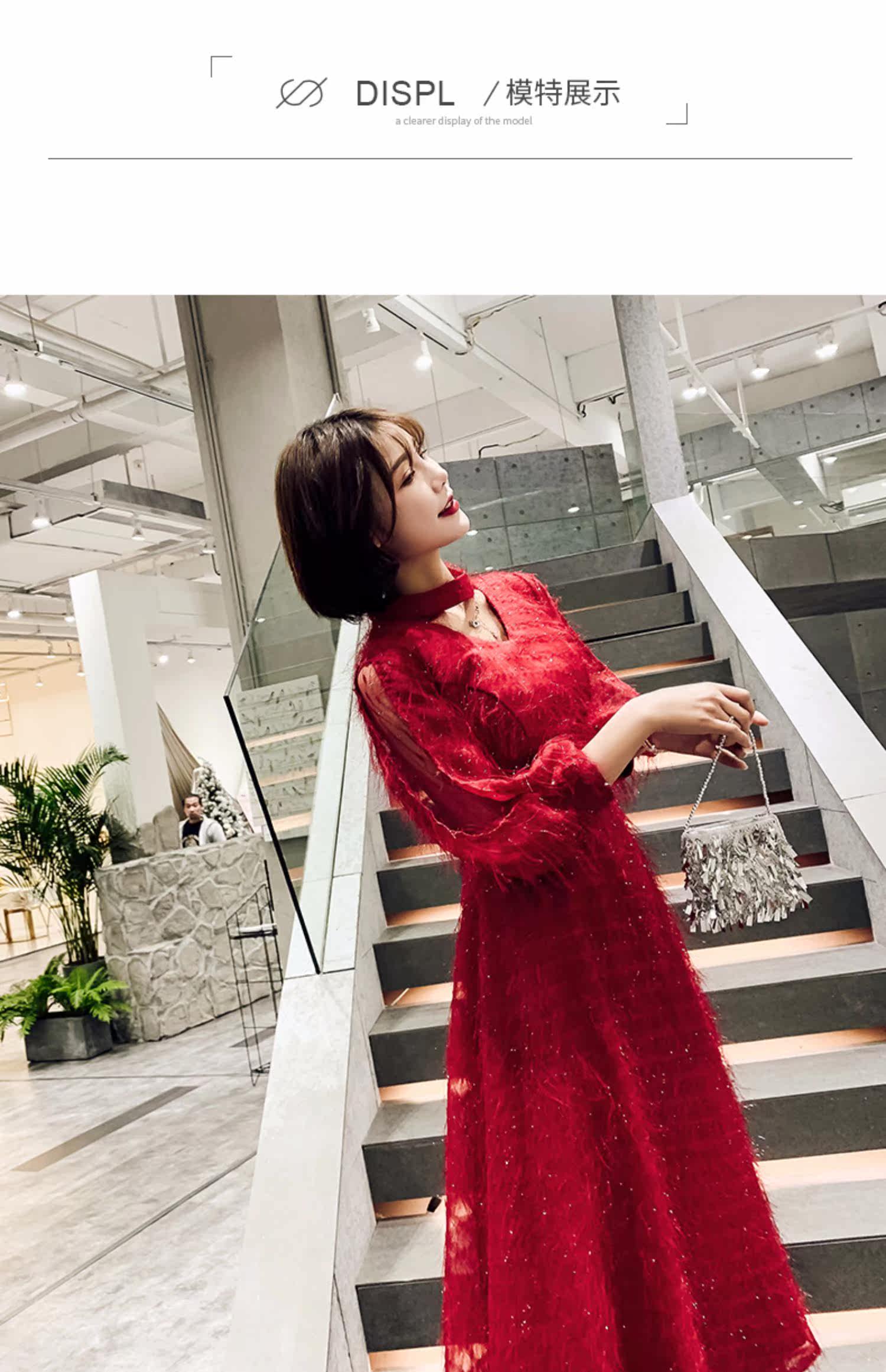 Весеннее красное модное длинное вечернее платье, коллекция 2021, средней длины