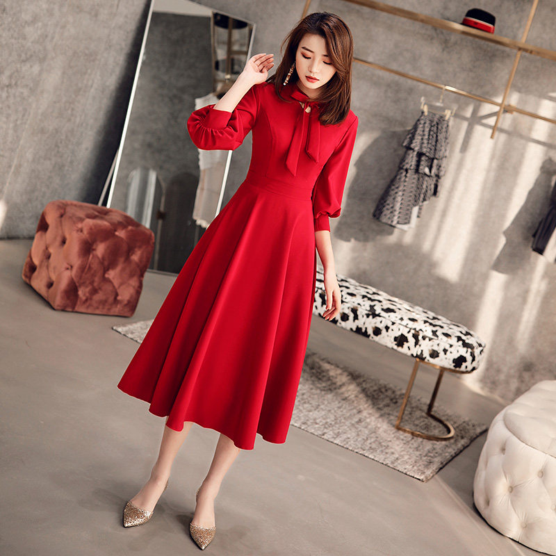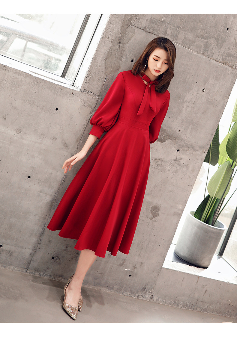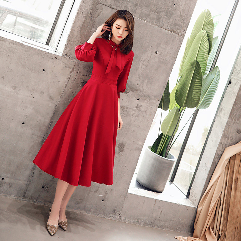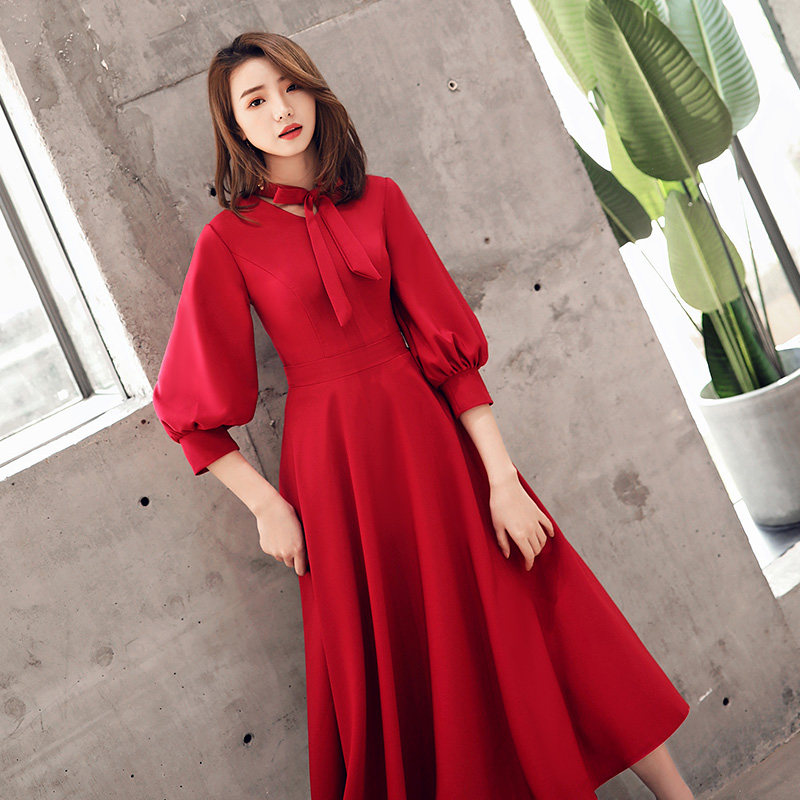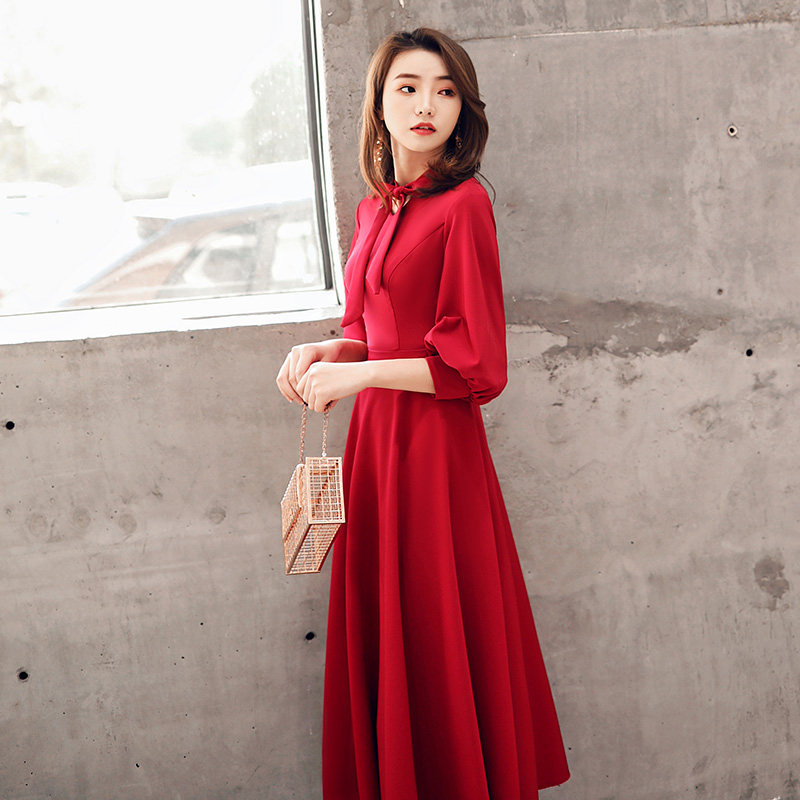 Длинное красное вечернее платье, коллекция 2021, осеннее, средней длины