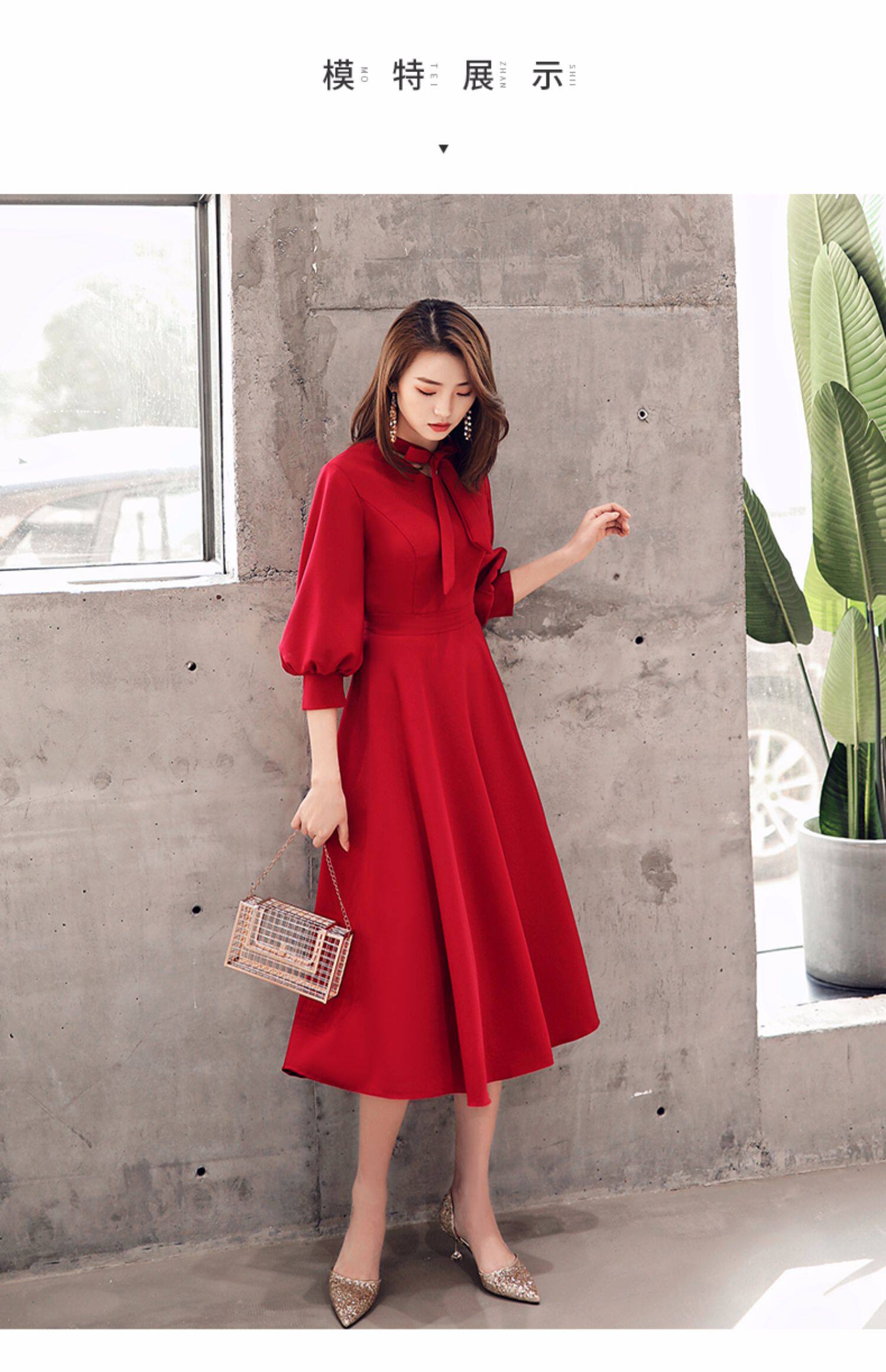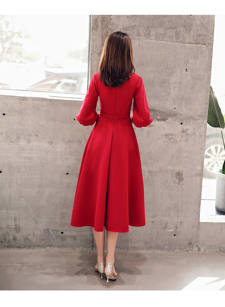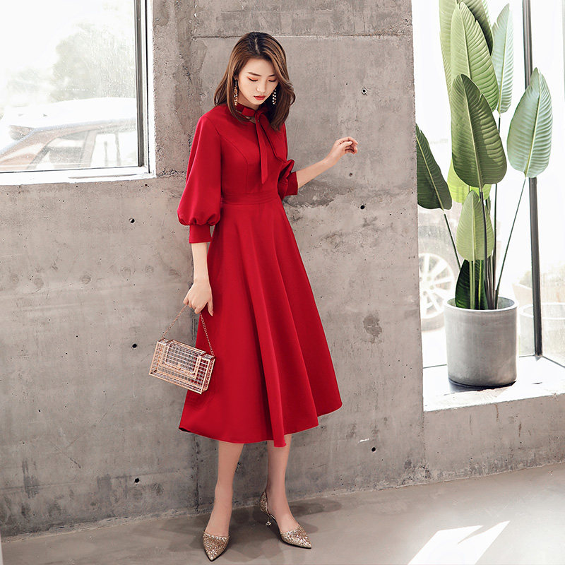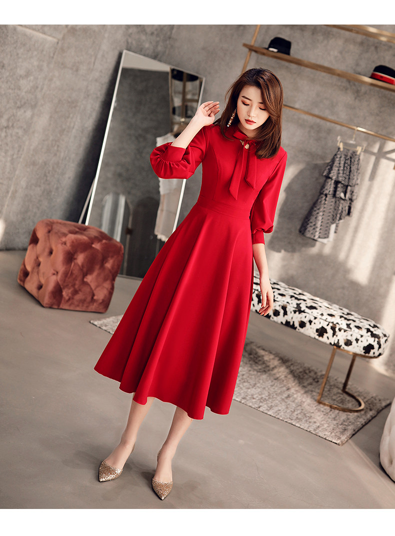 Длинное красное вечернее платье, коллекция 2021, осеннее, средней длины