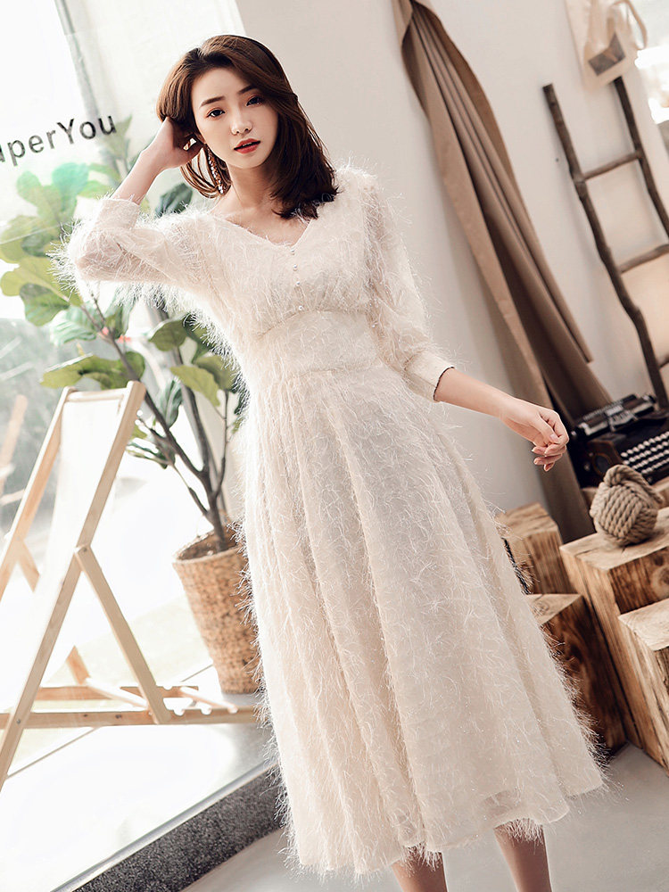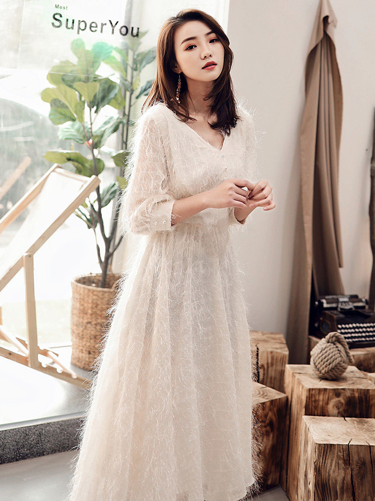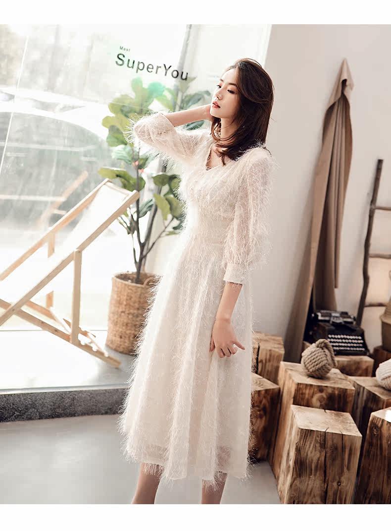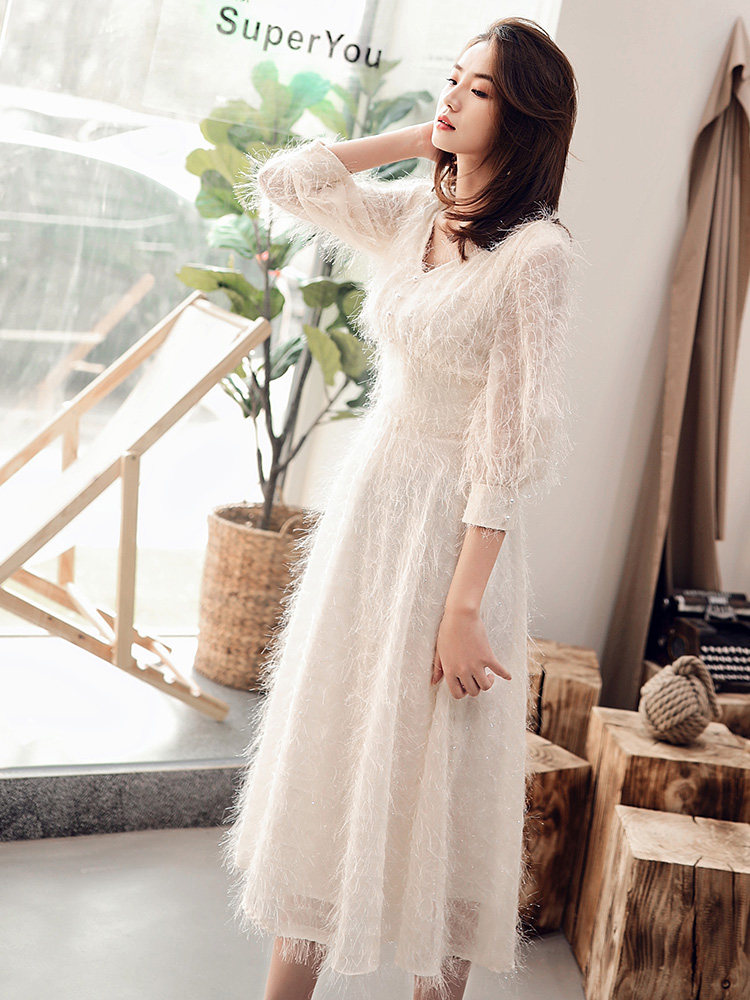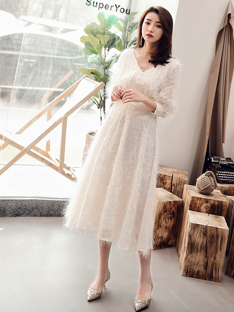 Белое длинное вечернее платье, коллекция 2021, средней длины