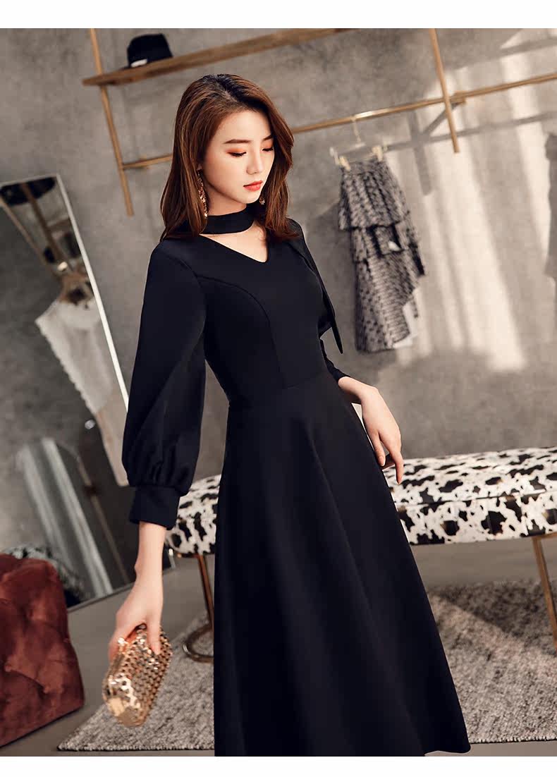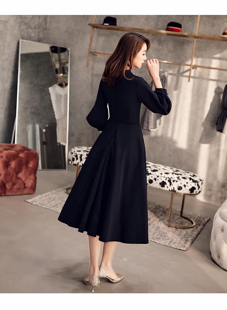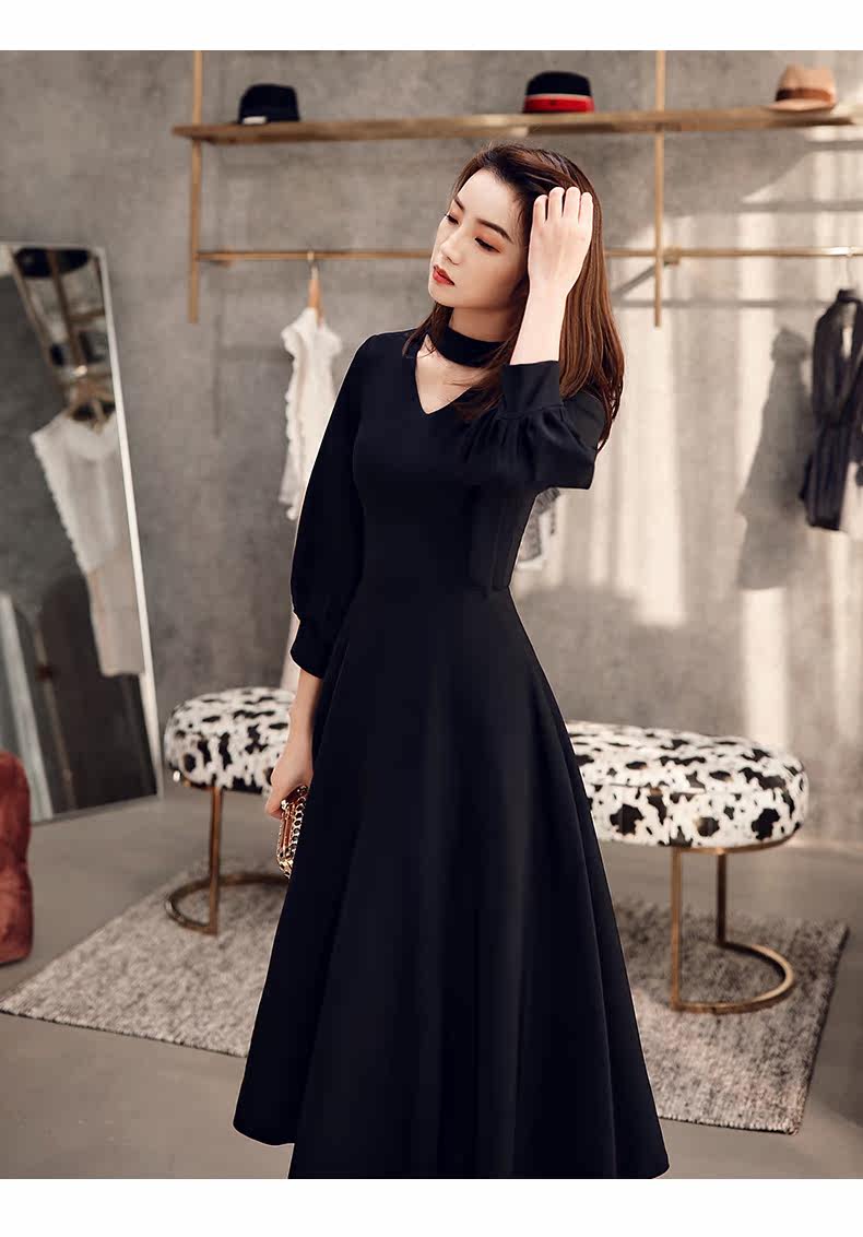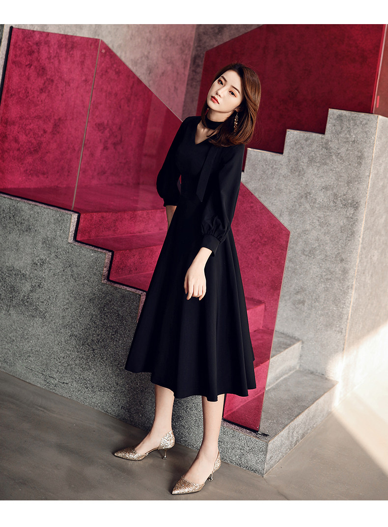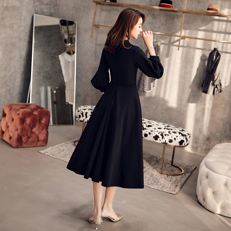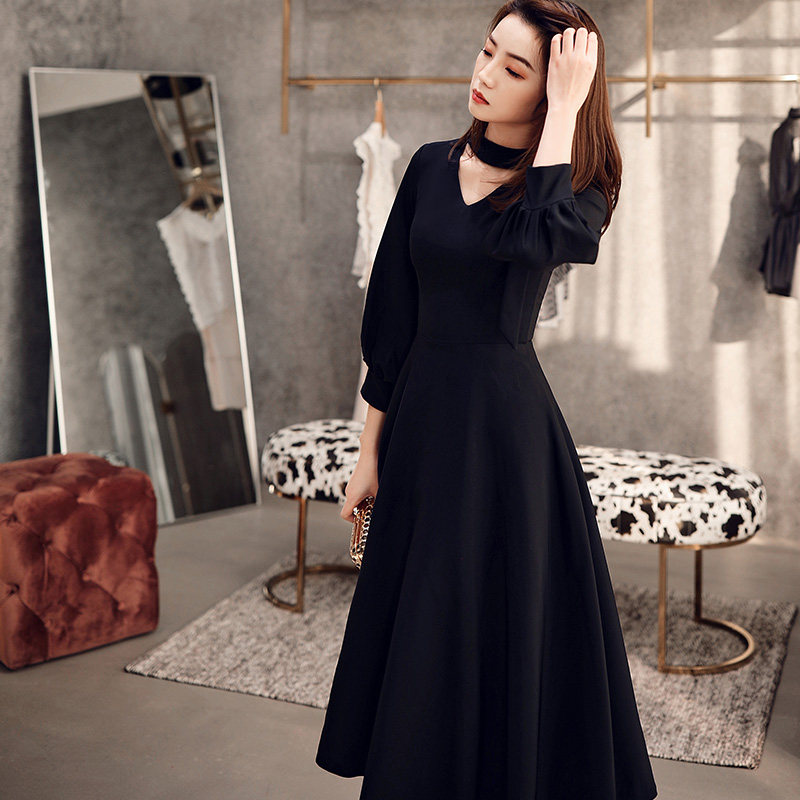 Черное весеннее длинное платье, коллекция 2021, средней длины