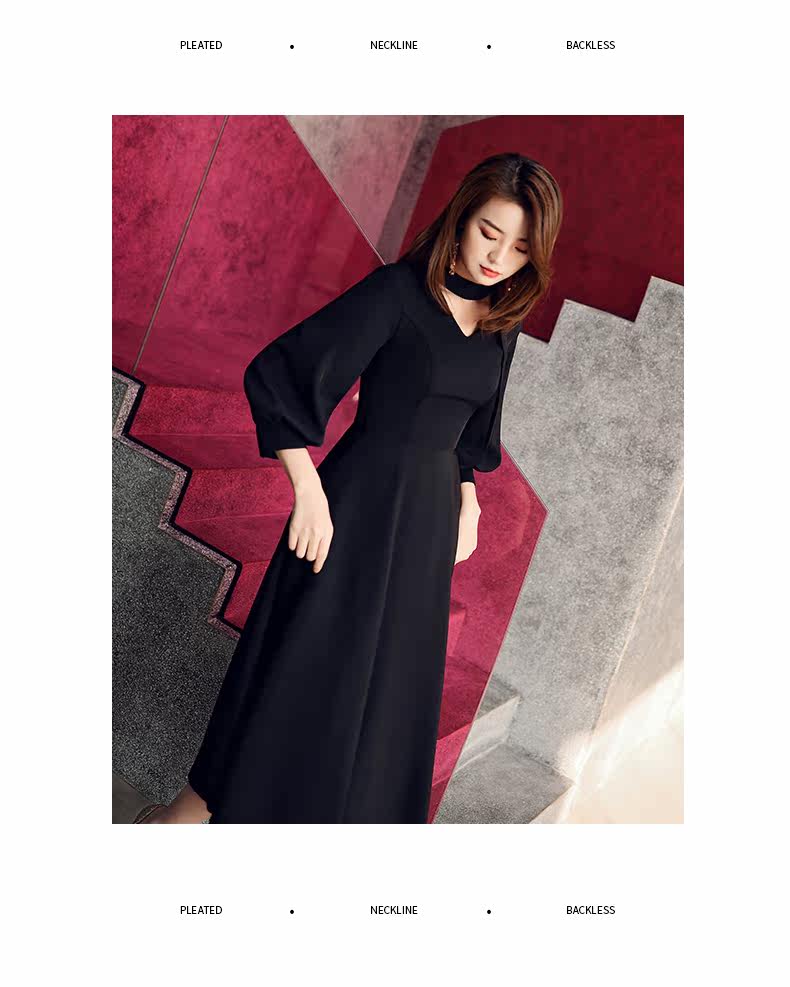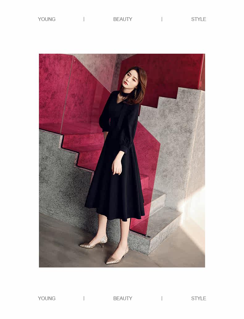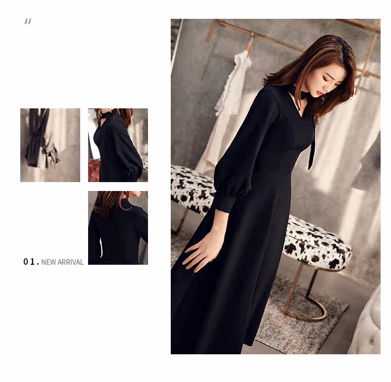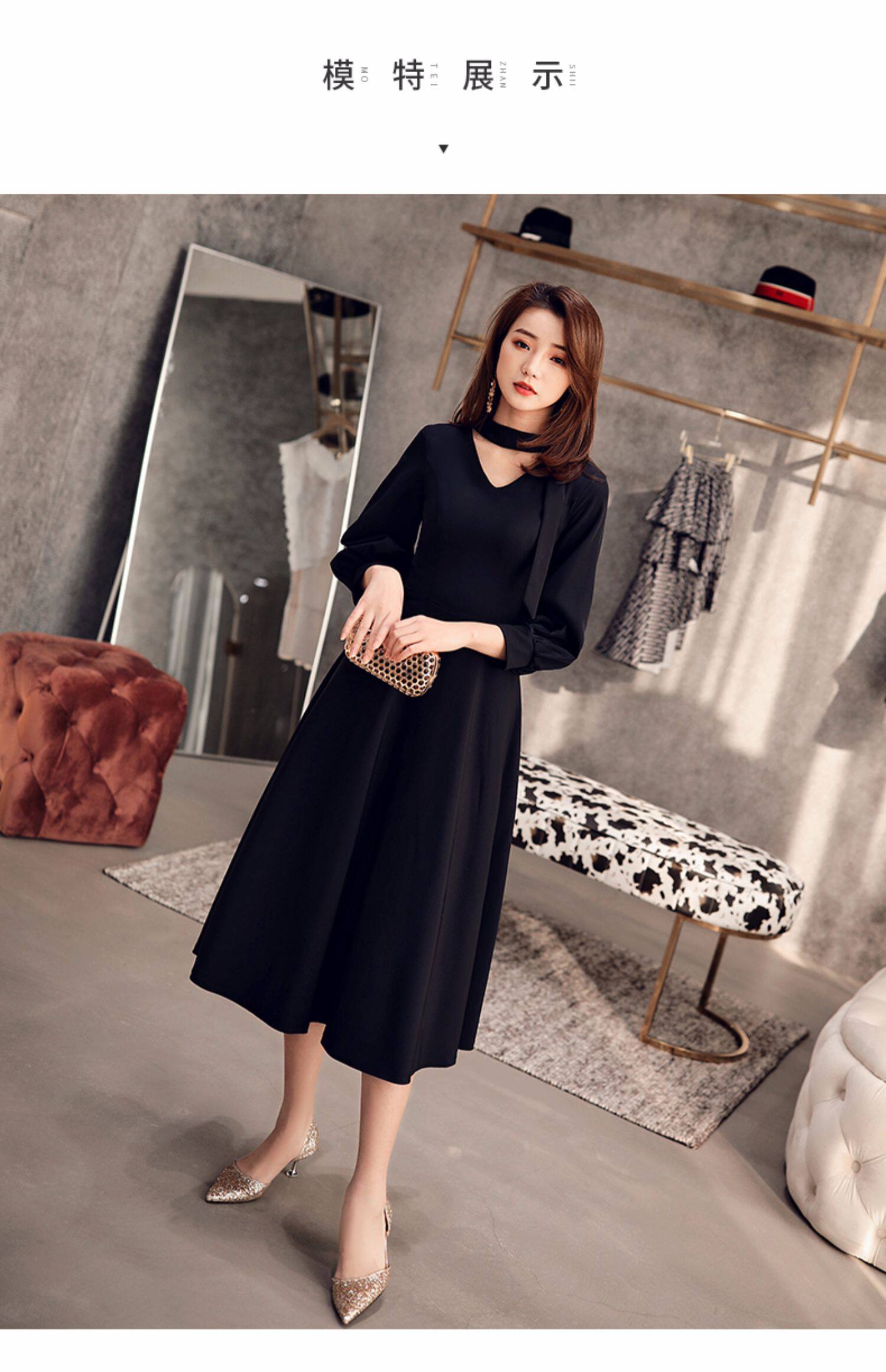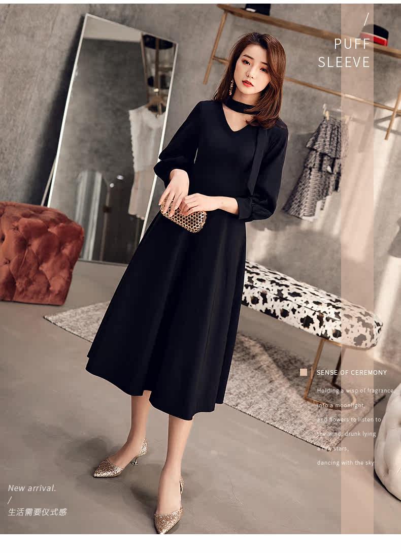 Черное весеннее длинное платье, коллекция 2021, средней длины
