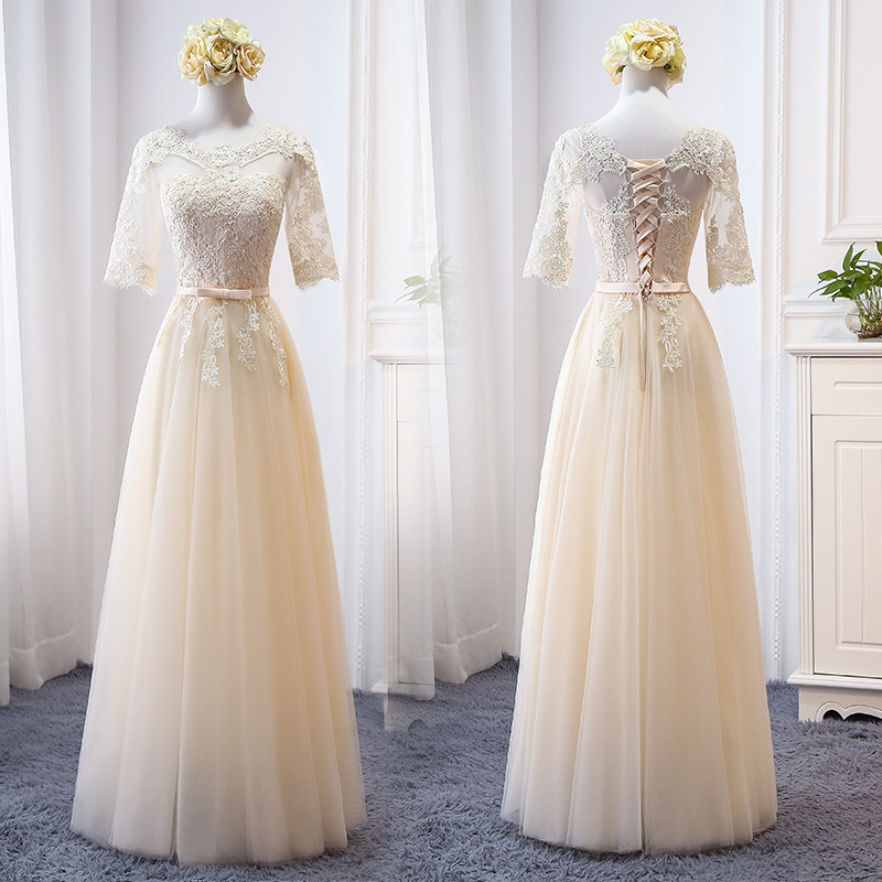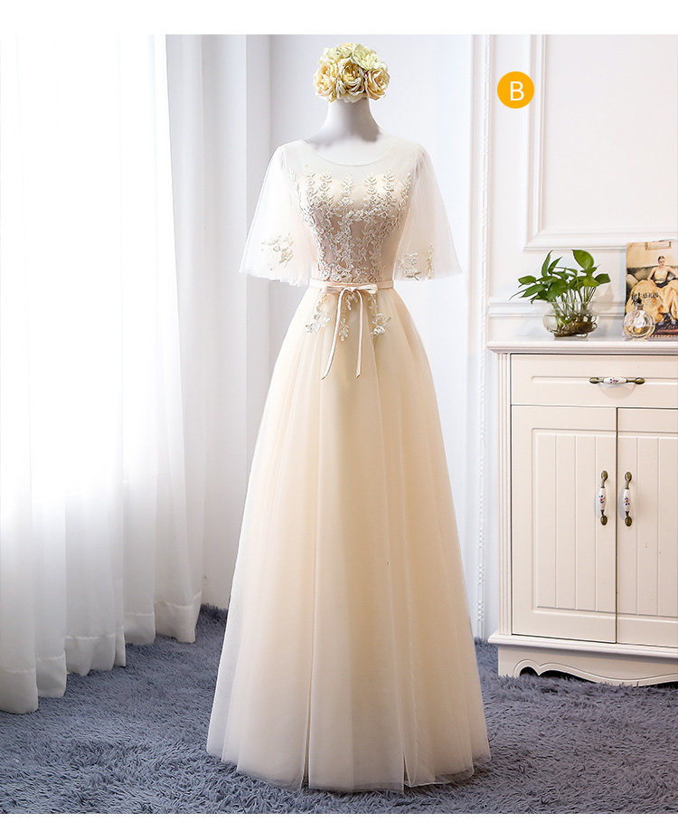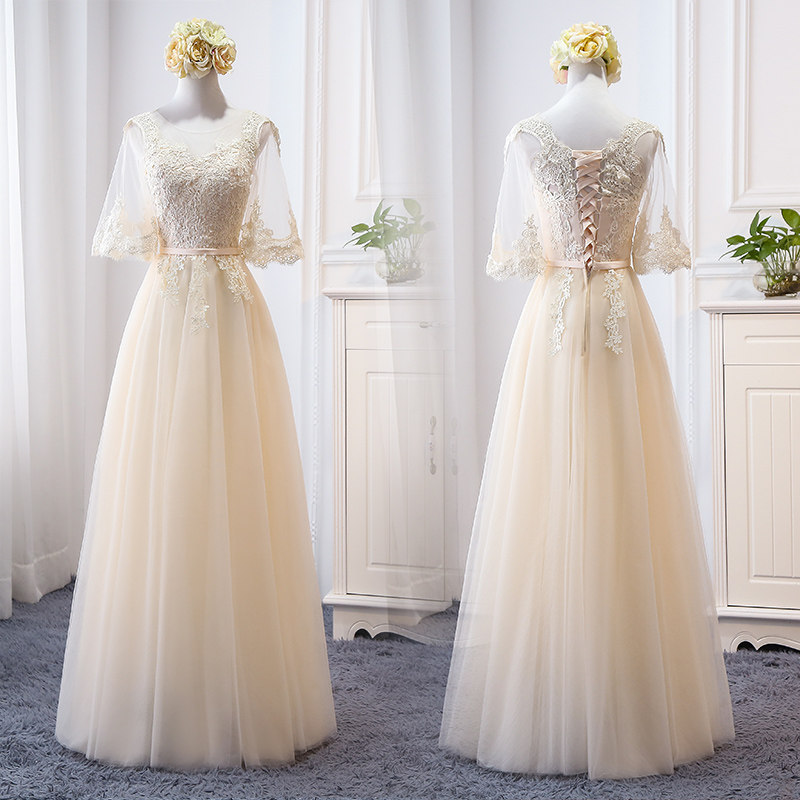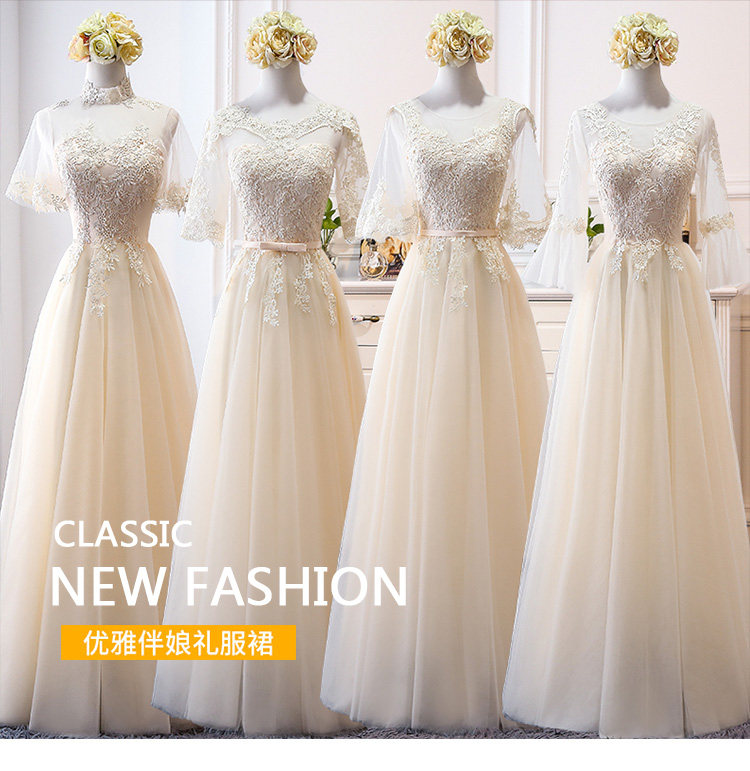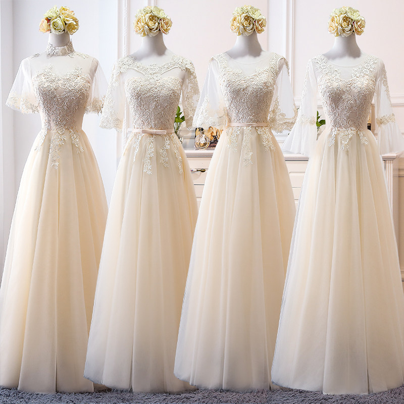 Длинное платье подружки невесты, цвета шампанского