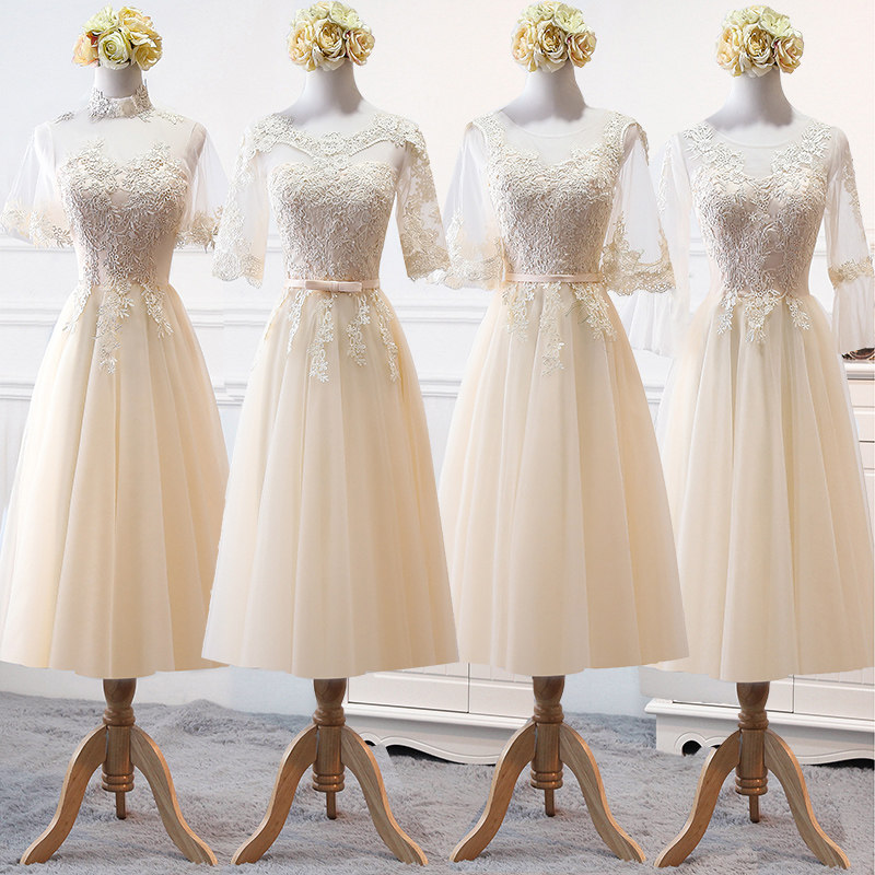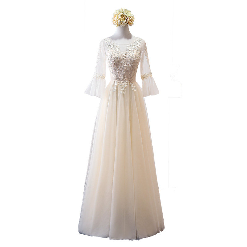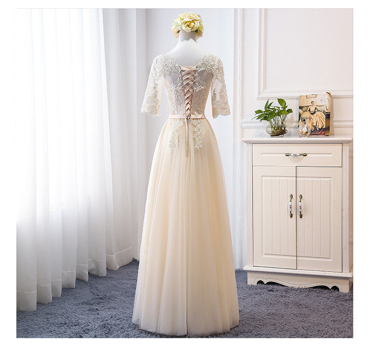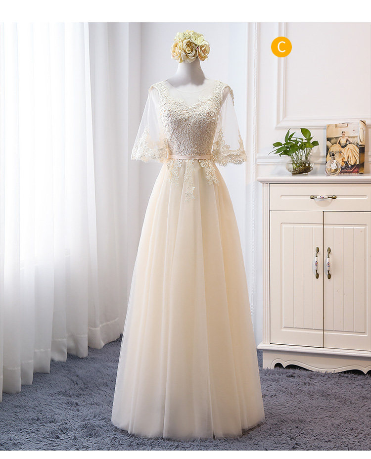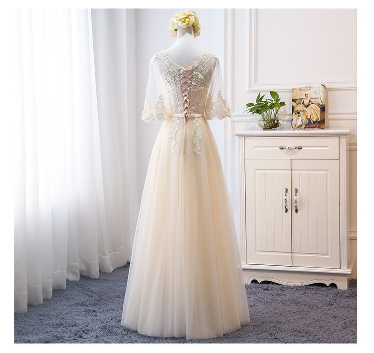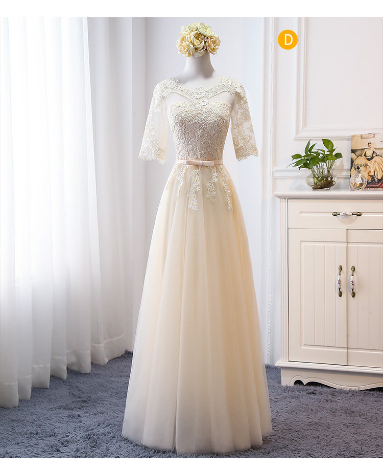Длинное платье подружки невесты, цвета шампанского