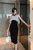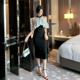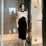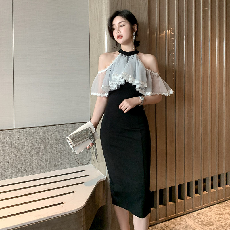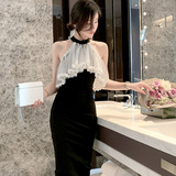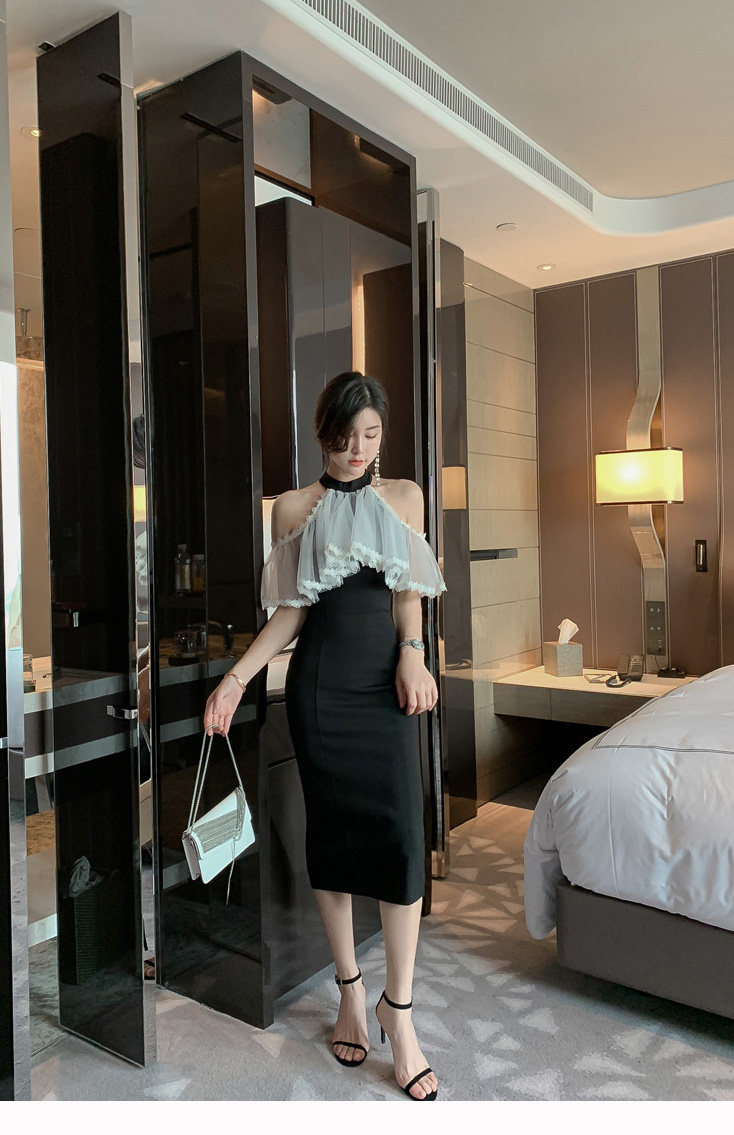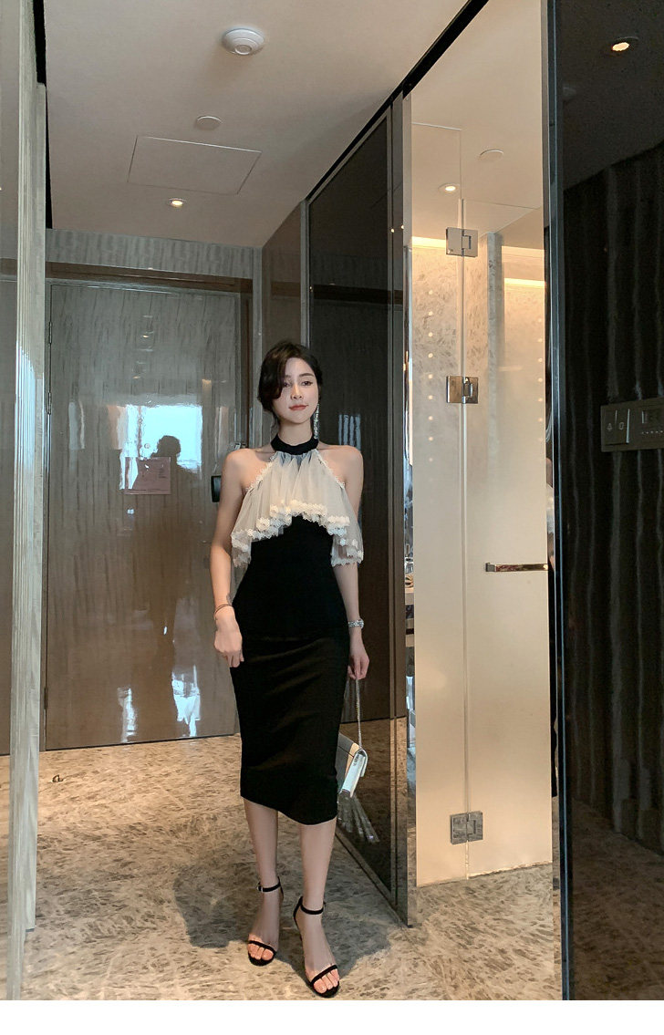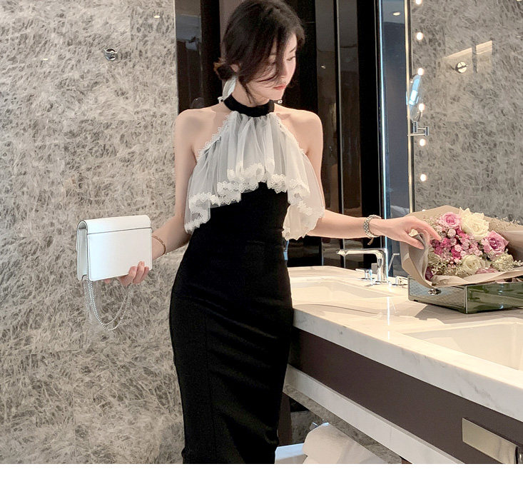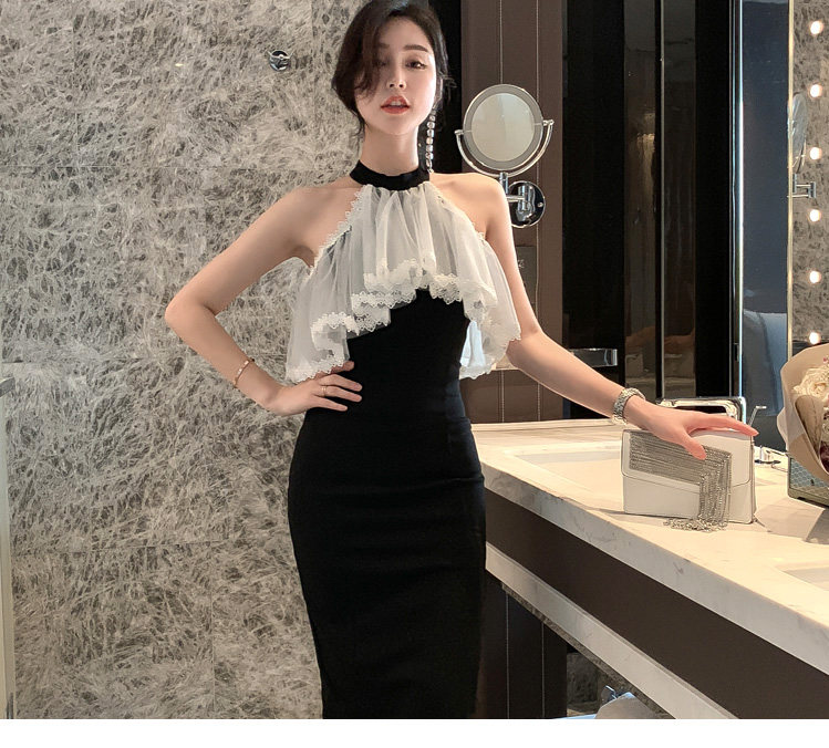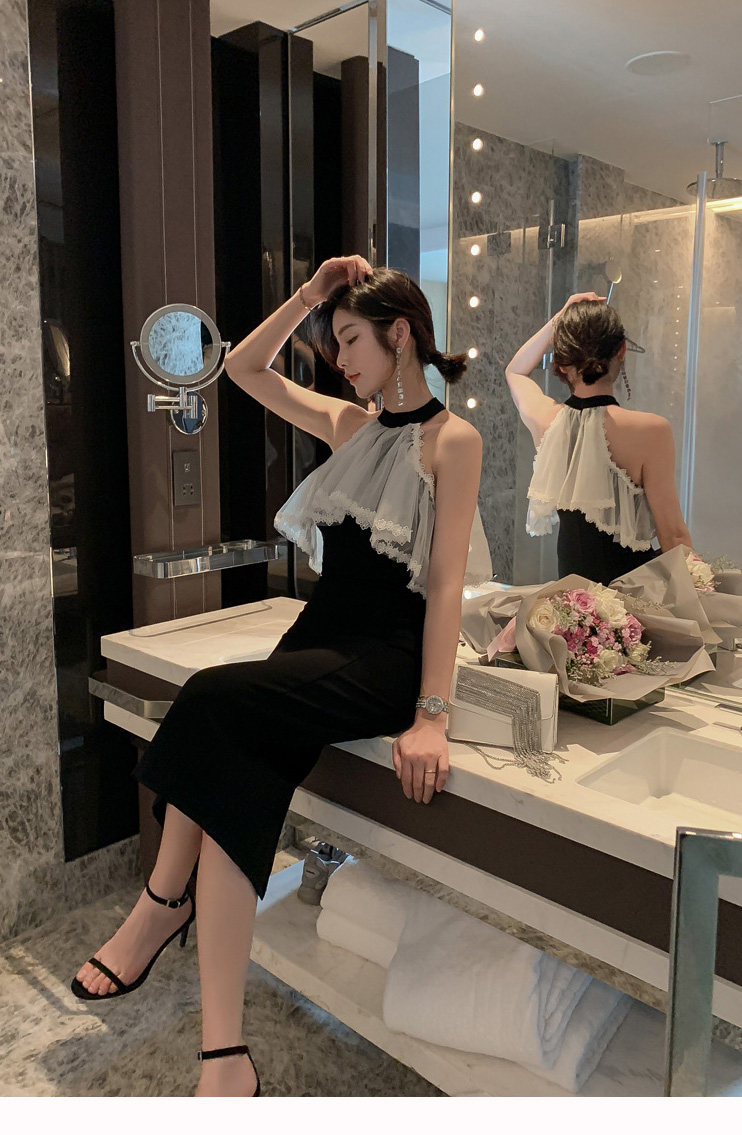 Повесечь шею -есть платье вечернего платья, новая сеть знаменитостей, марля, талия, тонкое клубное платье