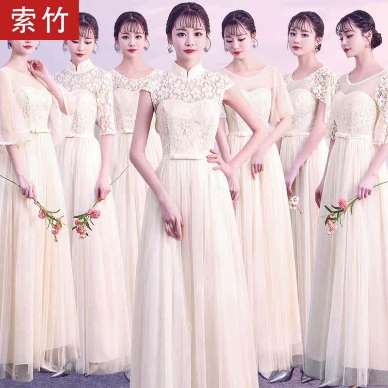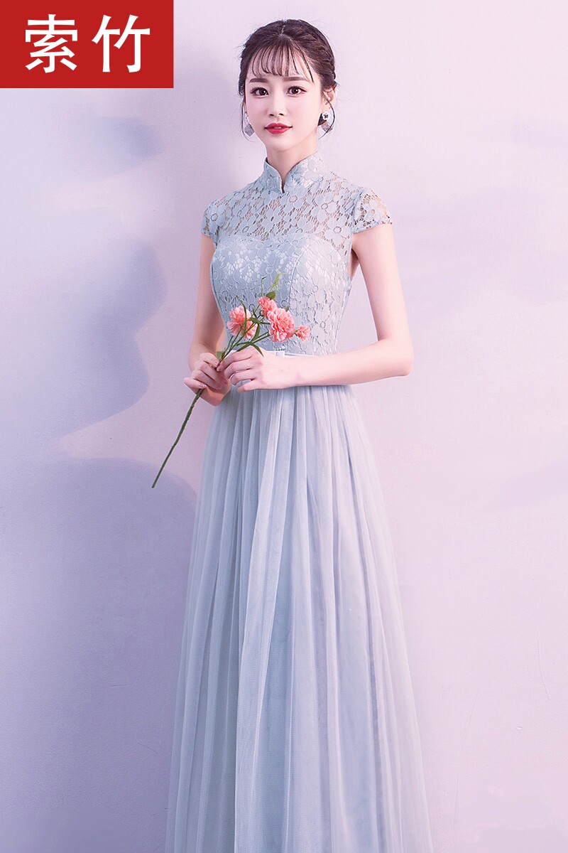 Длинное платье подружки невесты, демисезонная длинная юбка, вечернее платье, 2019, китайский стиль, в корейском стиле