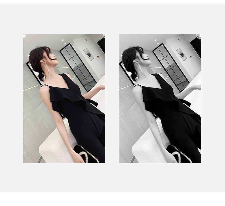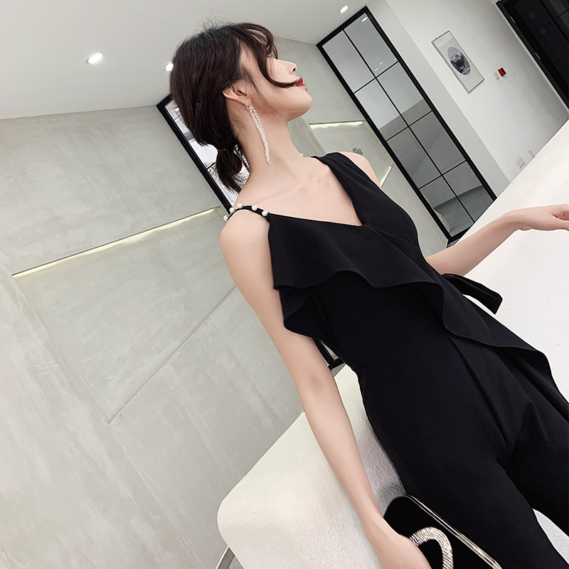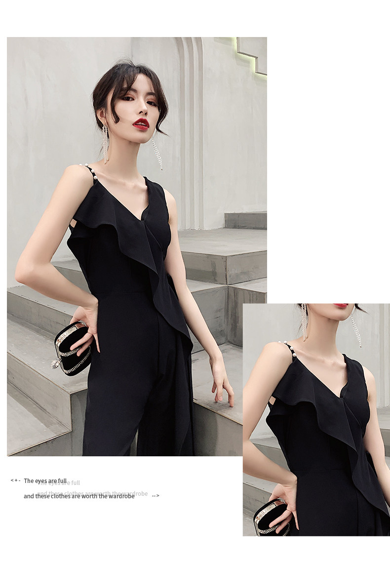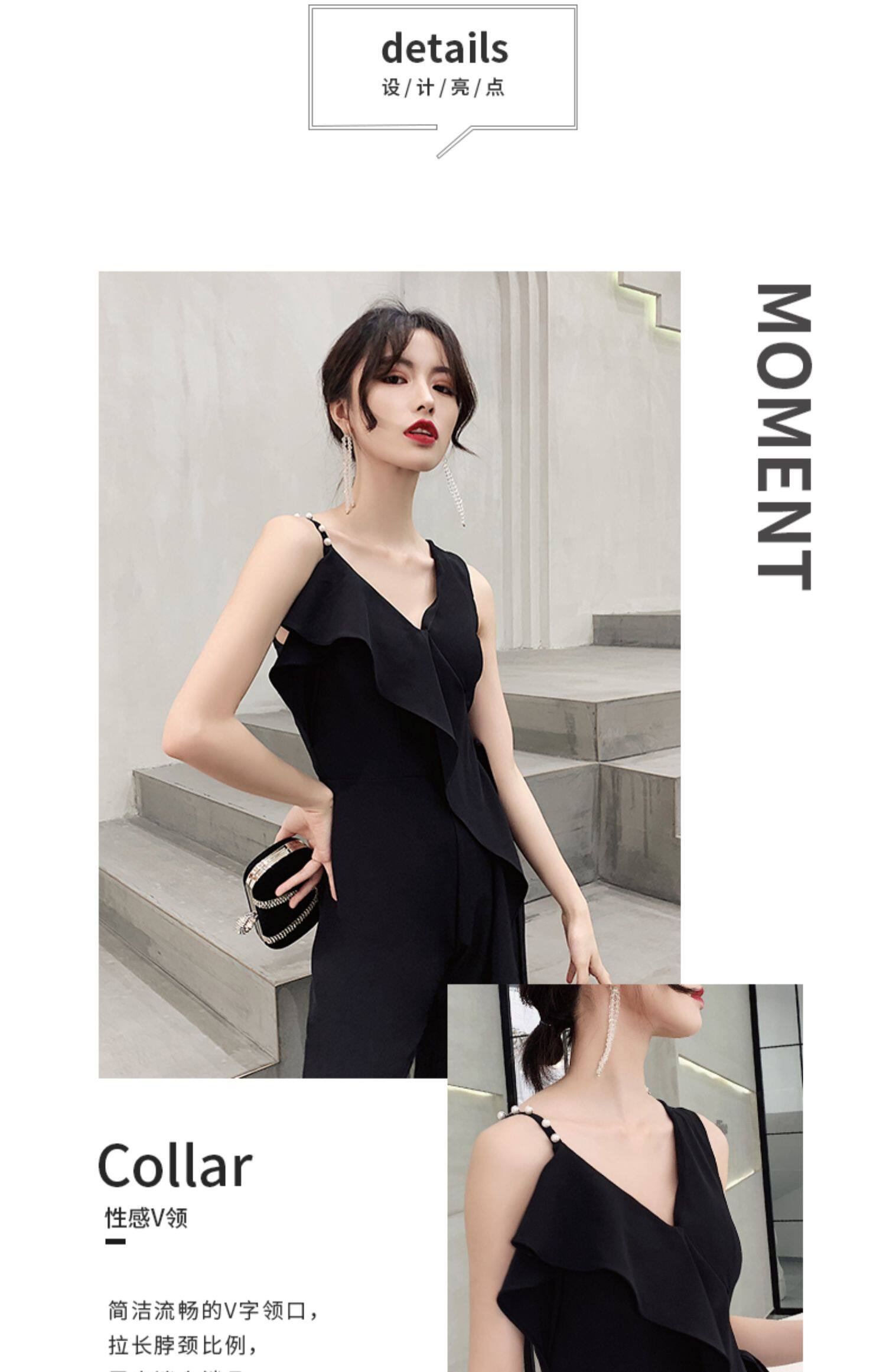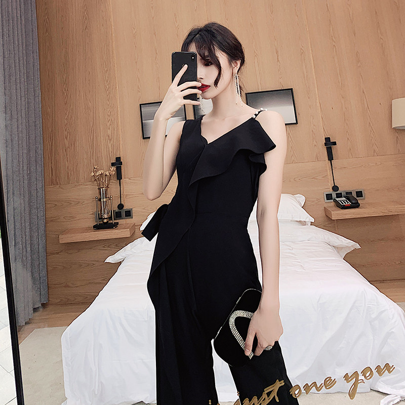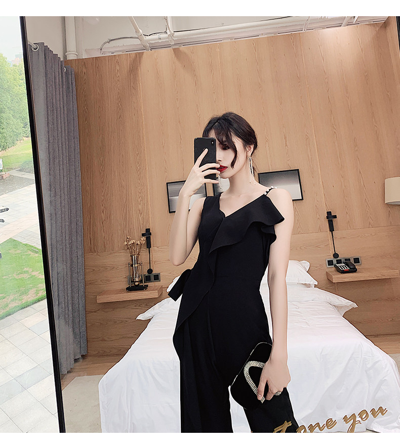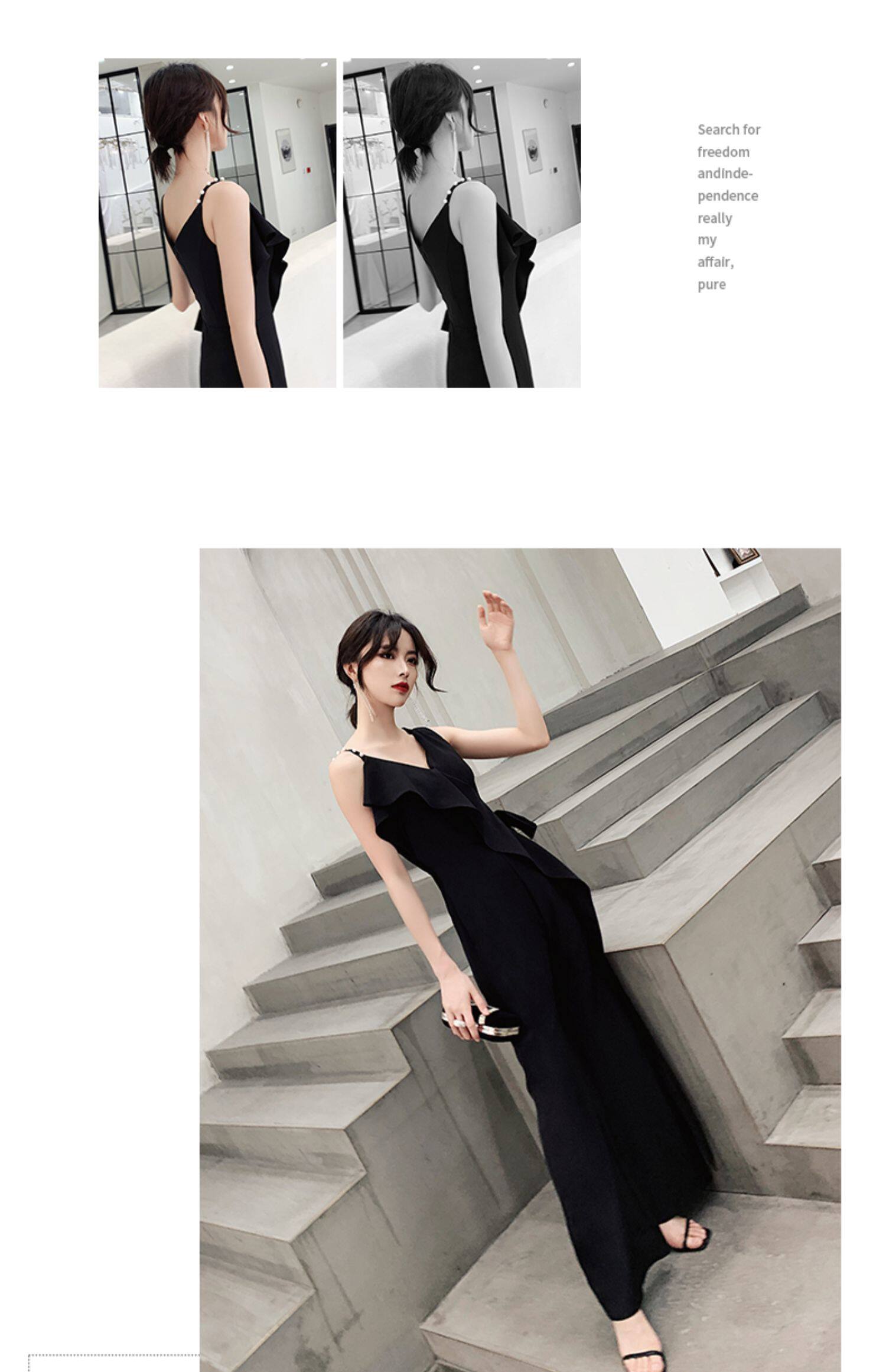 Вечернее платье, черная длинная сумка на одно плечо, комбинезон, коллекция 2023, по фигуре