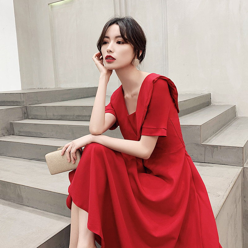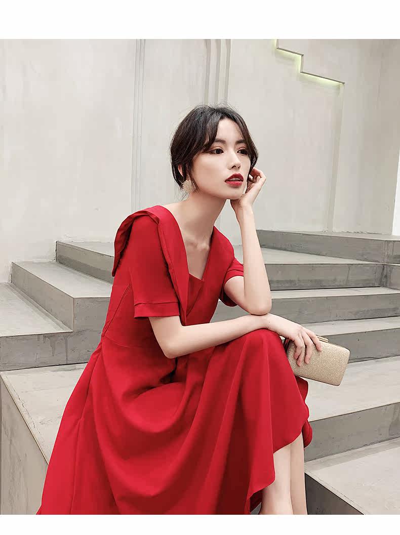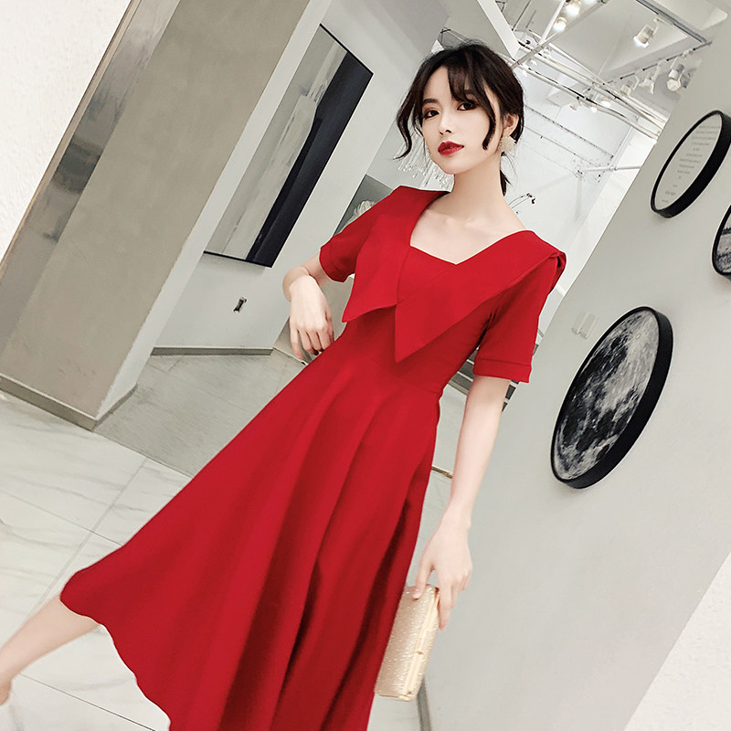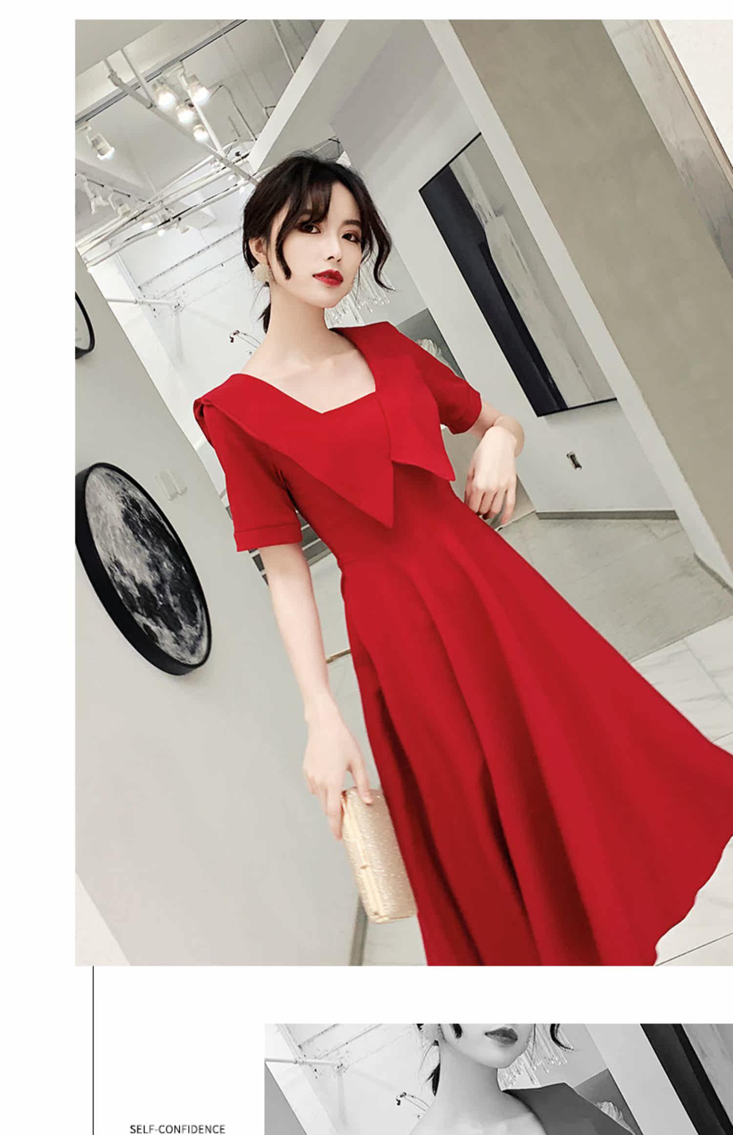 Красное вечернее платье, длинное свадебное платье, коллекция 2021, осеннее, средней длины
