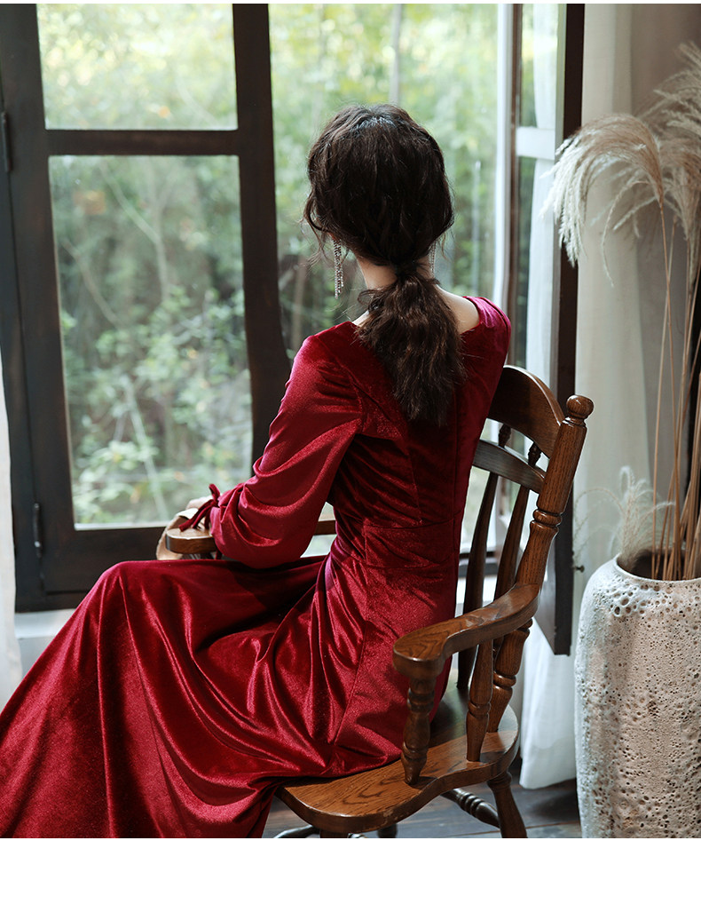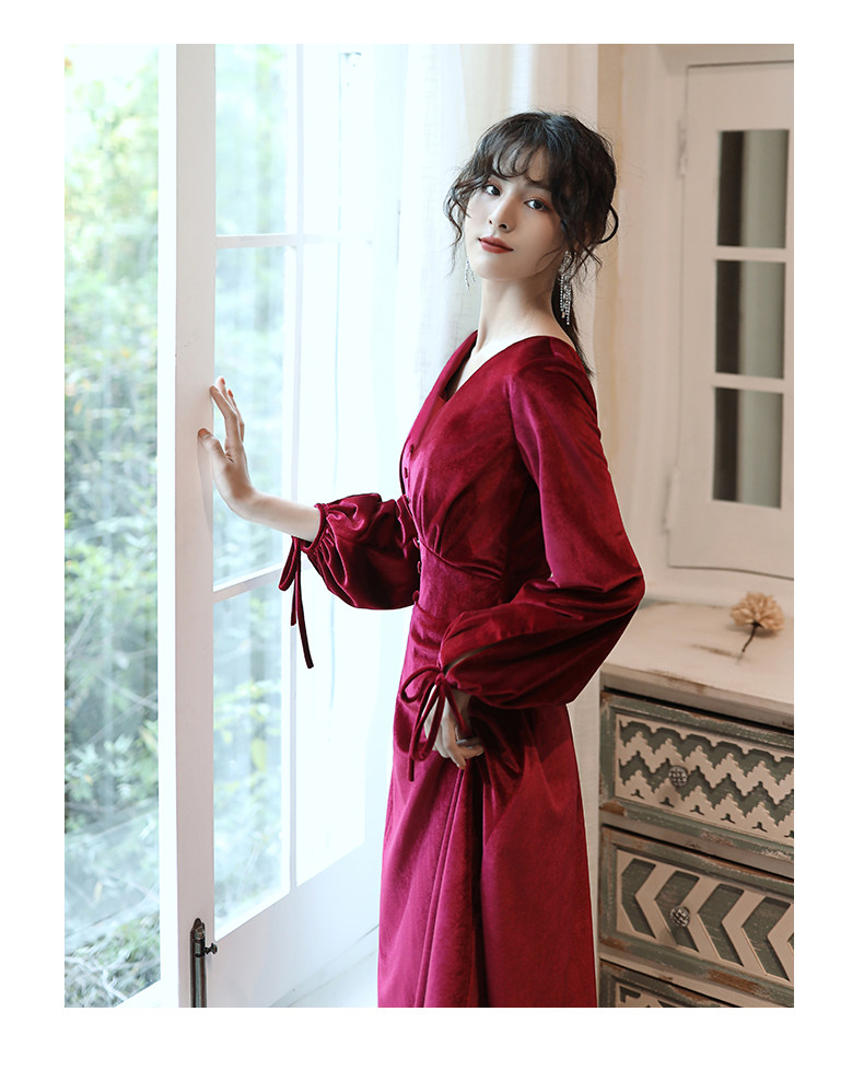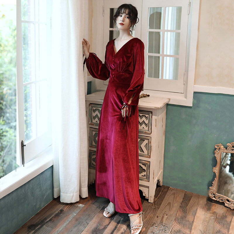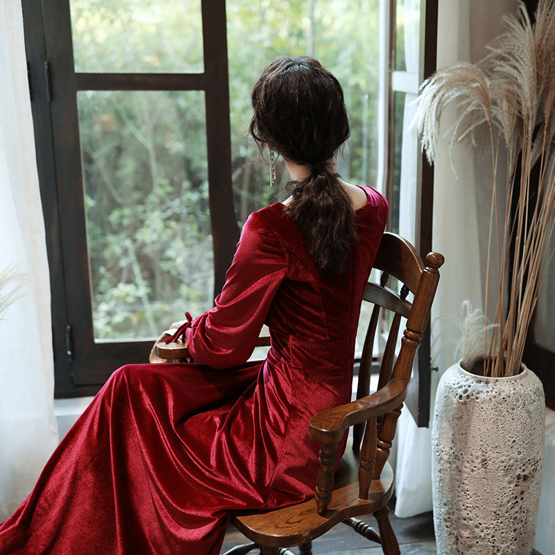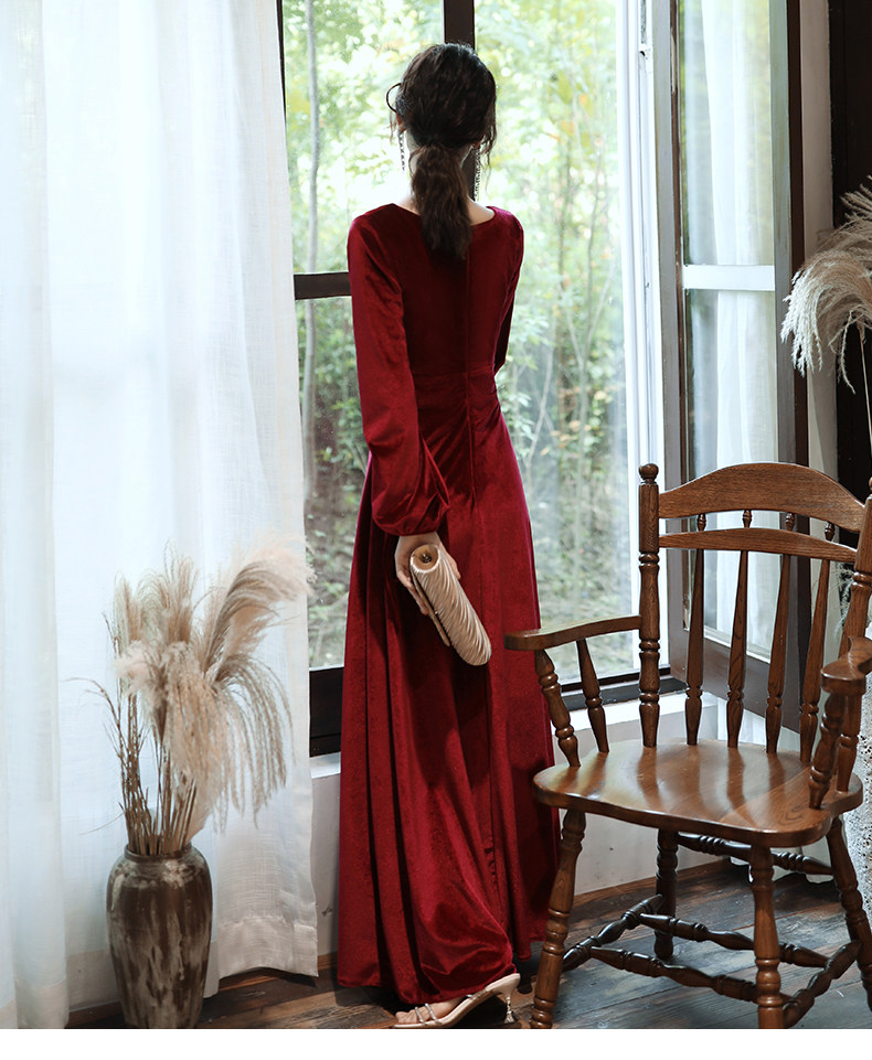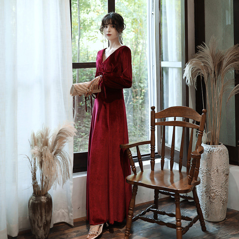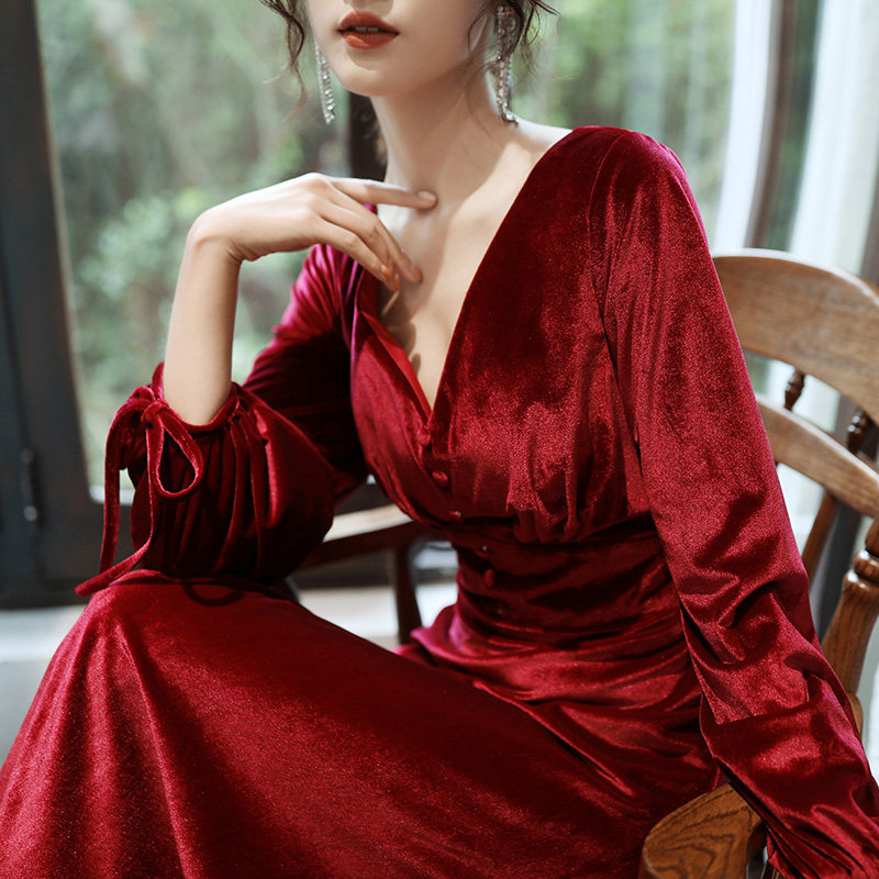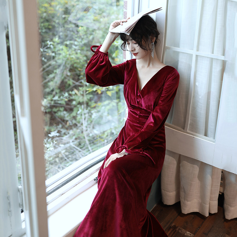 Бордовое вечернее платье для невесты, бархатный лонгслив