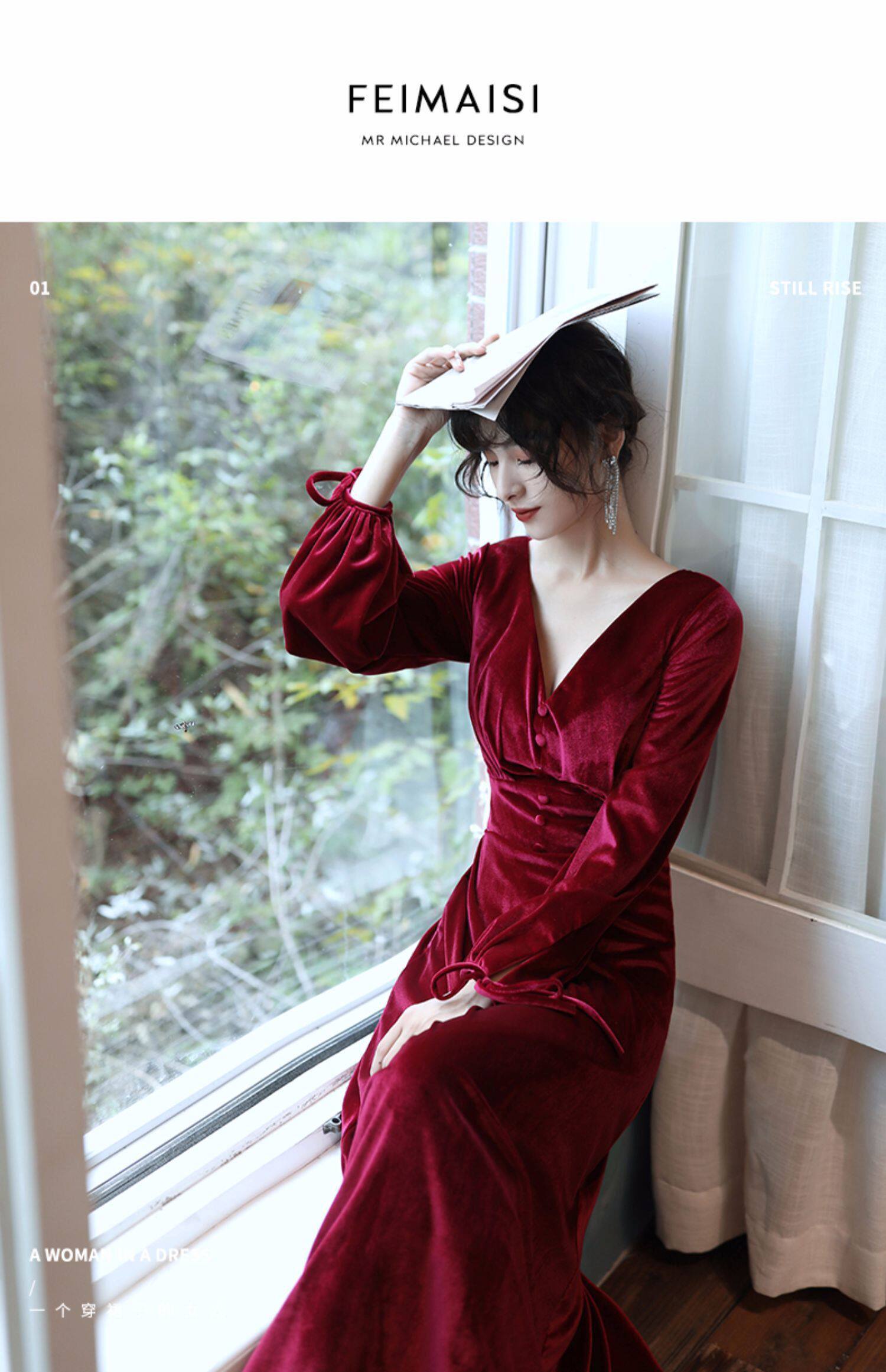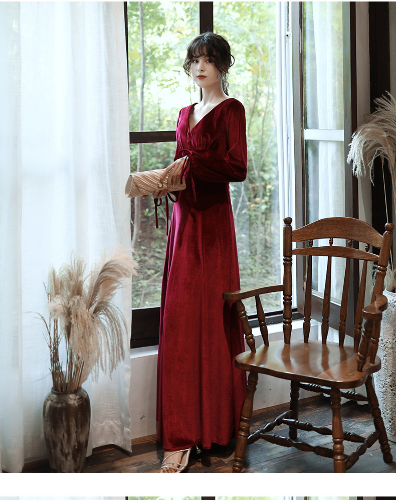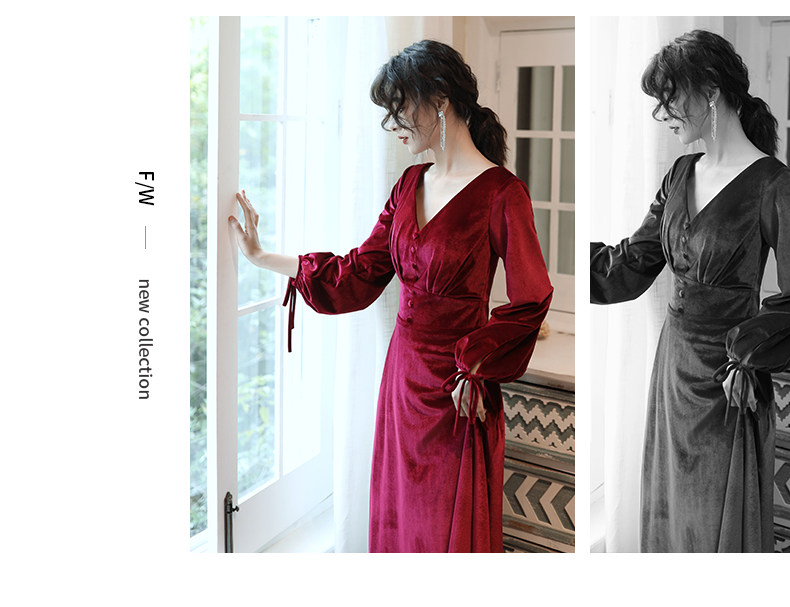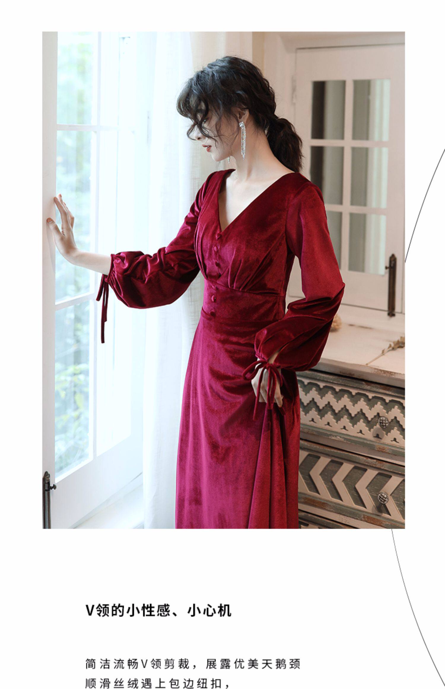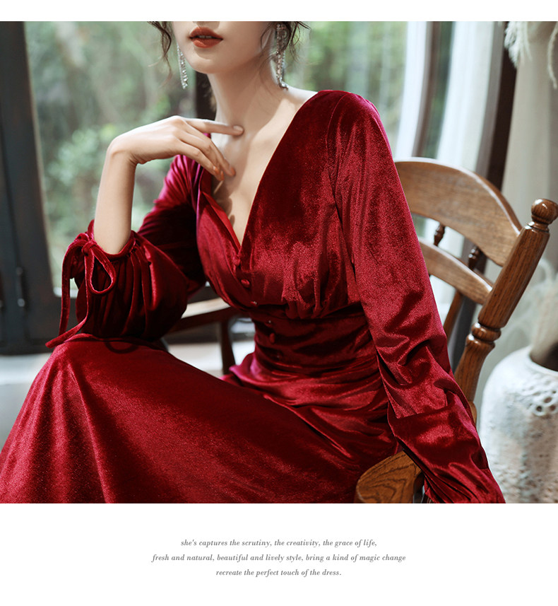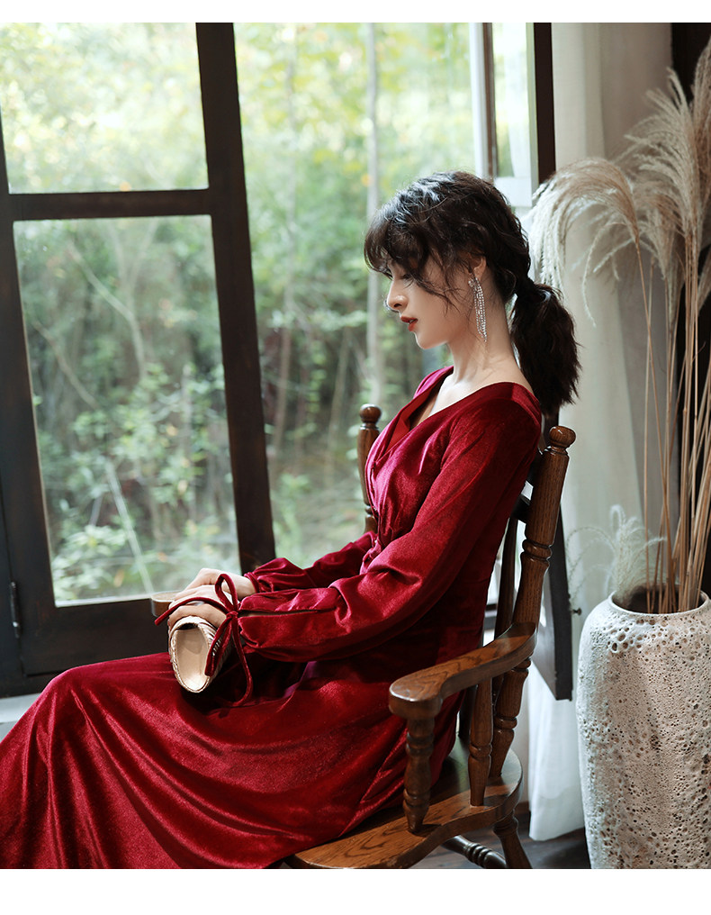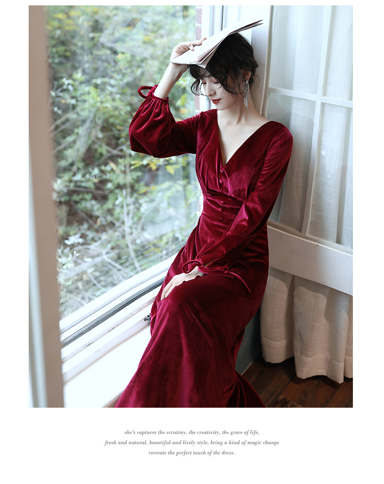 Бордовое вечернее платье для невесты, бархатный лонгслив