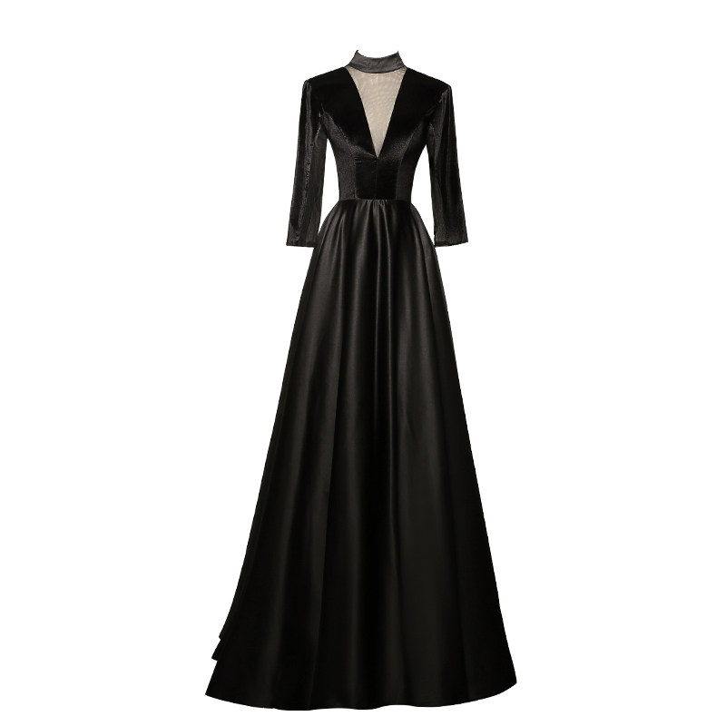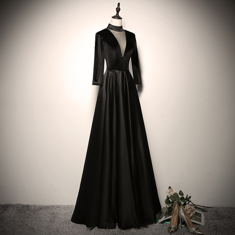 Черное длинное вечернее платье, городской стиль, яркий броский стиль, по фигуре