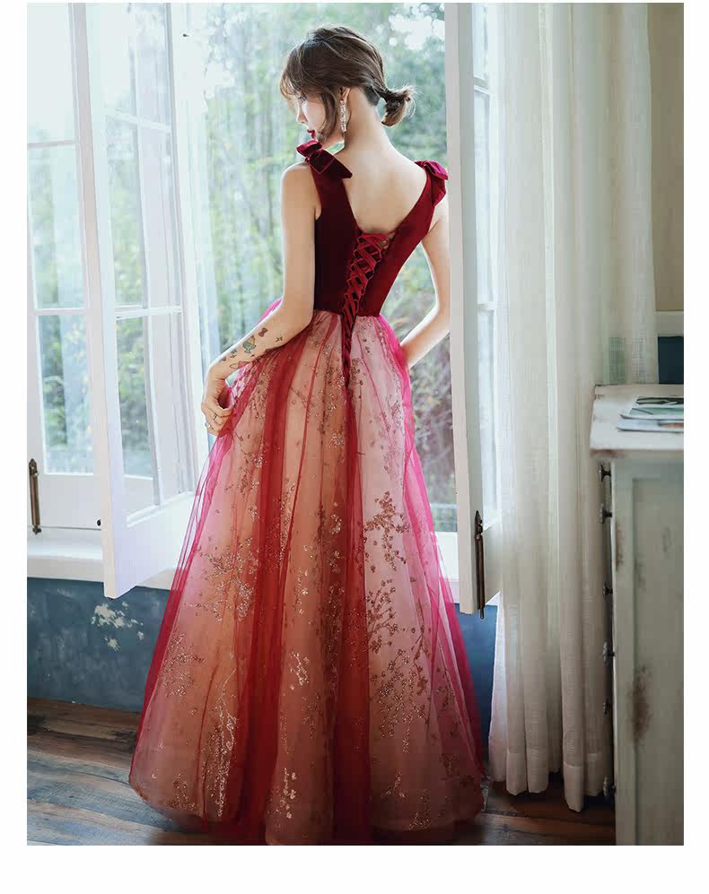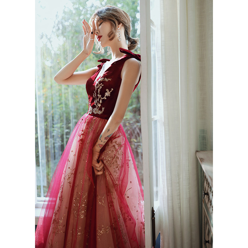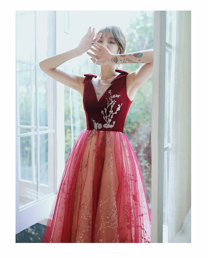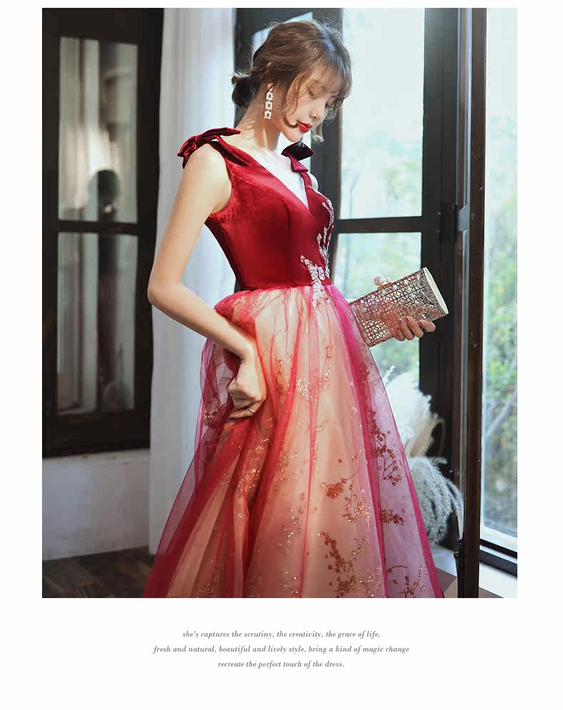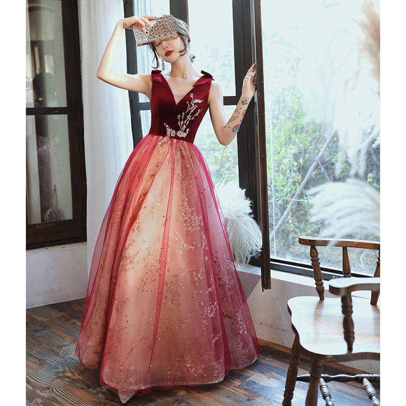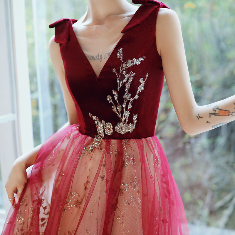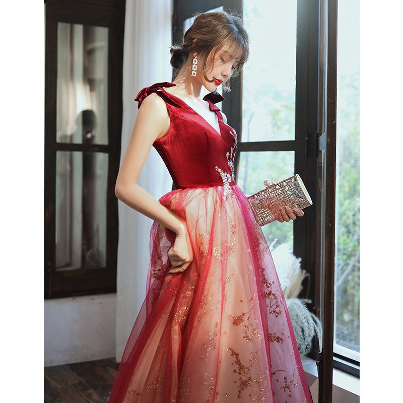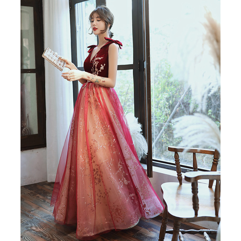 Весеннее вечернее платье, бордовое длинное свадебное платье для невесты, юбка, коллекция 2021, V-образный вырез