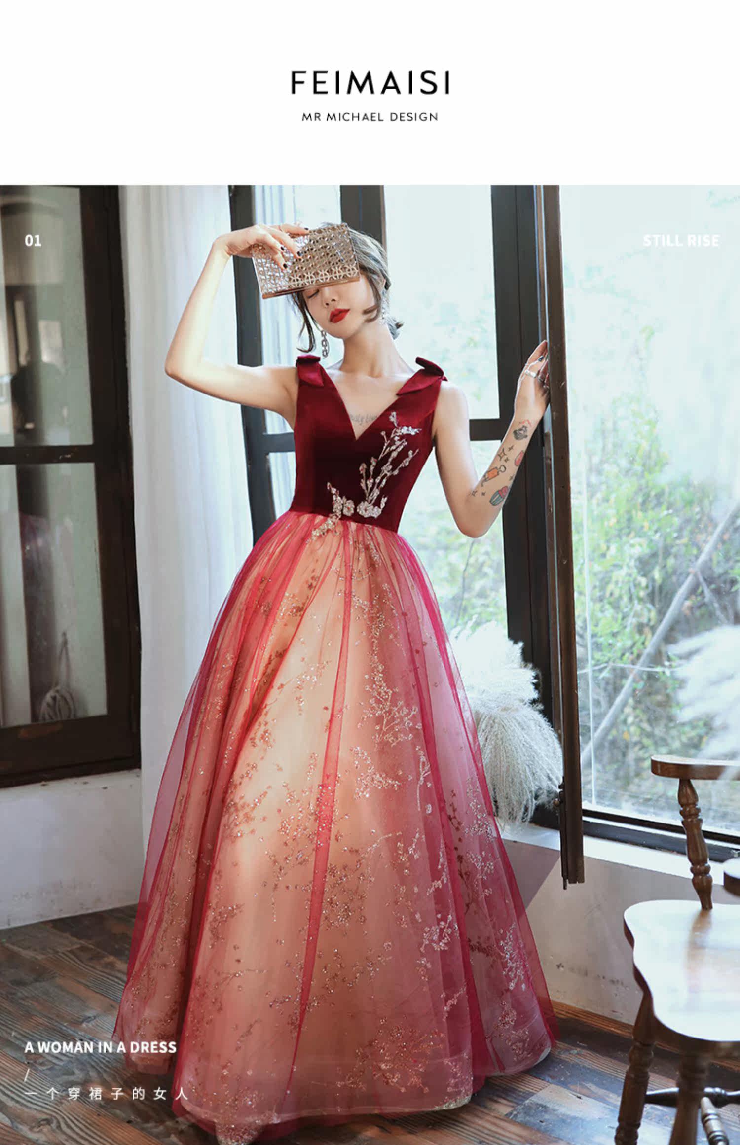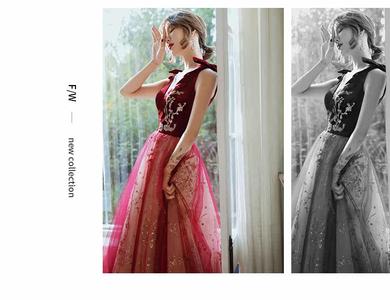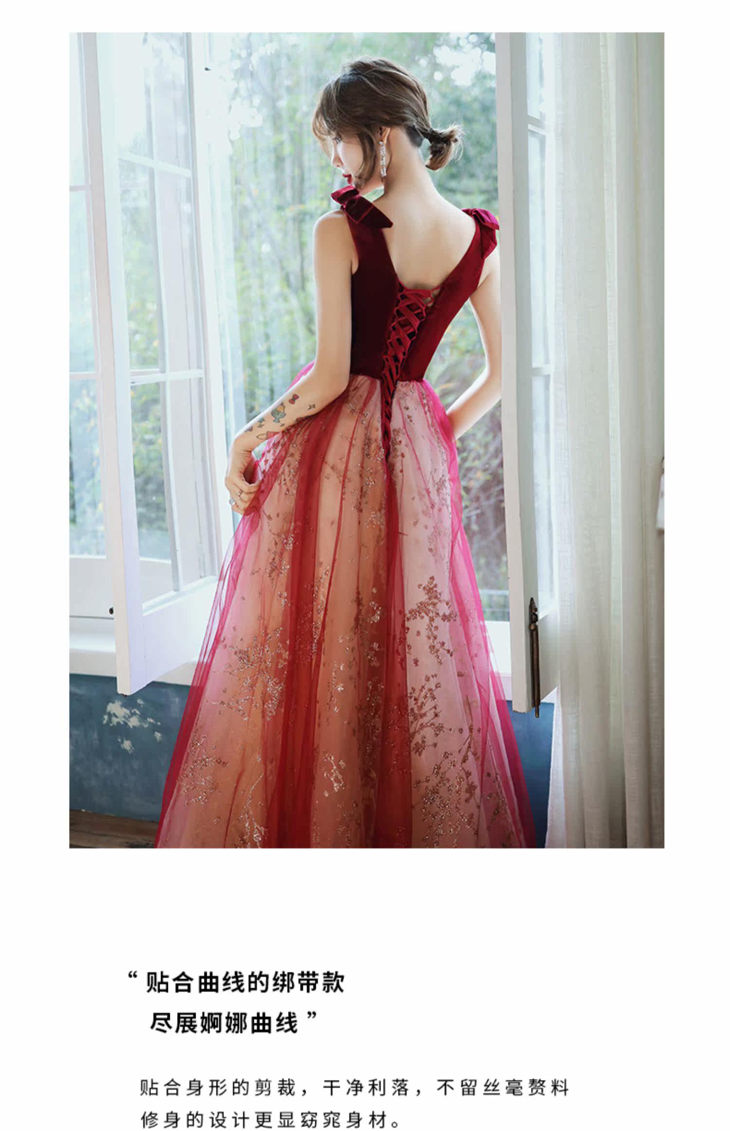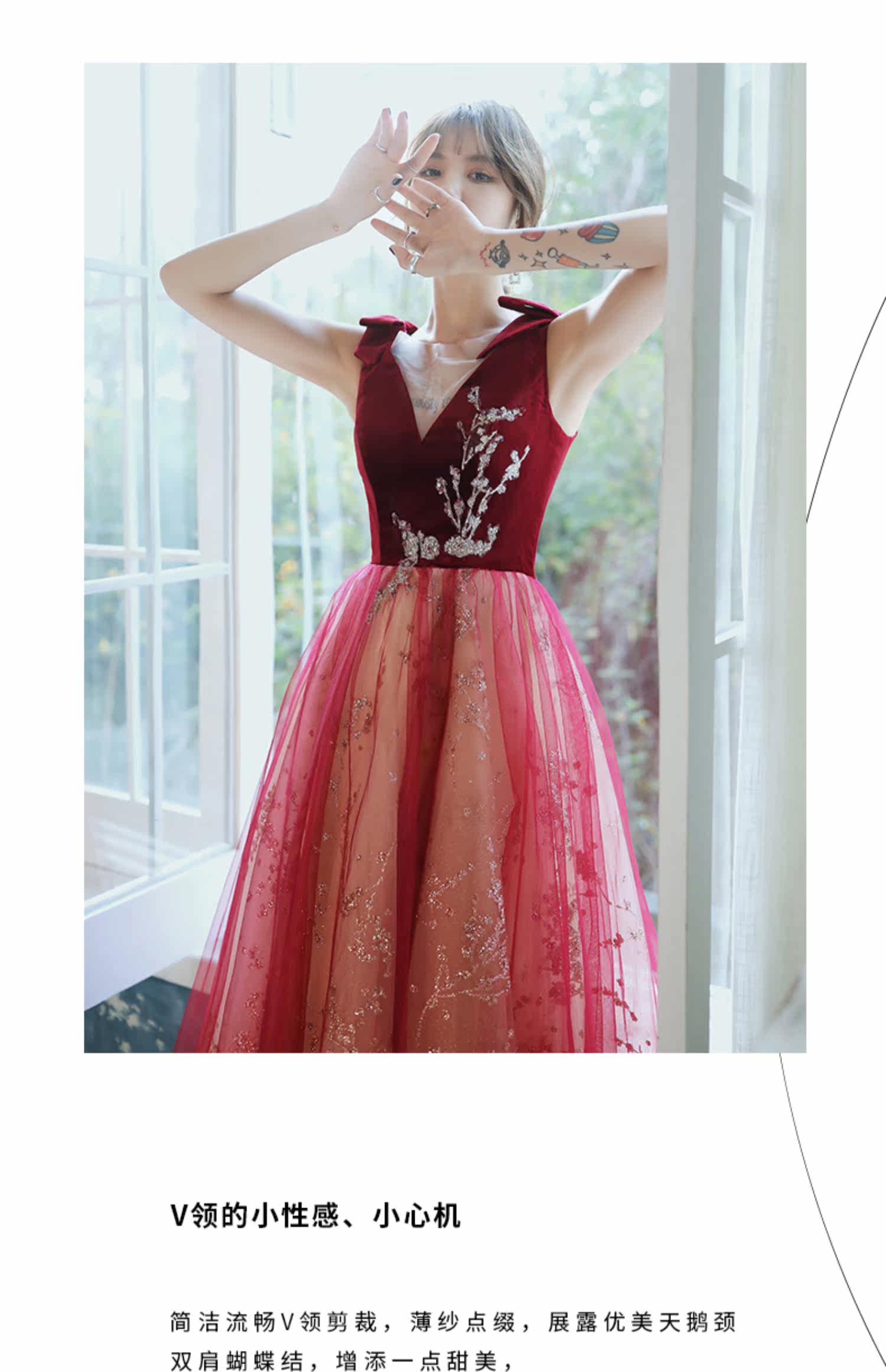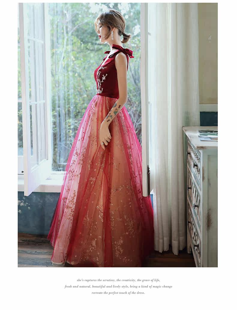 Весеннее вечернее платье, бордовое длинное свадебное платье для невесты, юбка, коллекция 2021, V-образный вырез