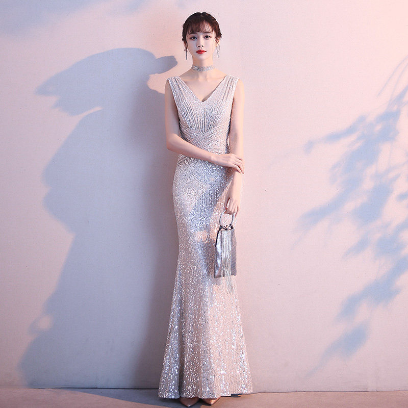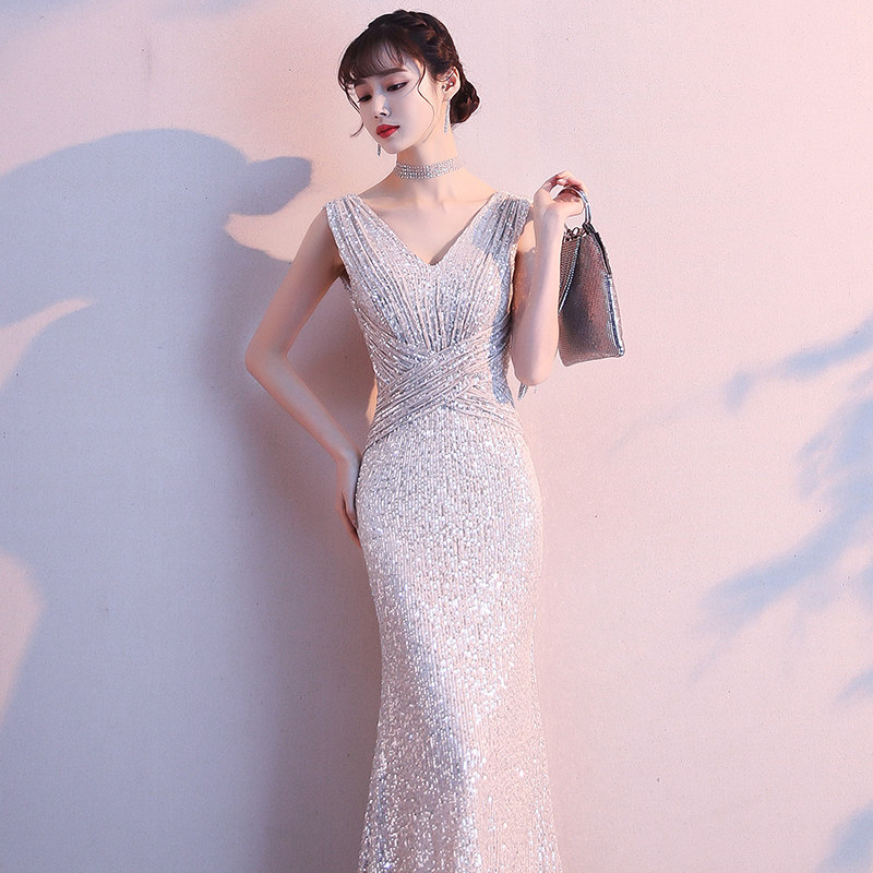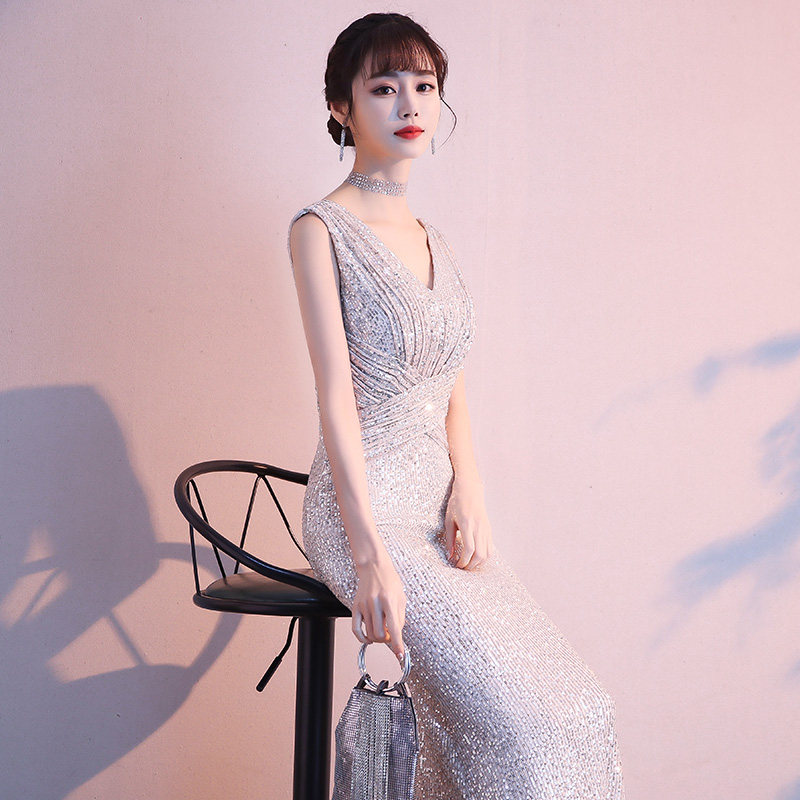 Вечернее платье, элитные блестки для ногтей, легкий роскошный стиль, крой «рыбий хвост»