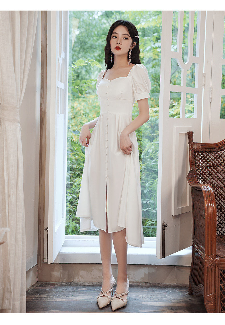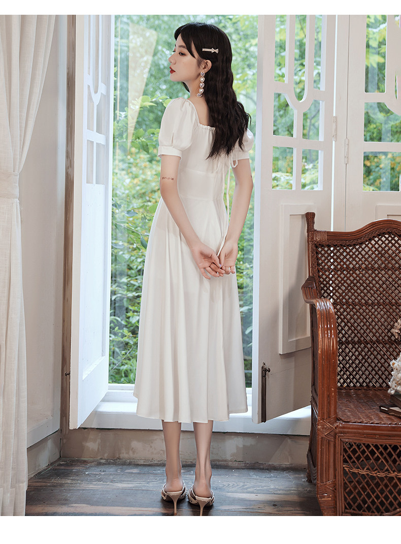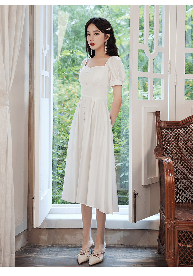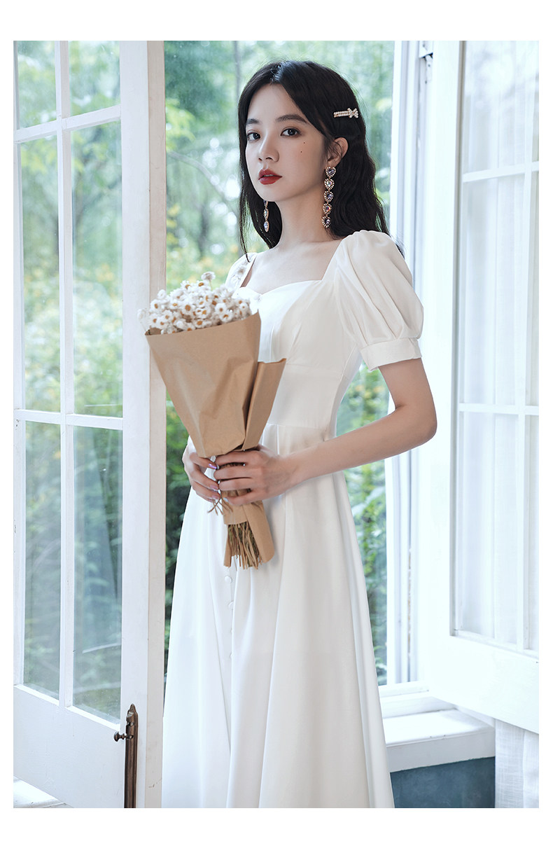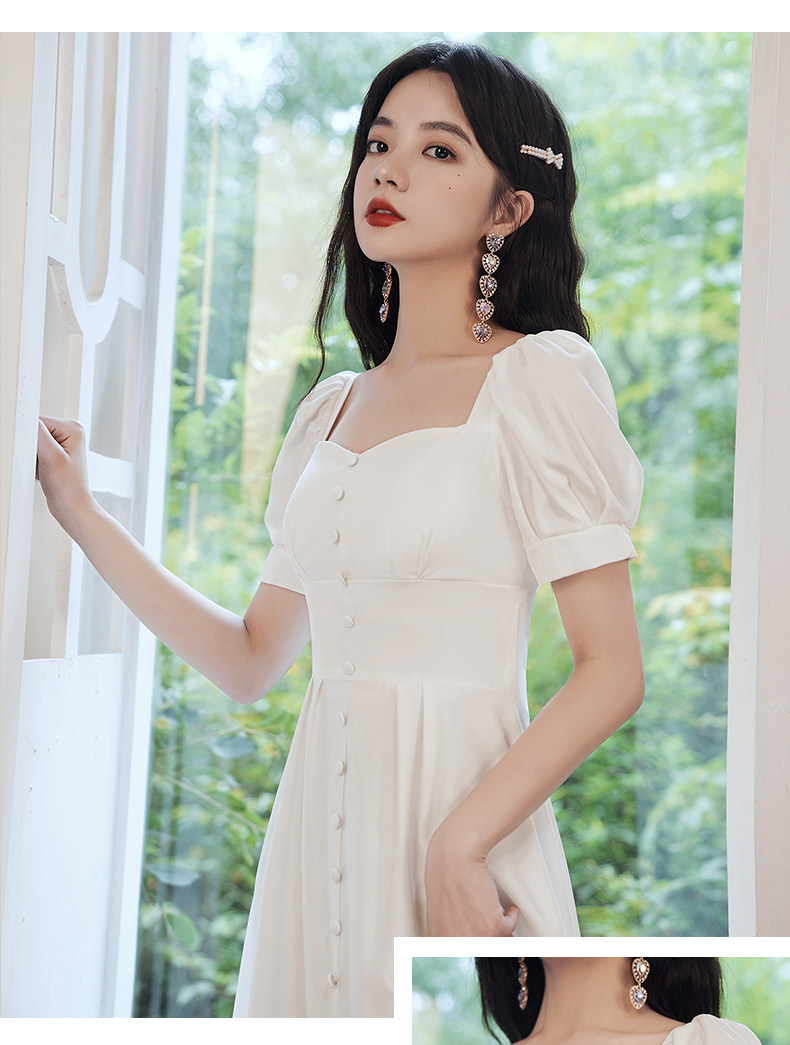 Милое белое вечернее платье, квадратный вырез, французский стиль