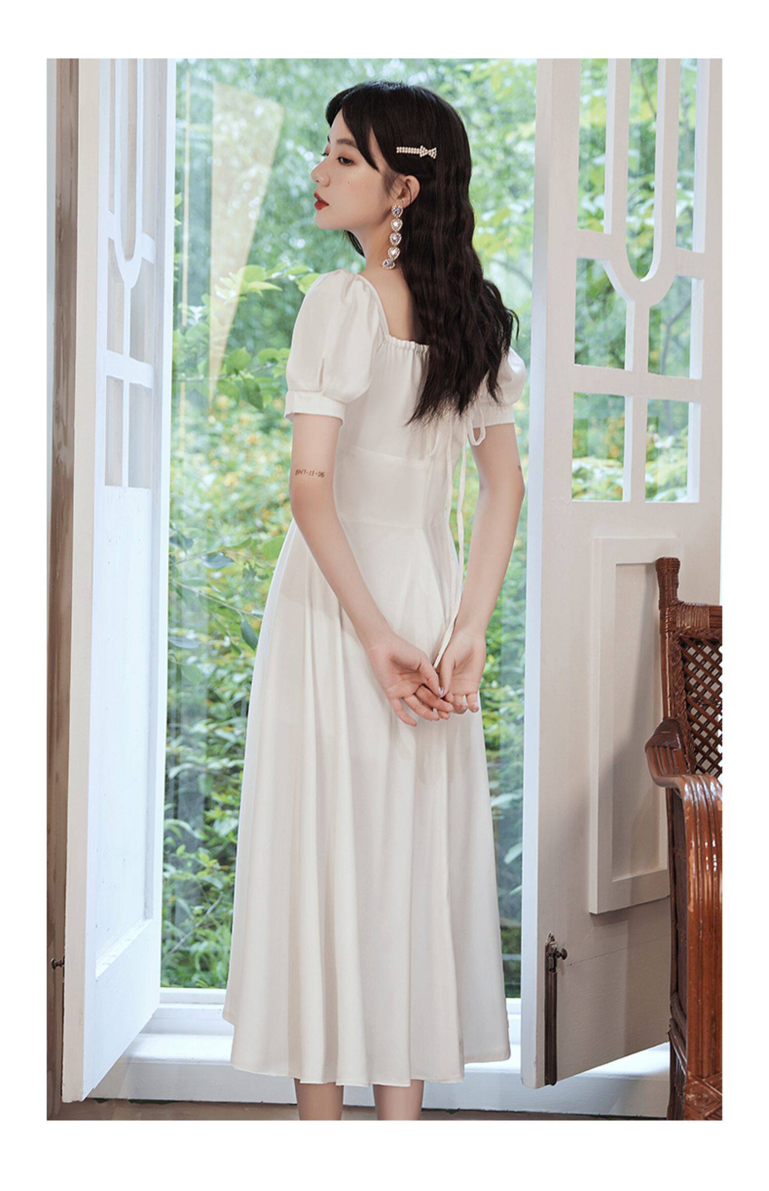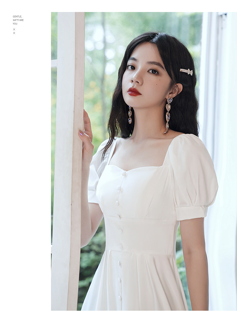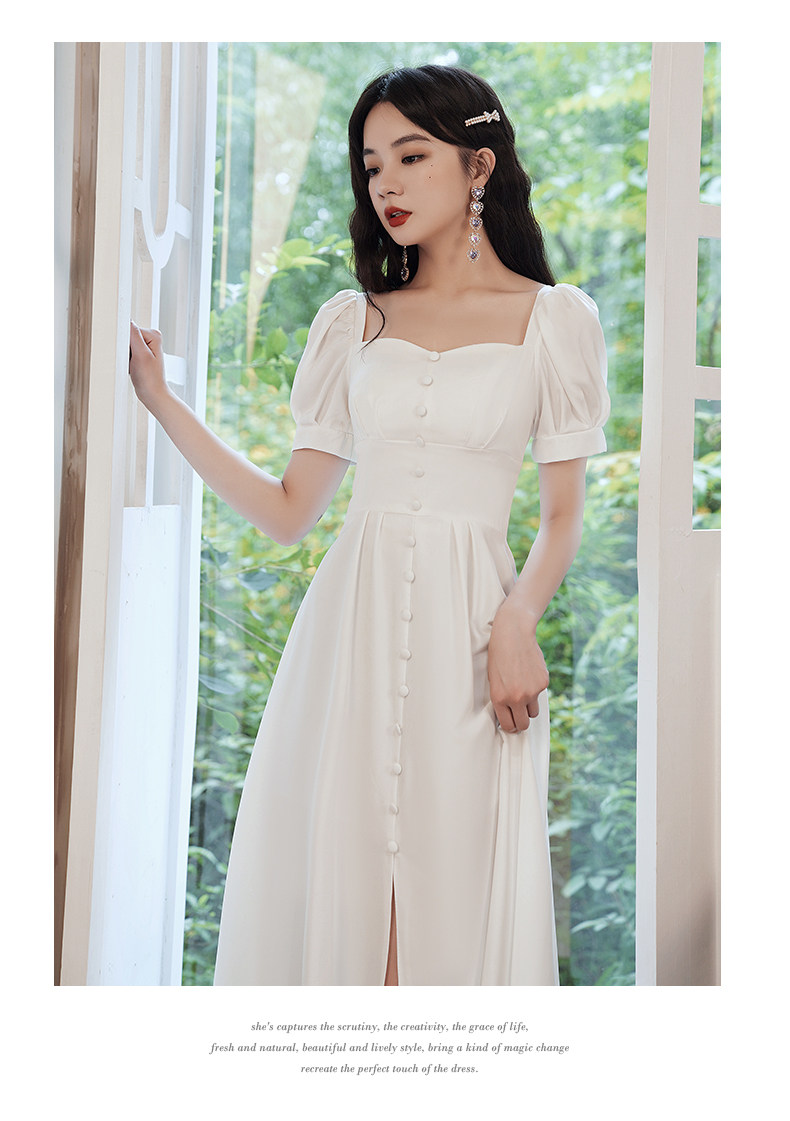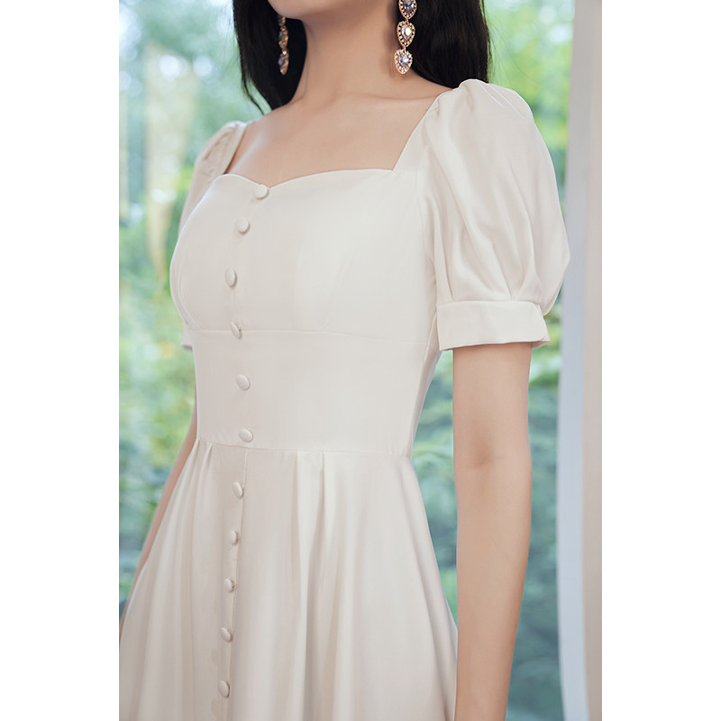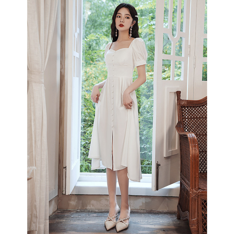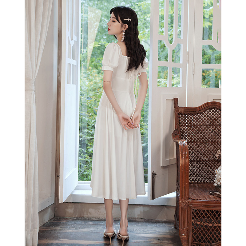 Милое белое вечернее платье, квадратный вырез, французский стиль