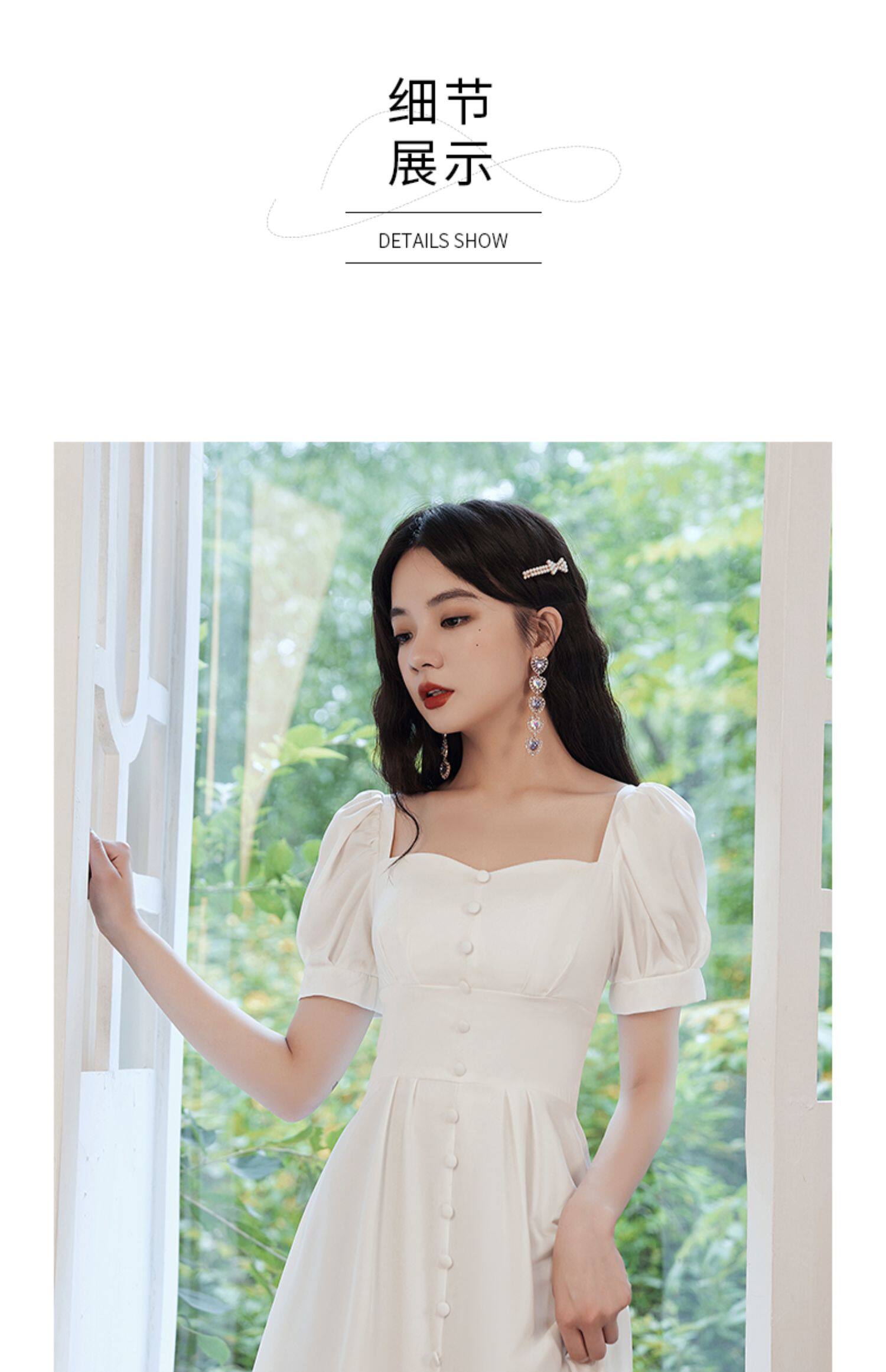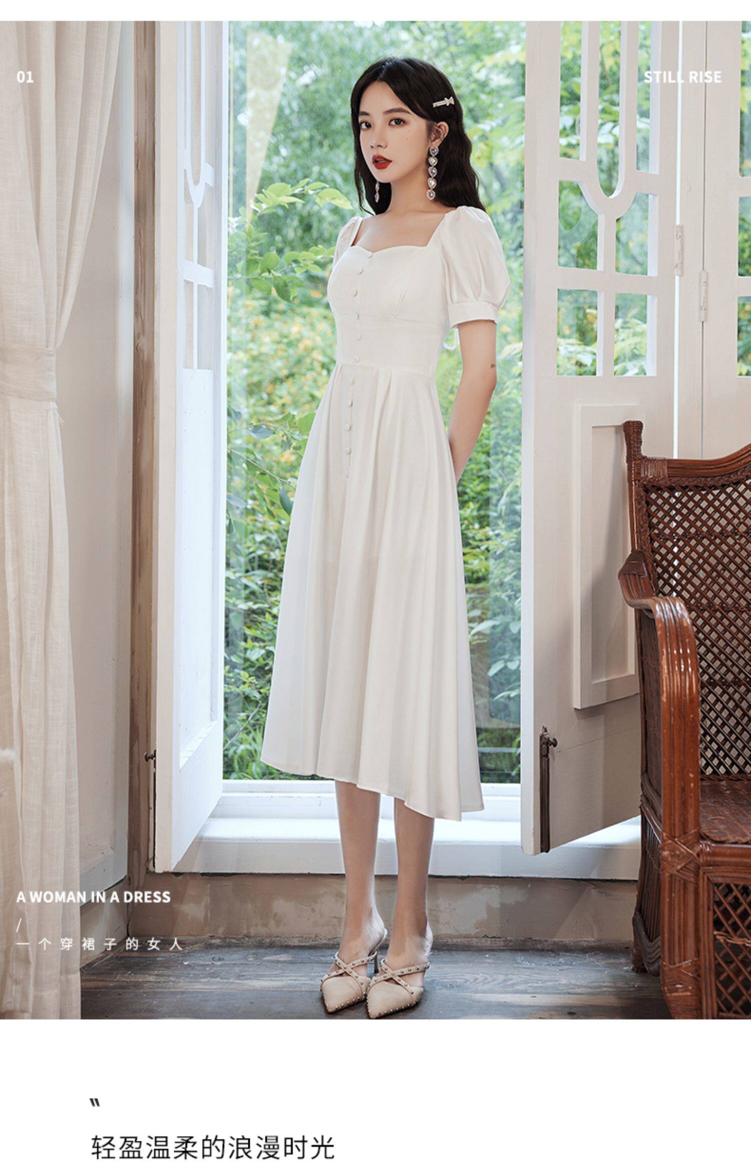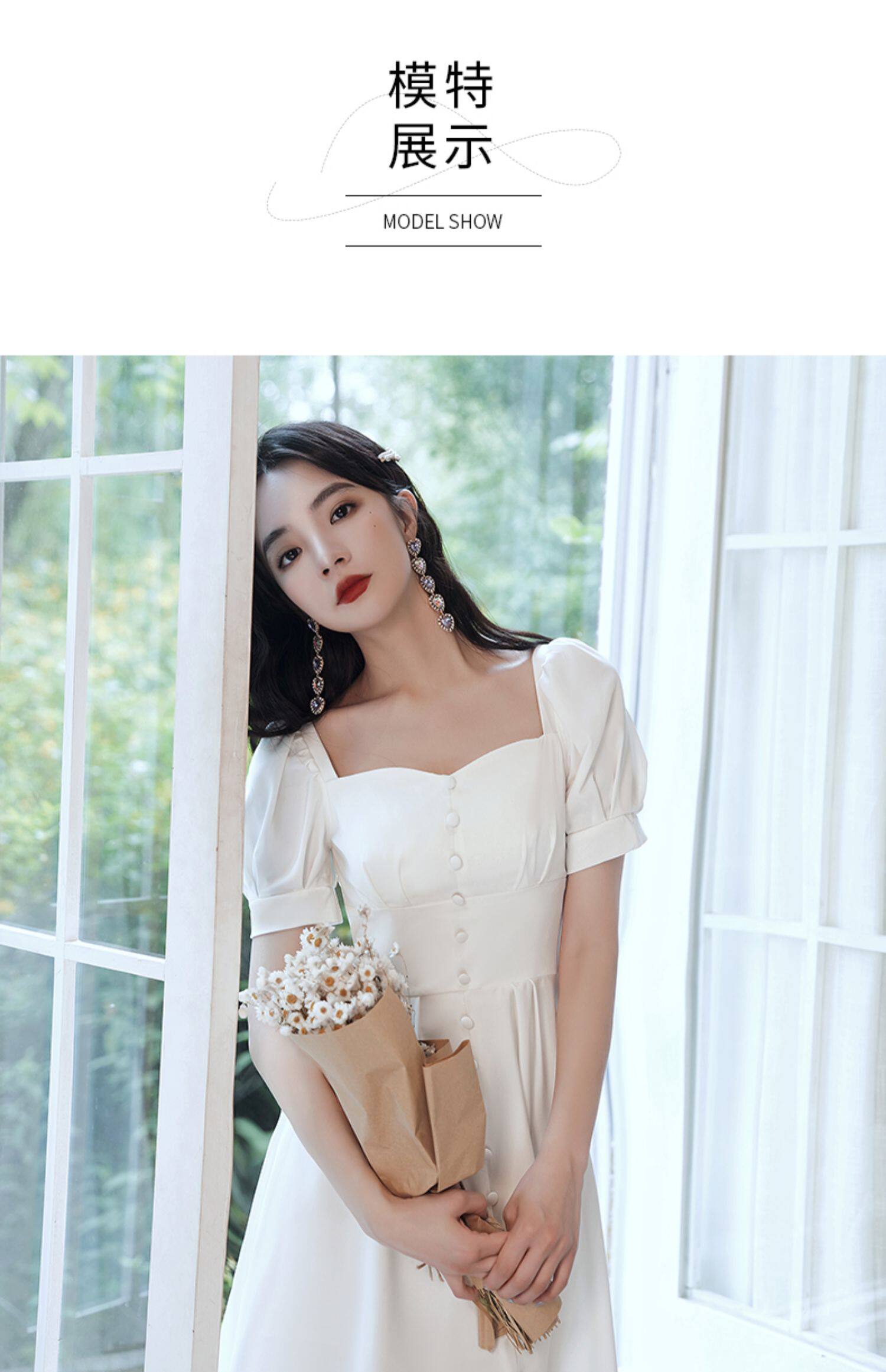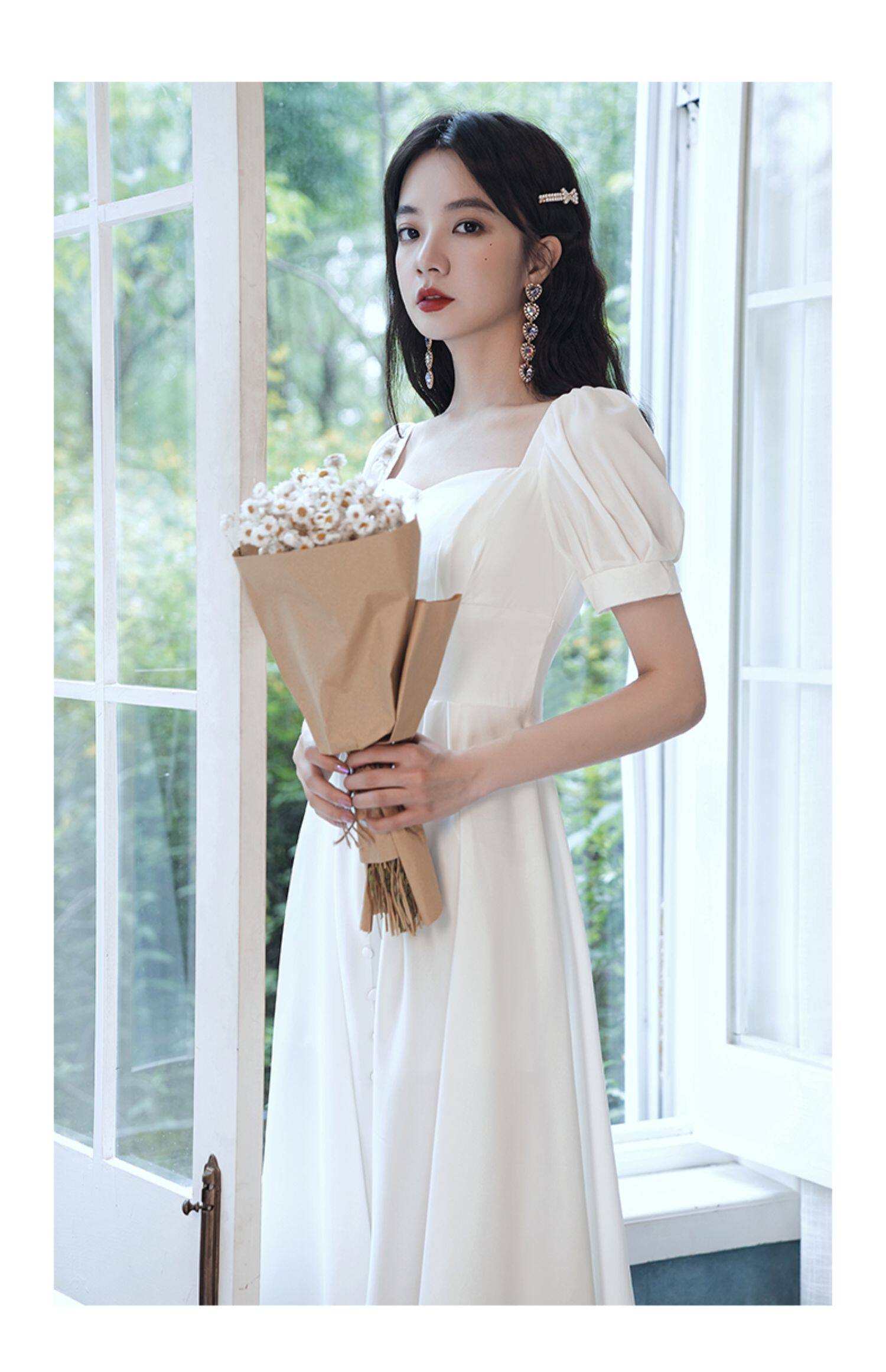 Милое белое вечернее платье, квадратный вырез, французский стиль