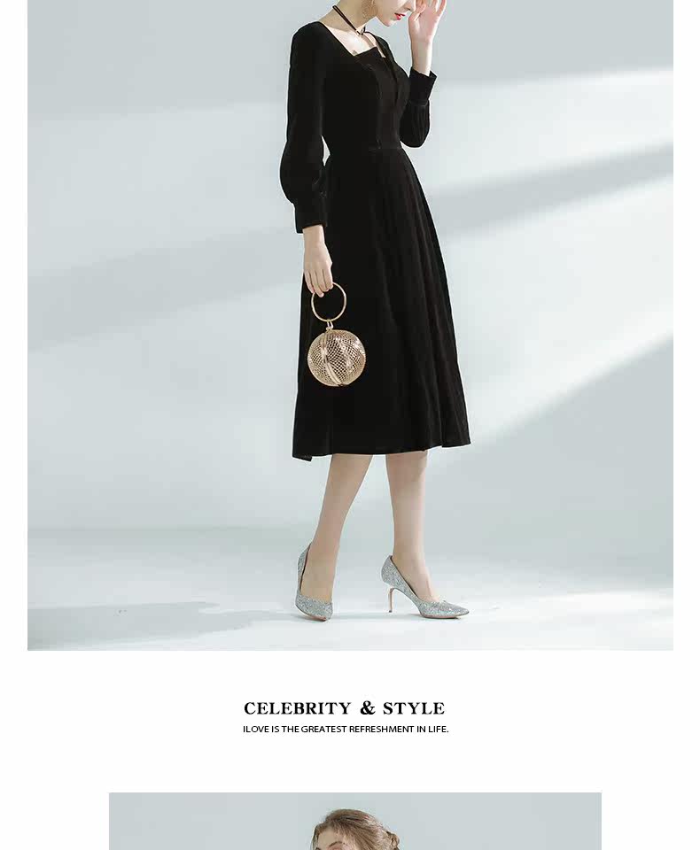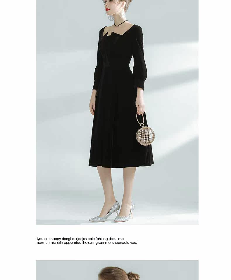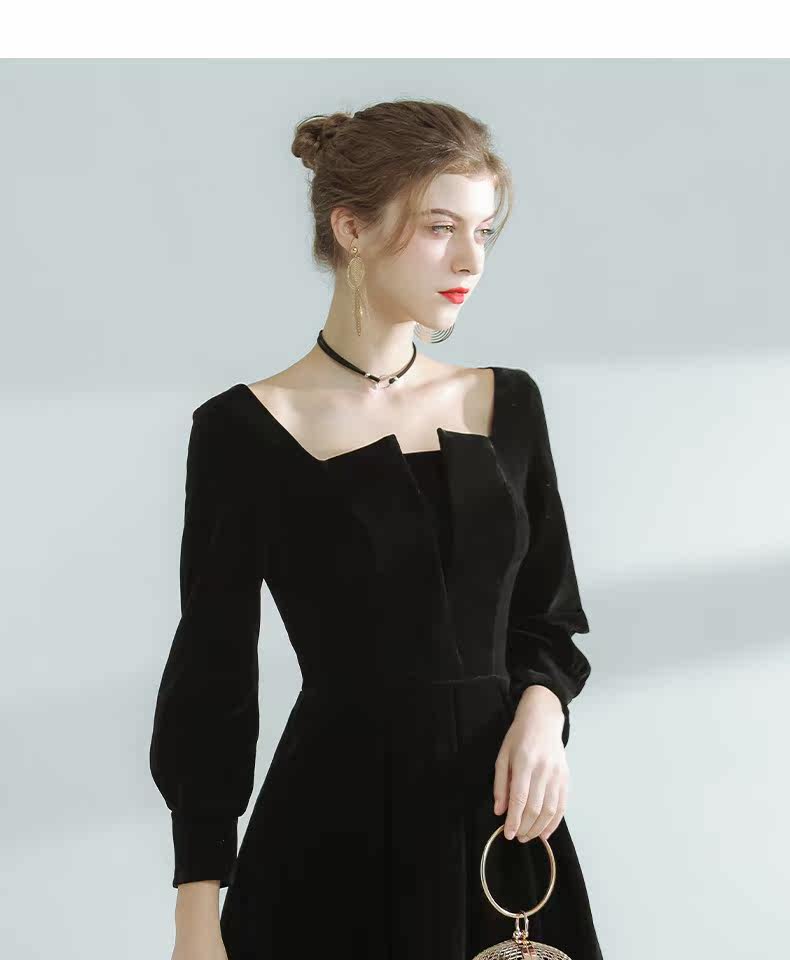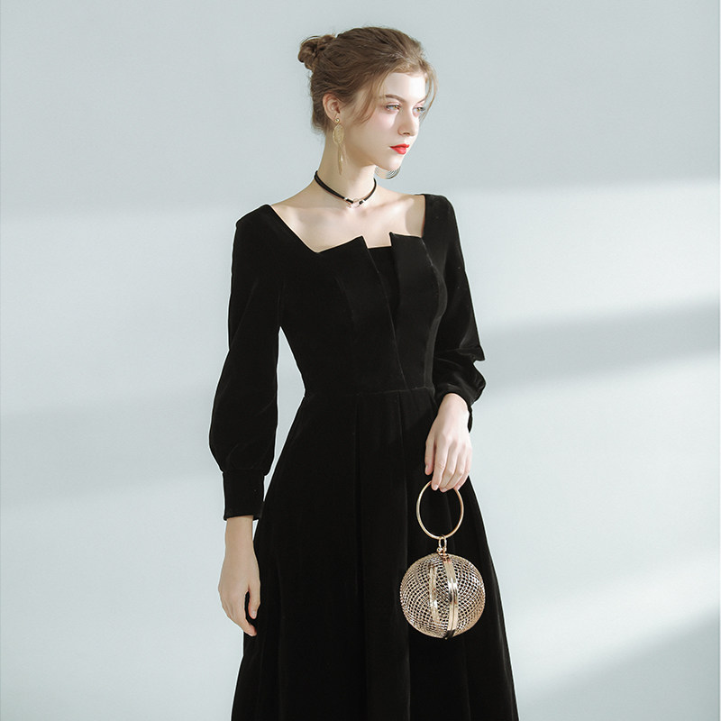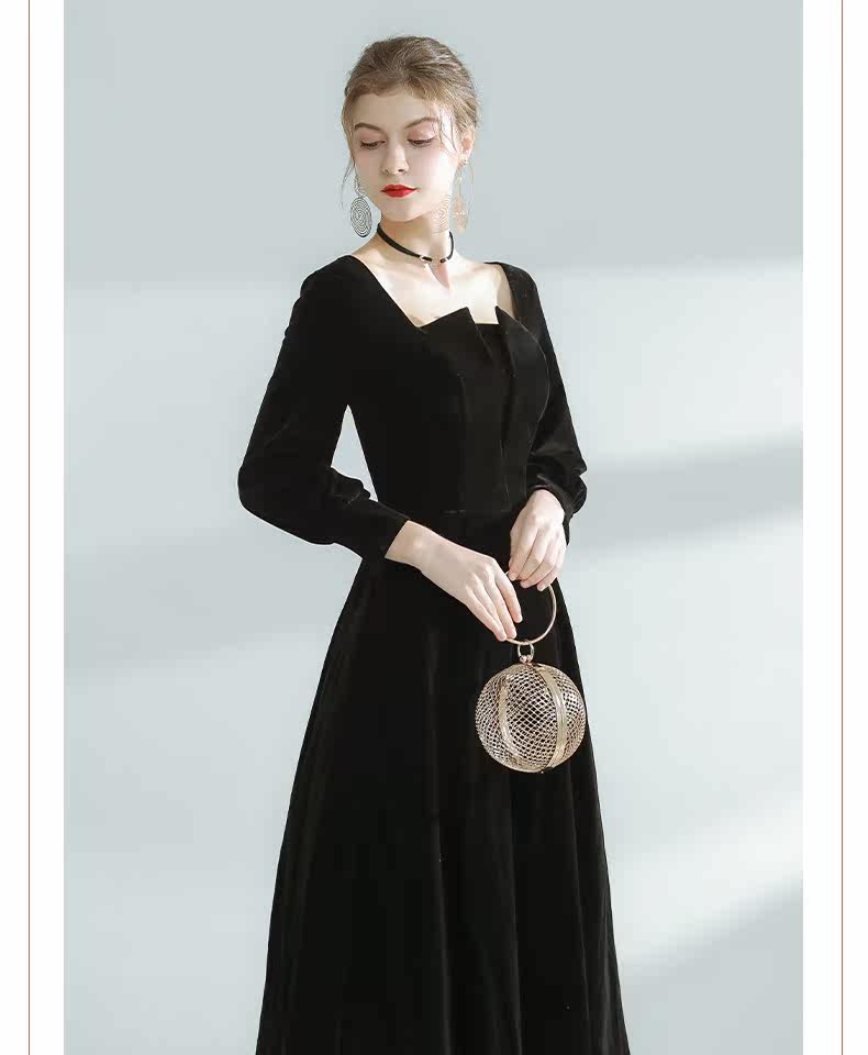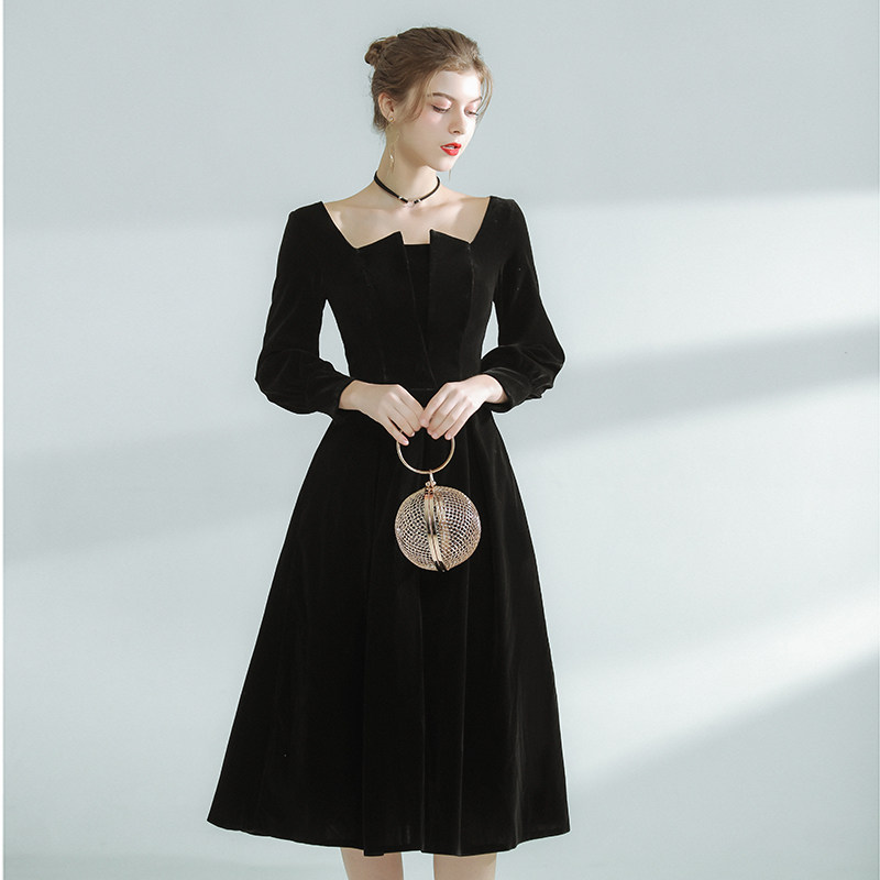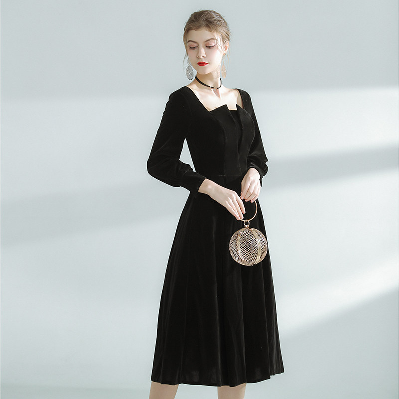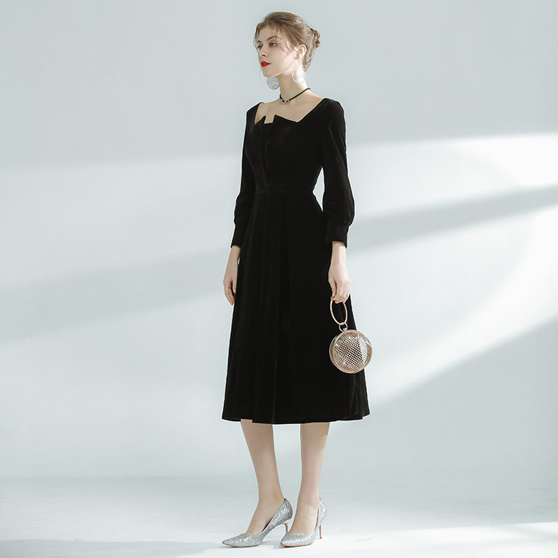 Бархатное модное вечернее платье, французский стиль, квадратный вырез