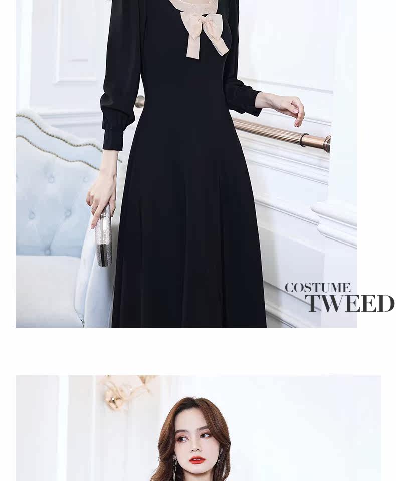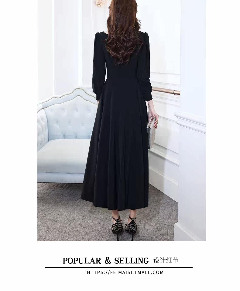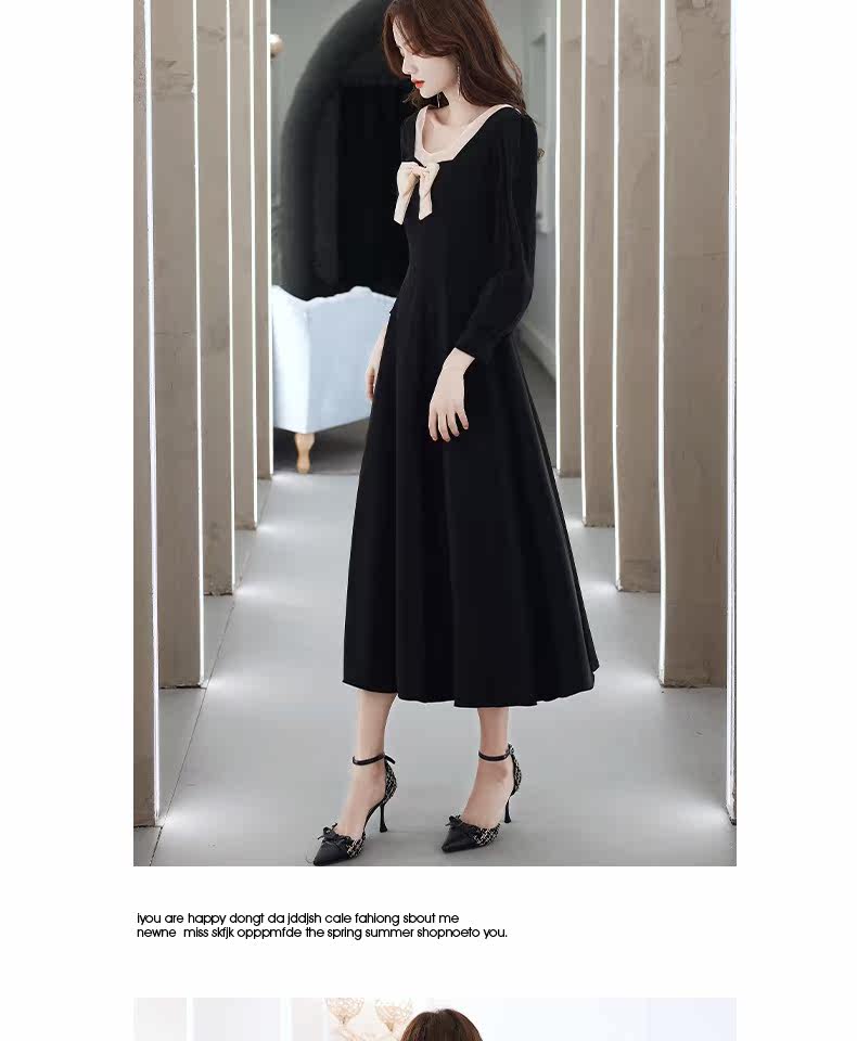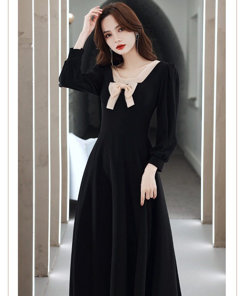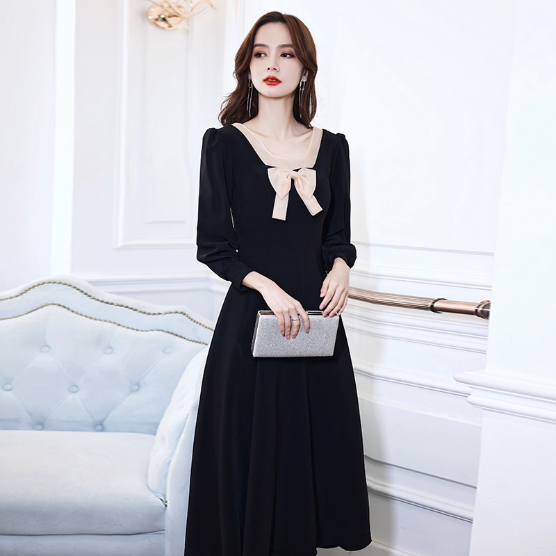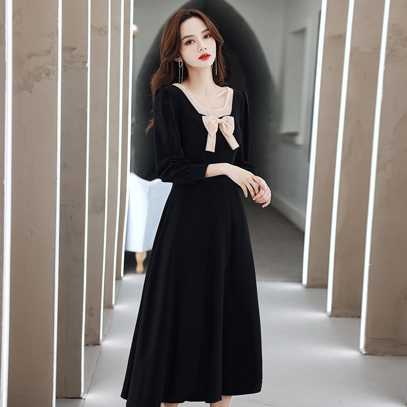 Черное вечернее платье, лонгслив, коллекция 2021, французский стиль, подходит для подростков