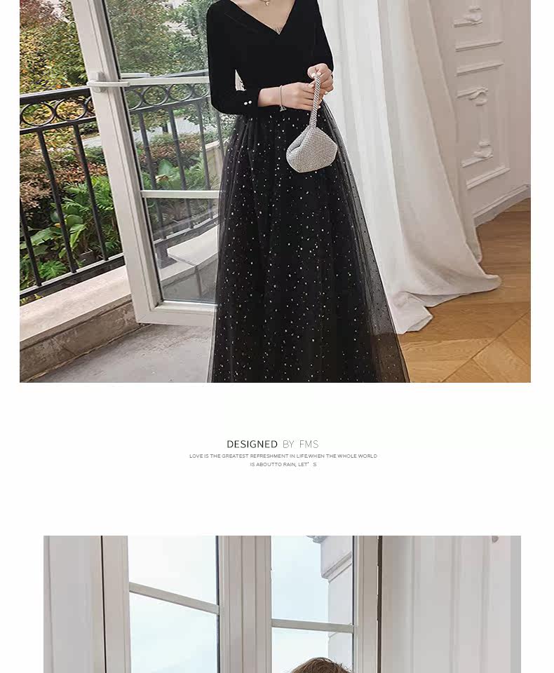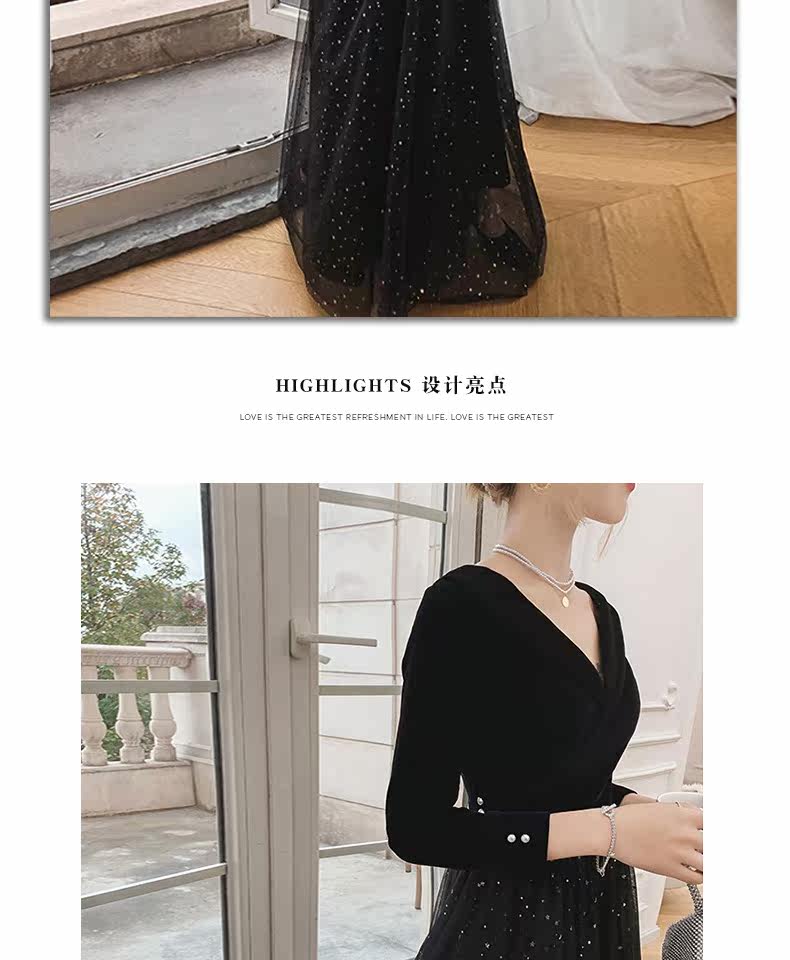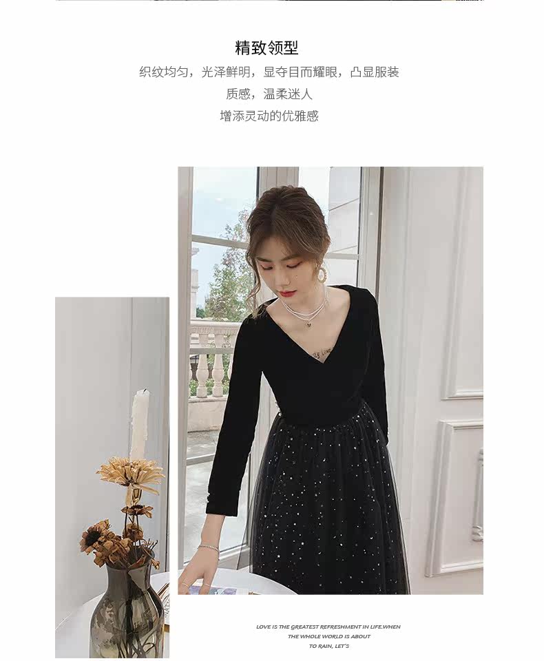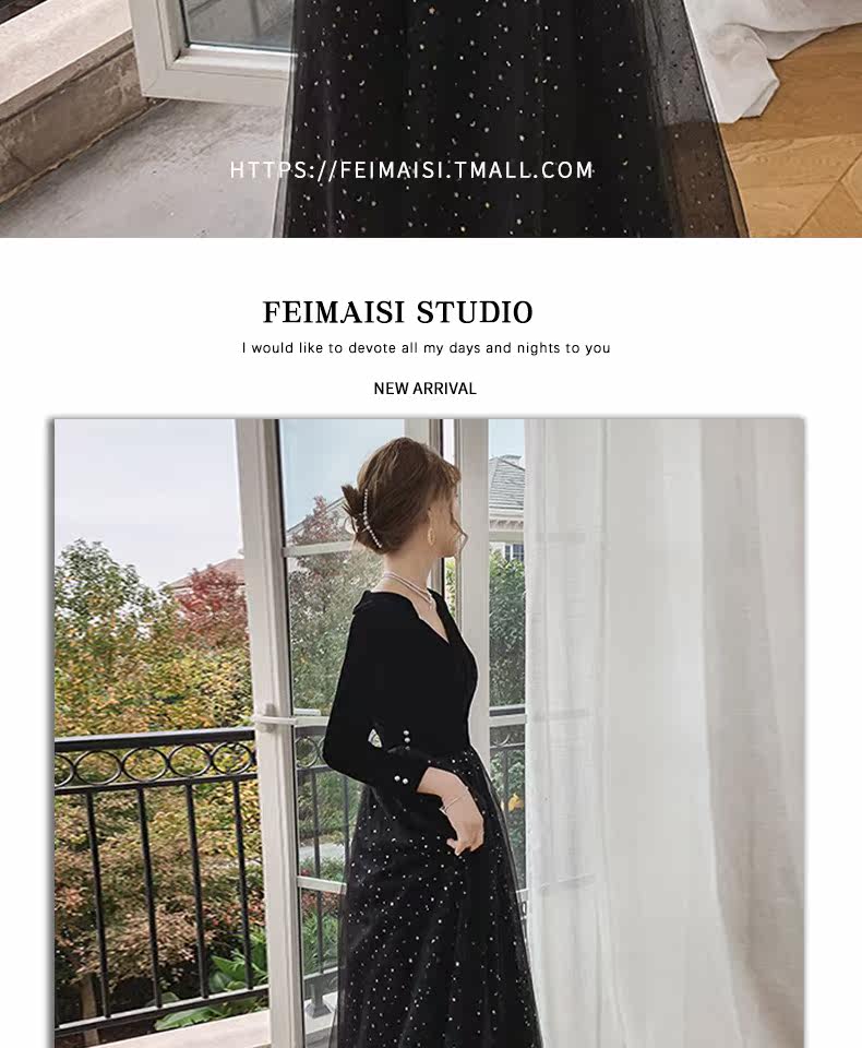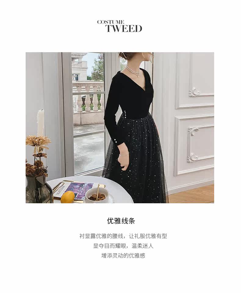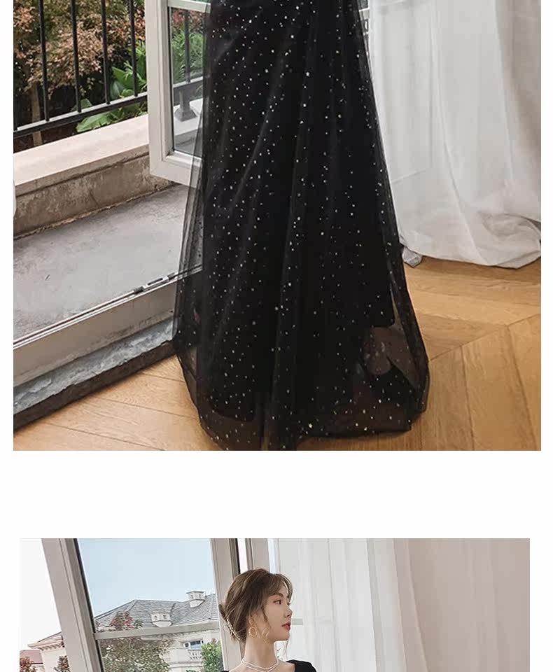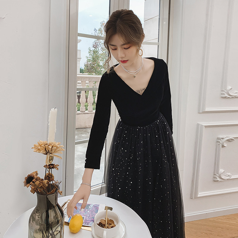 Вечернее платье, бархатный черный элитный элегантный лонгслив, длинное звездное небо, коллекция 2021