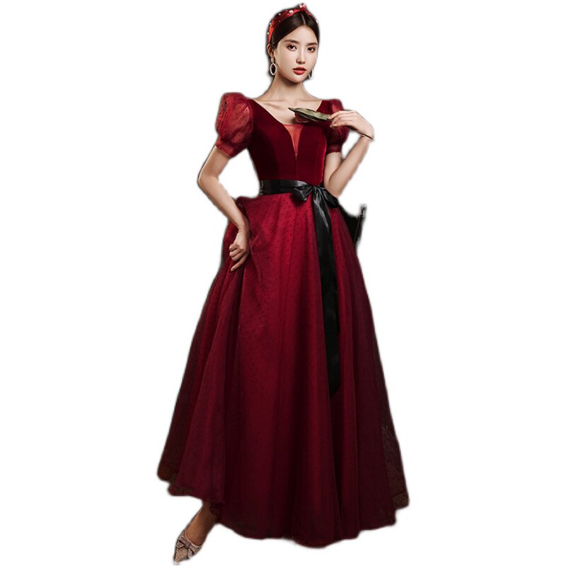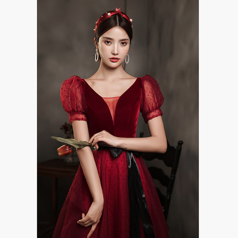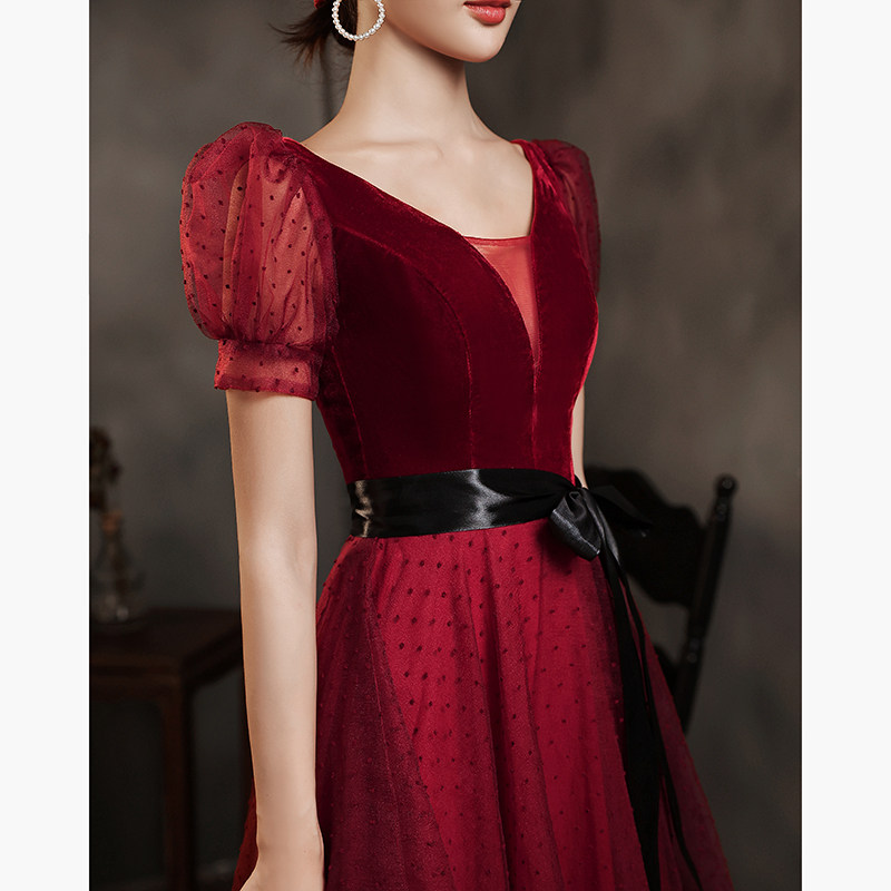 Демисезонное красное вечернее платье, рукава фонарики, юбка-пачка