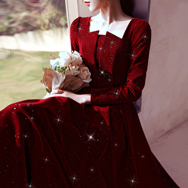 Бордовое красное вечернее платье, 2022
