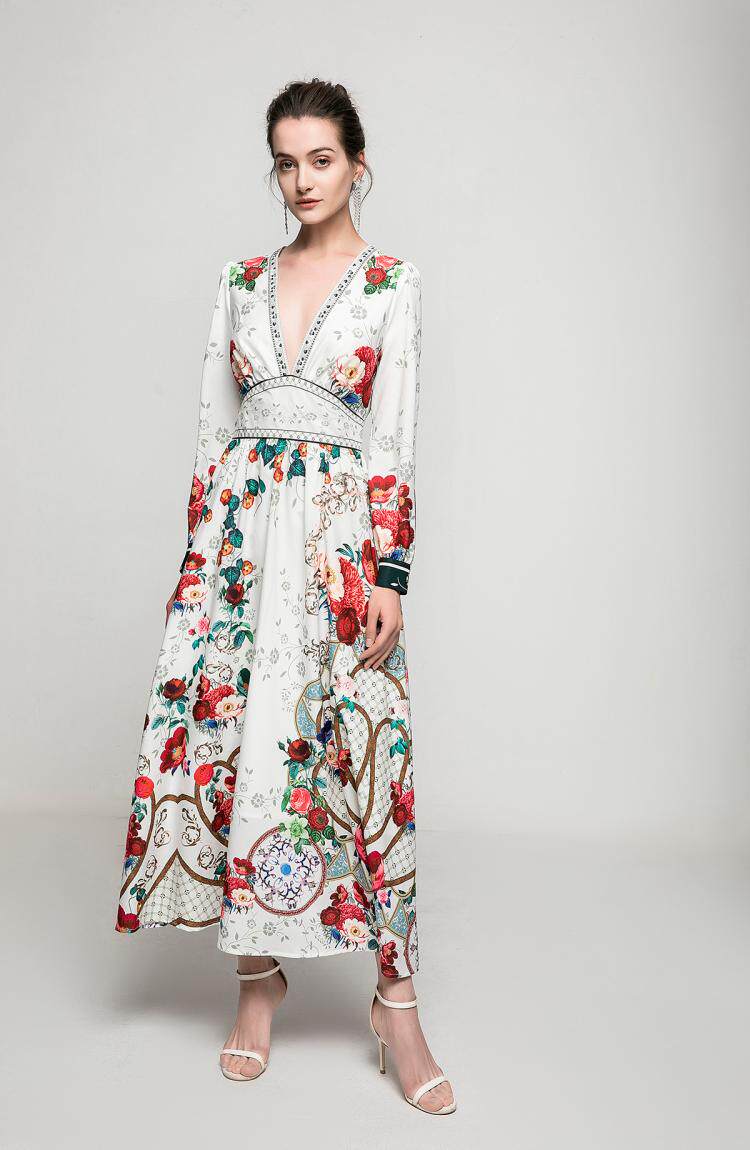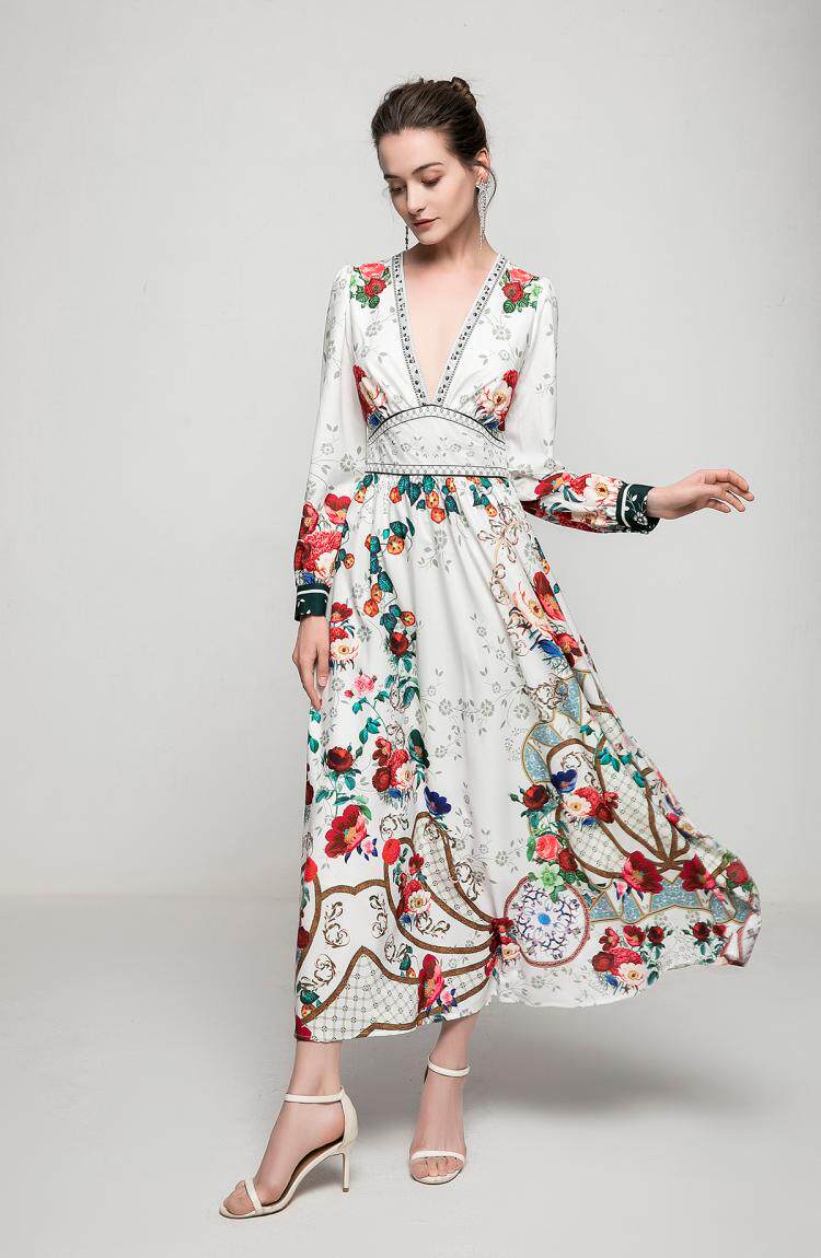 Летняя ретро летняя одежда, элитное модное длинное платье, V-образный вырез