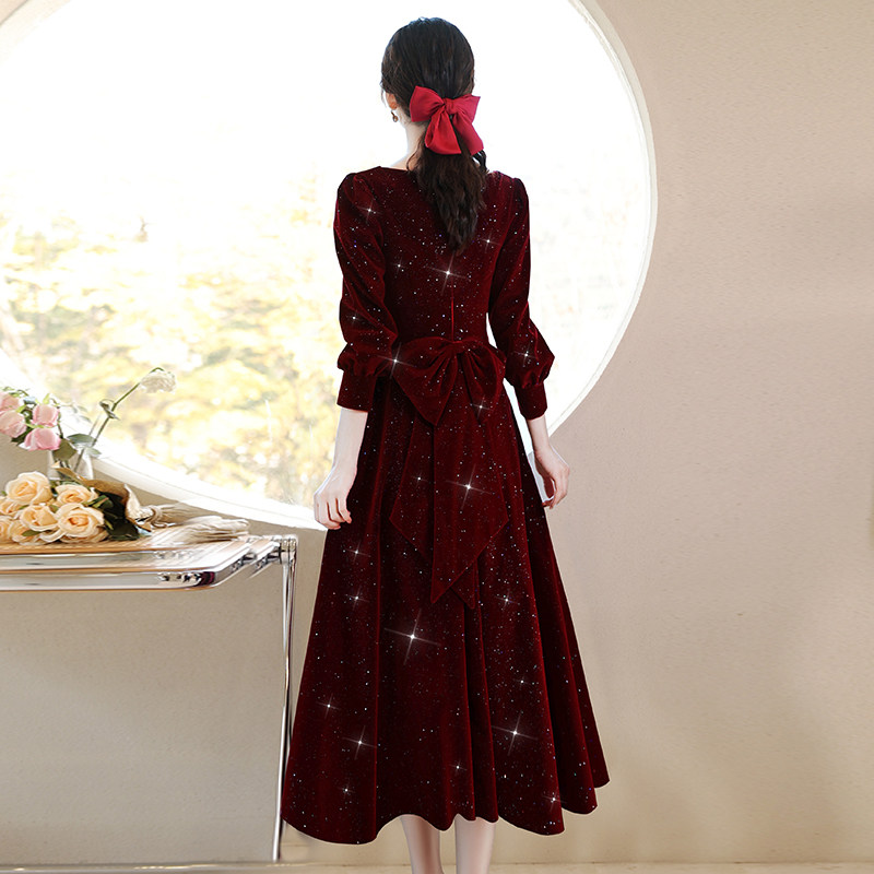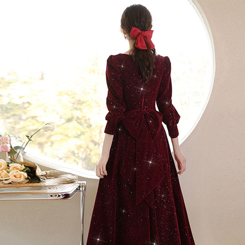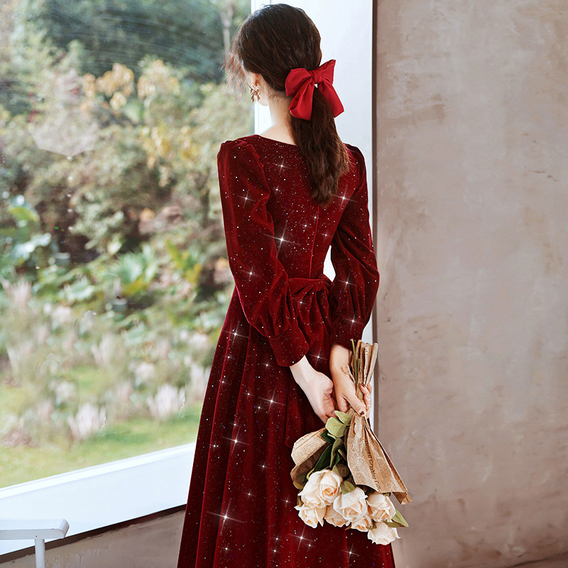 Бордовое красное бархатное вечернее платье, подходит для подростков