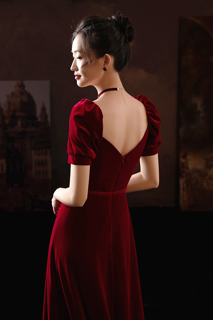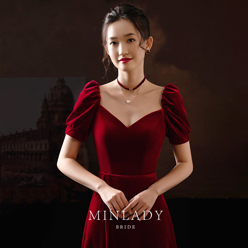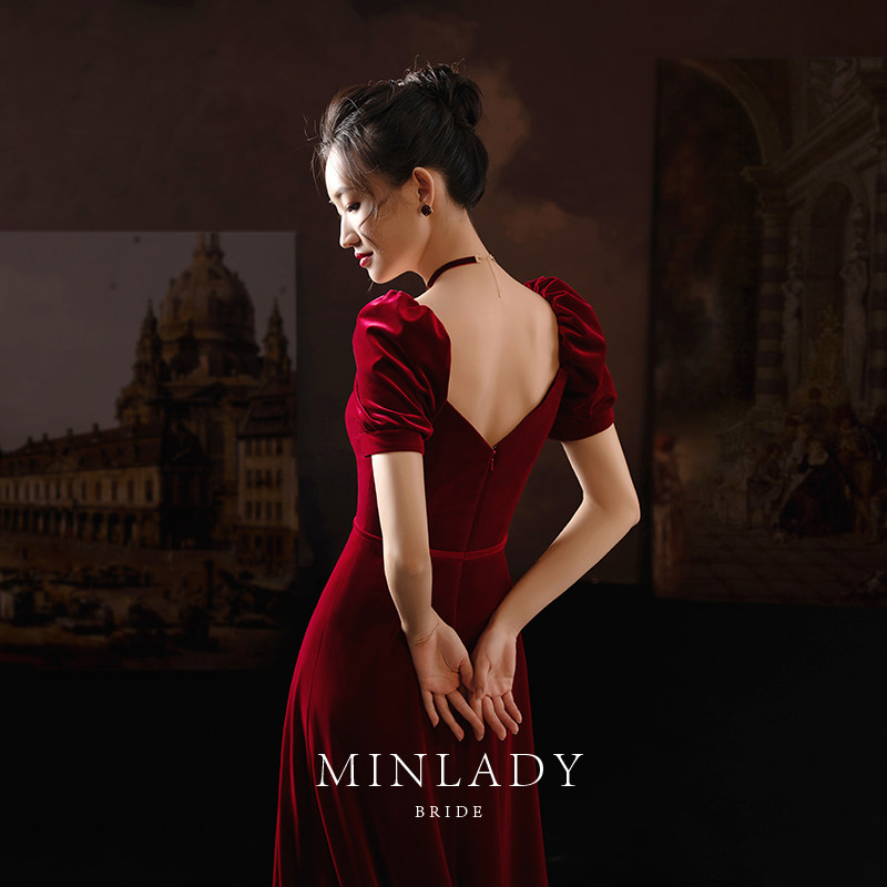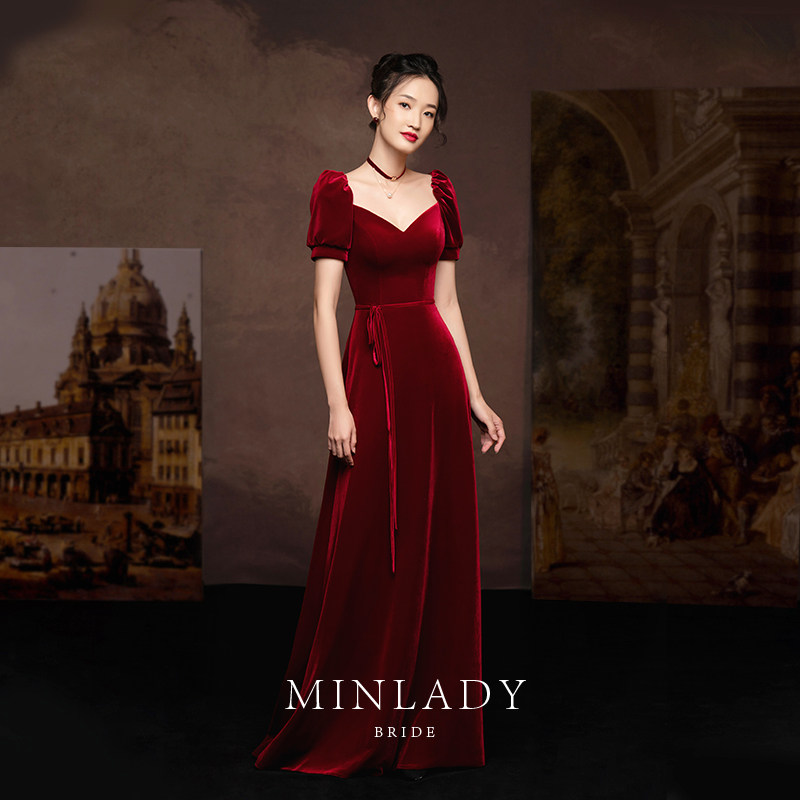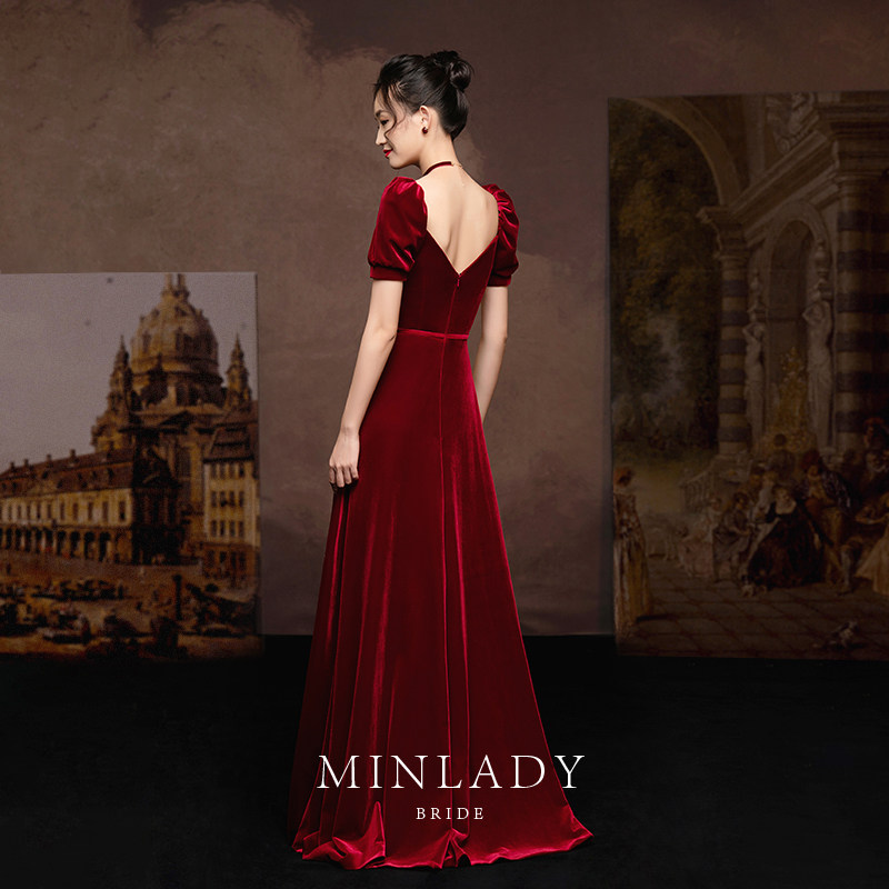 名斓 Ретро зимнее красное вечернее платье, коллекция 2021, премиум класс
