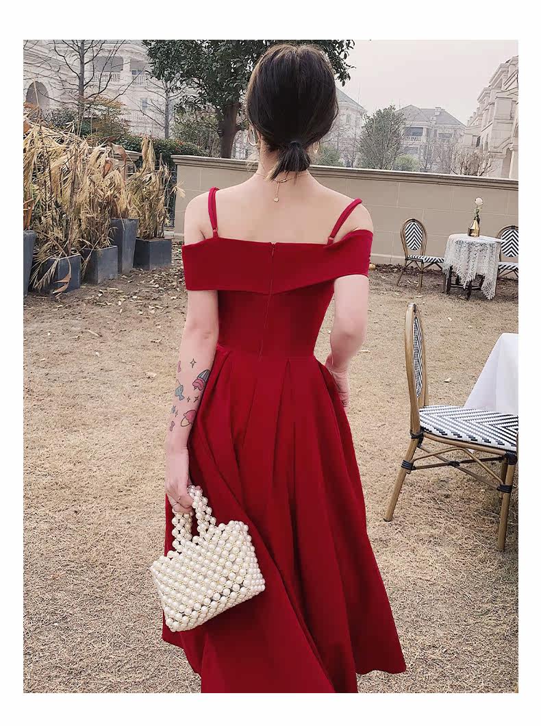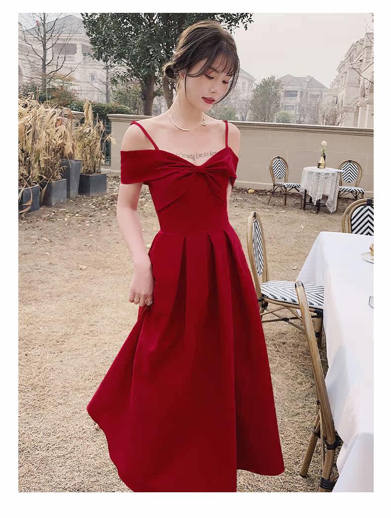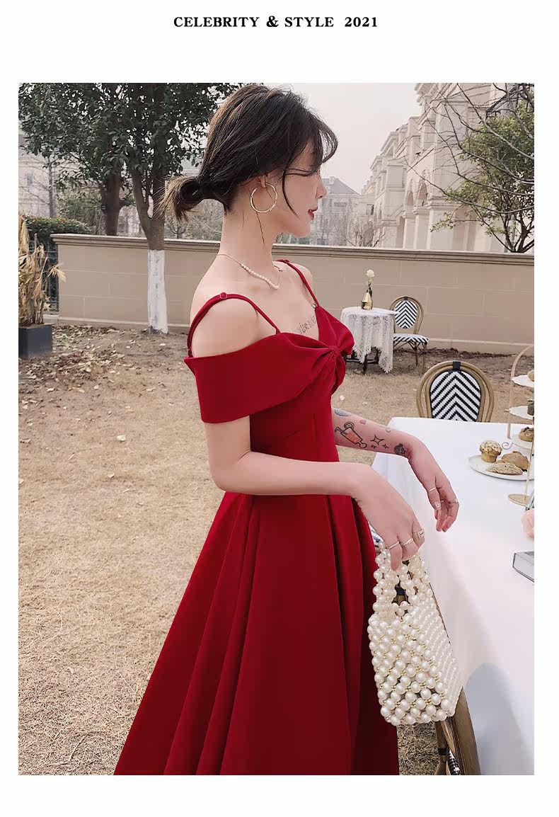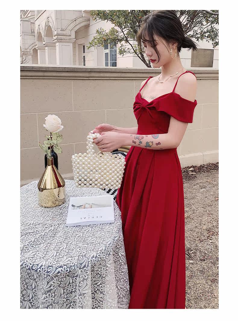 Бордовое вечернее платье, летняя юбка, коллекция 2022, открытые плечи