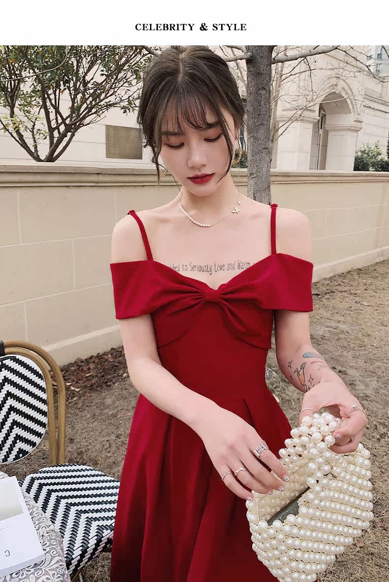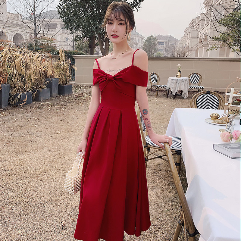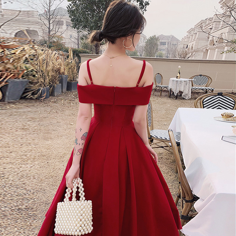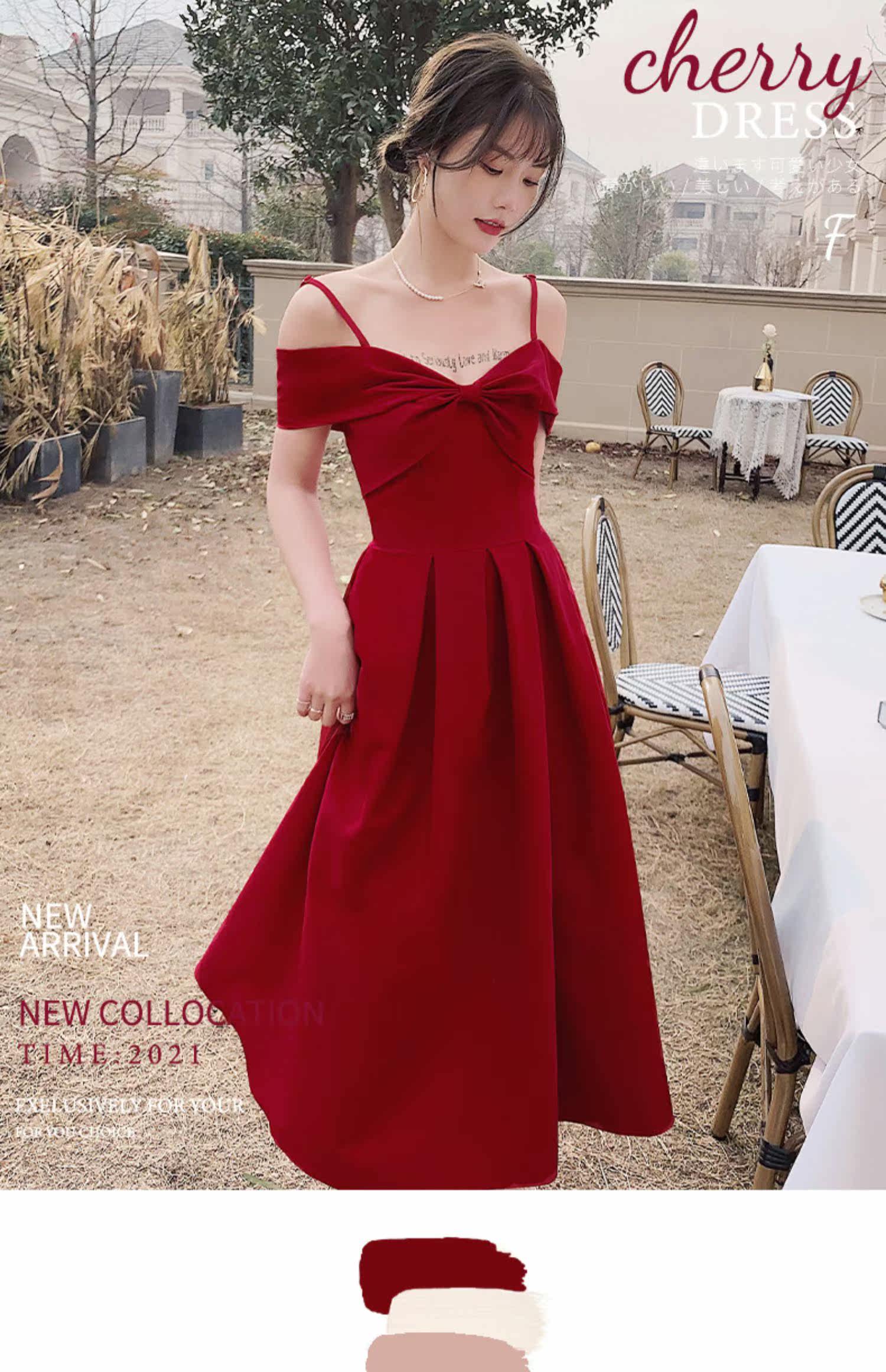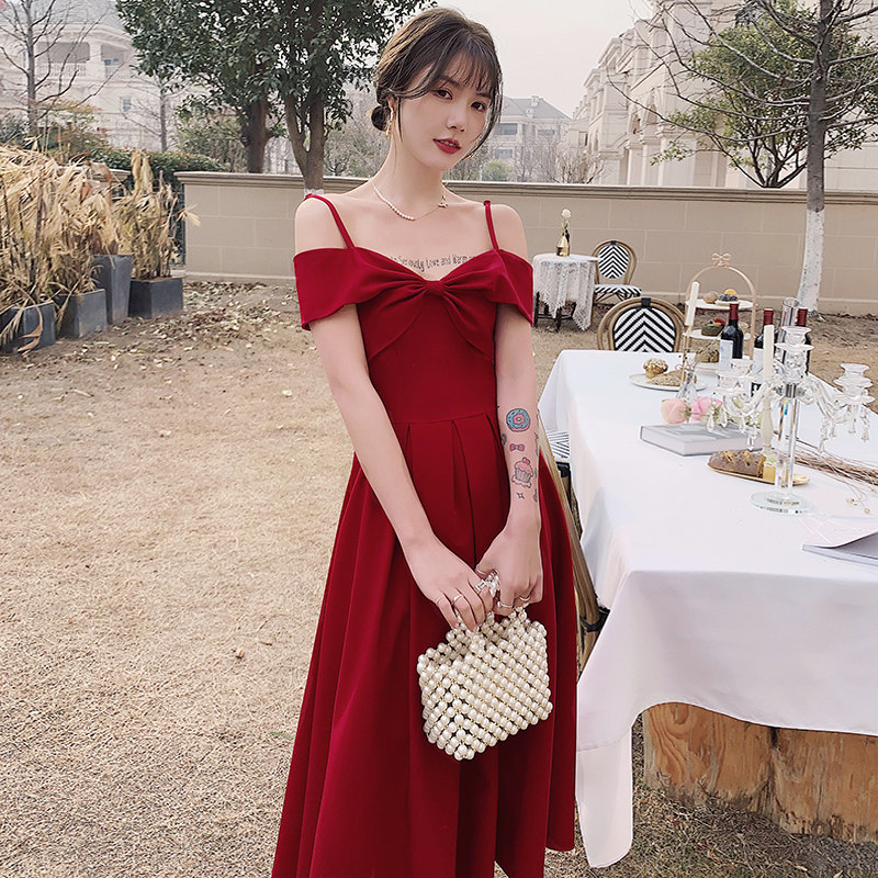 Бордовое вечернее платье, летняя юбка, коллекция 2022, открытые плечи