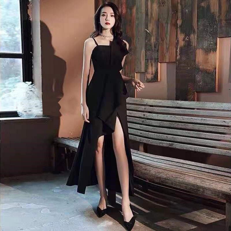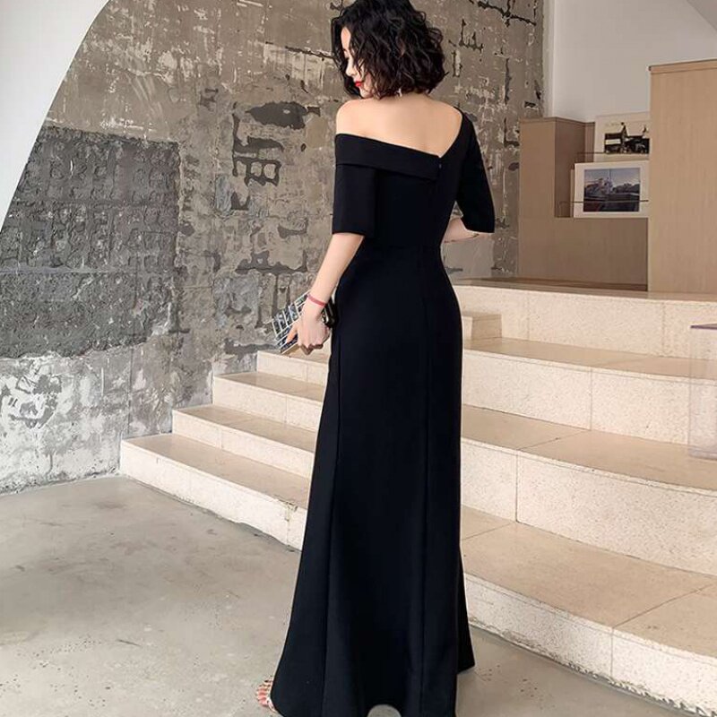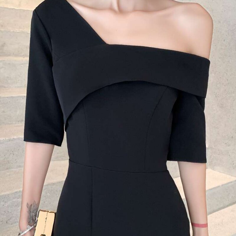 Черная сумка на одно плечо, вечернее платье, длинная юбка, крой «рыбий хвост», яркий броский стиль