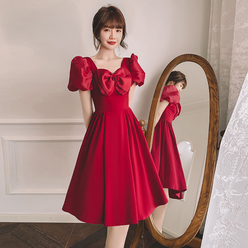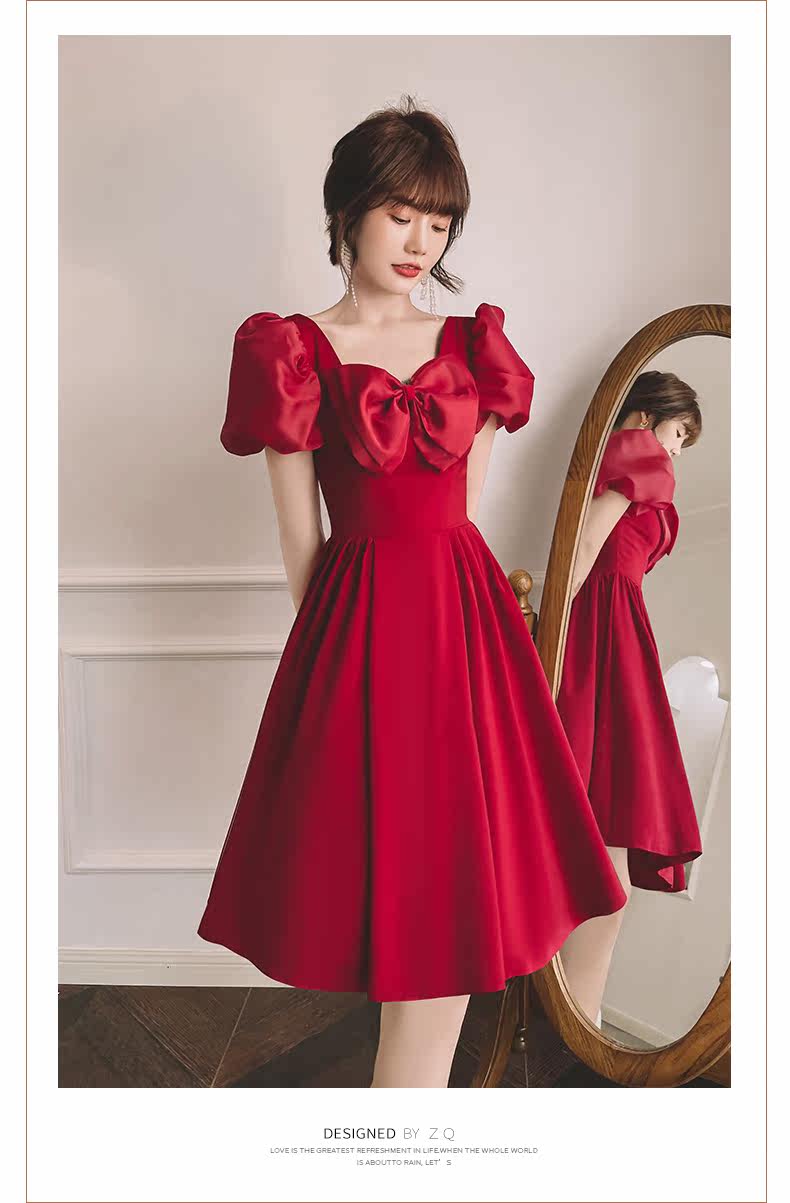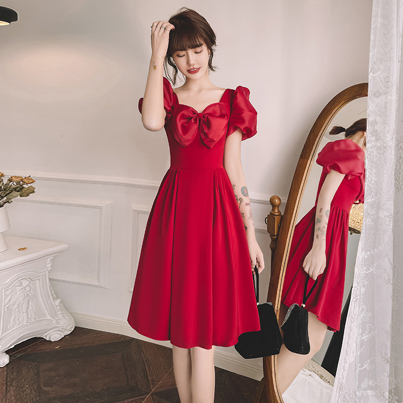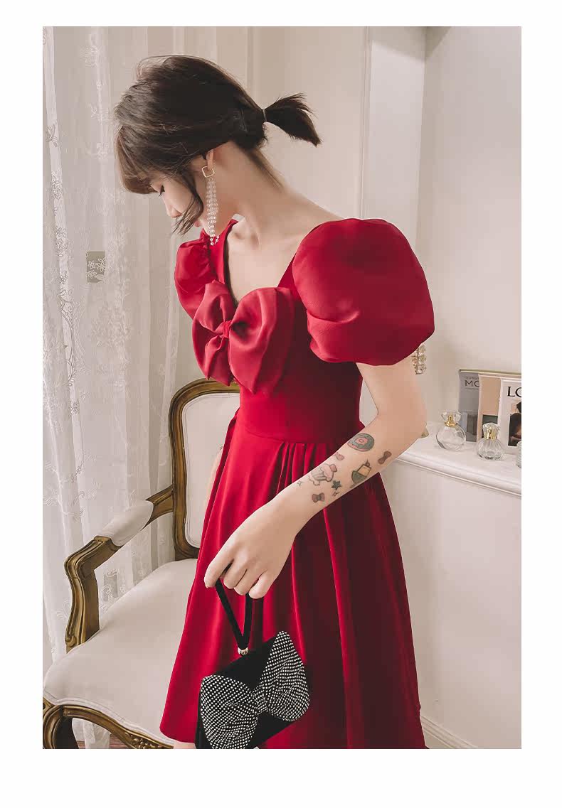 Летнее вечернее платье, бордовая короткая мини-юбка, коллекция 2021